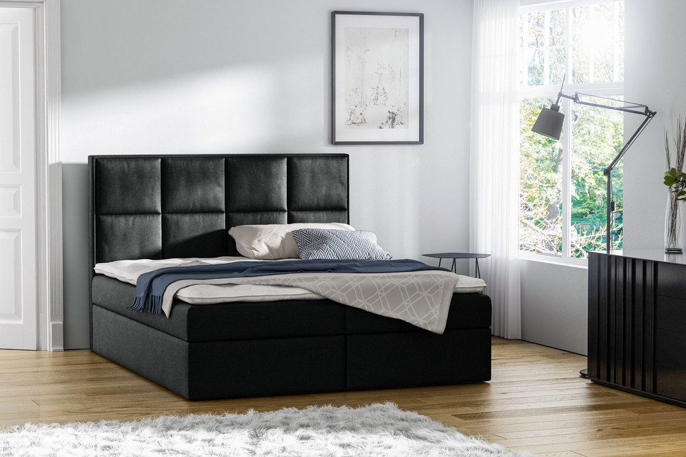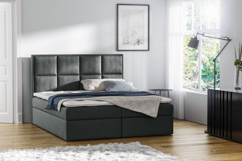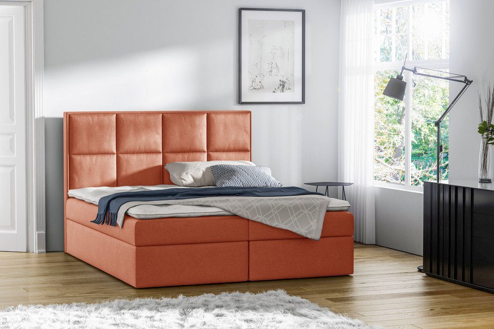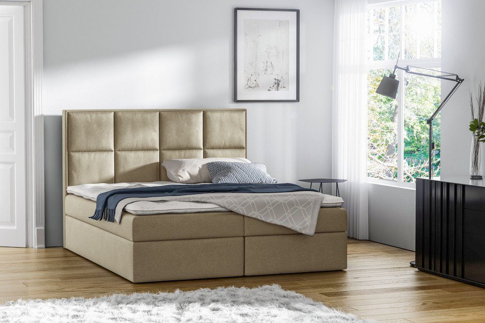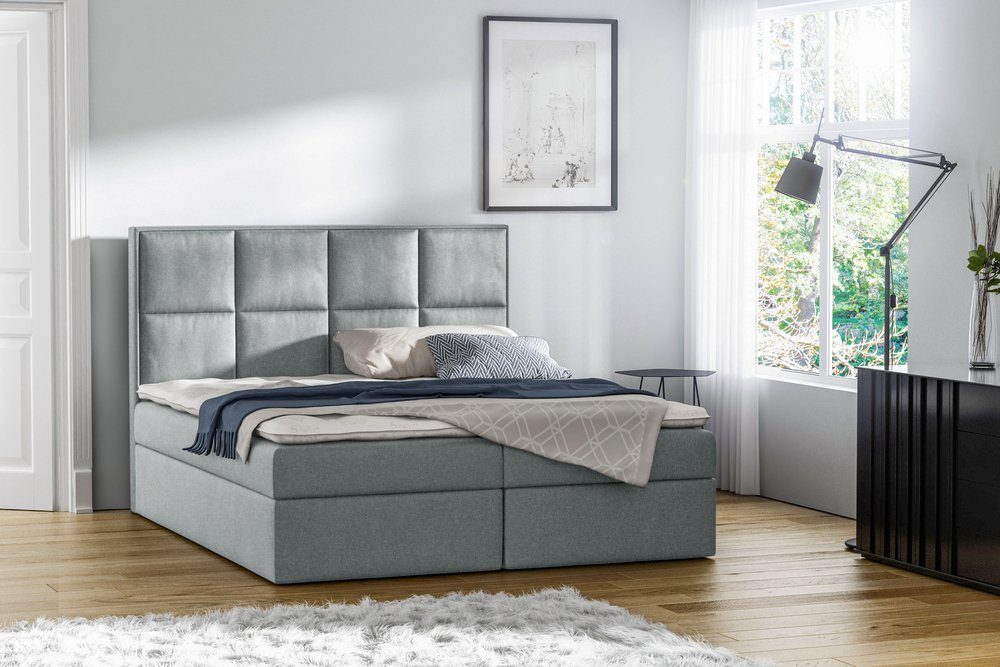 (Schlafzimmerbett, Bett), mit Taschenfederkern Matratze, Topper, Bettkasten, Kopfteil gepolstert