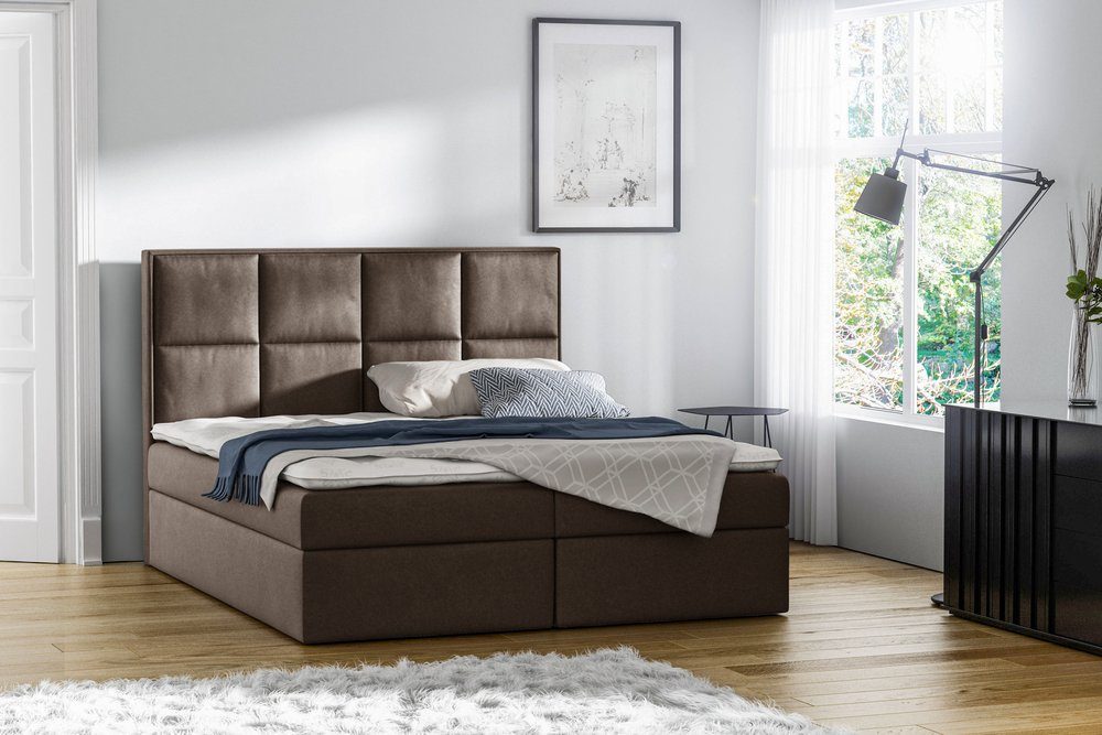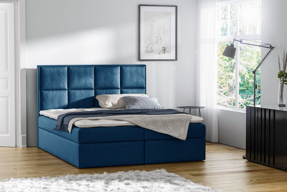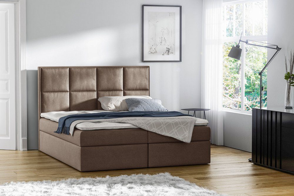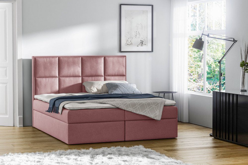 99rooms Boxspringbett Amelio (Schlafzimmerbett, Bett), mit Taschenfederkern Matratze, Topper, Bettkasten, Kopfteil gepolstert