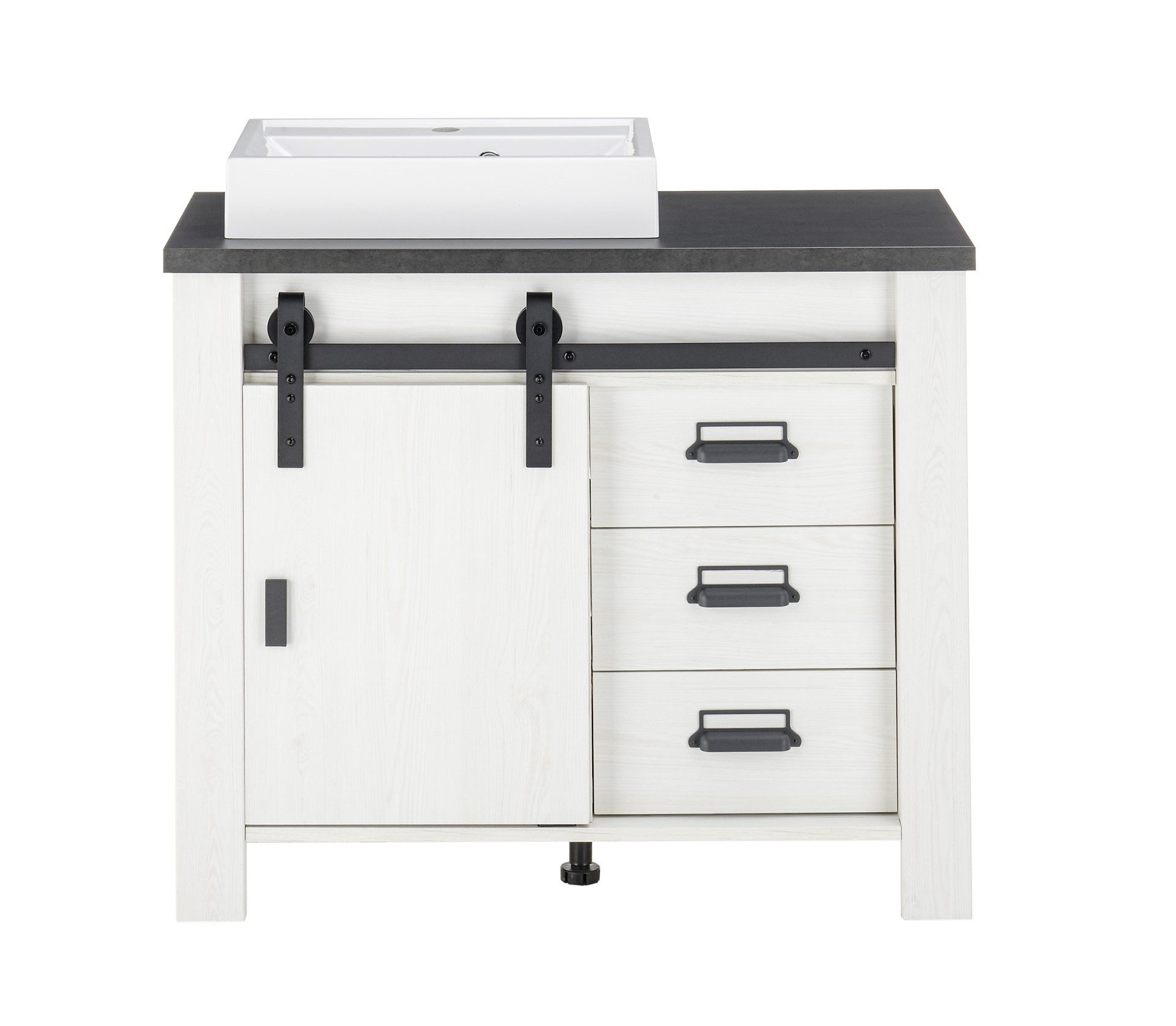 (Waschbeckenunterschrank) mit 3 Schubladen, 2 Fächer, 1 Drehtür, Waschbecken inklusiv