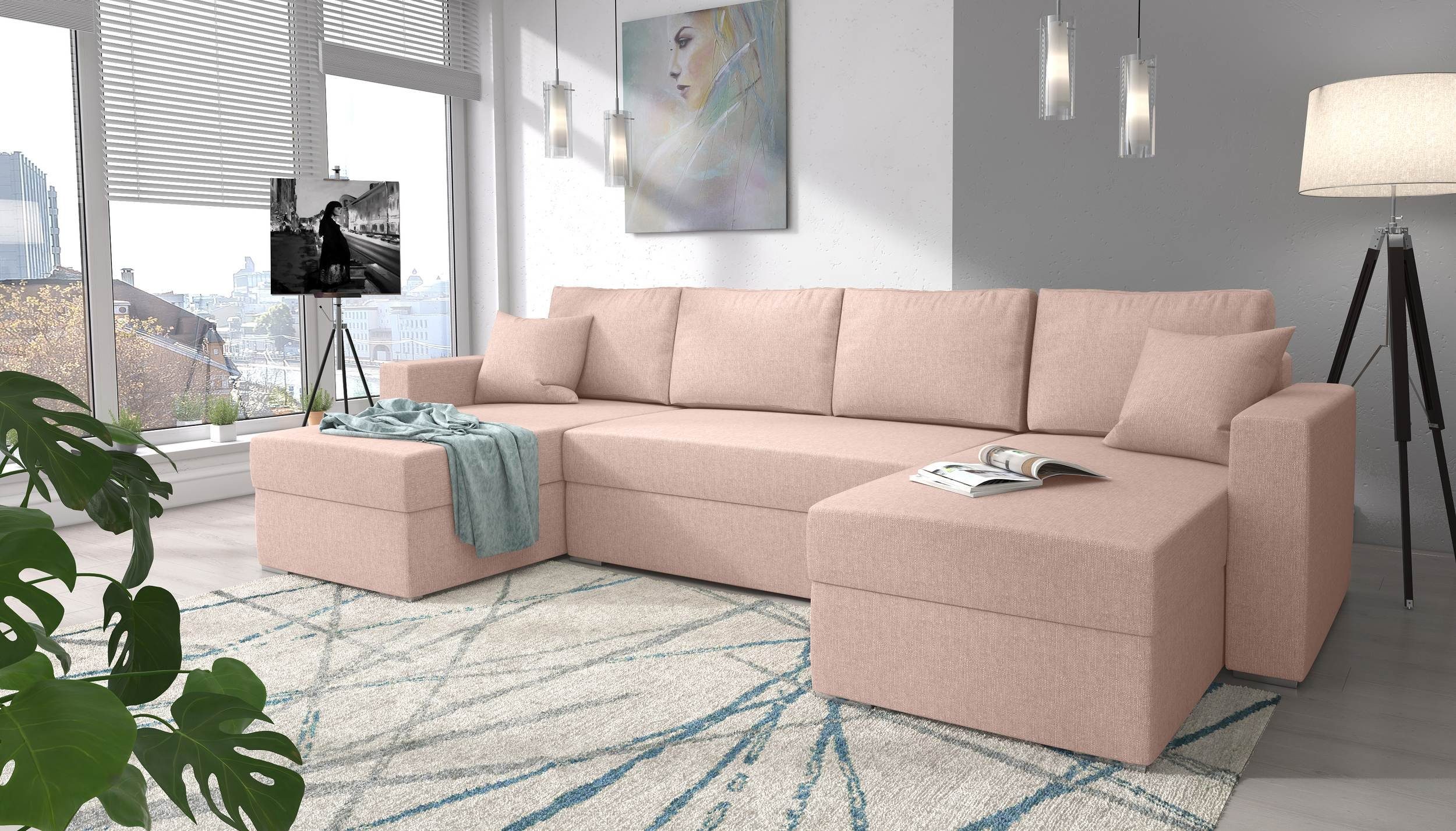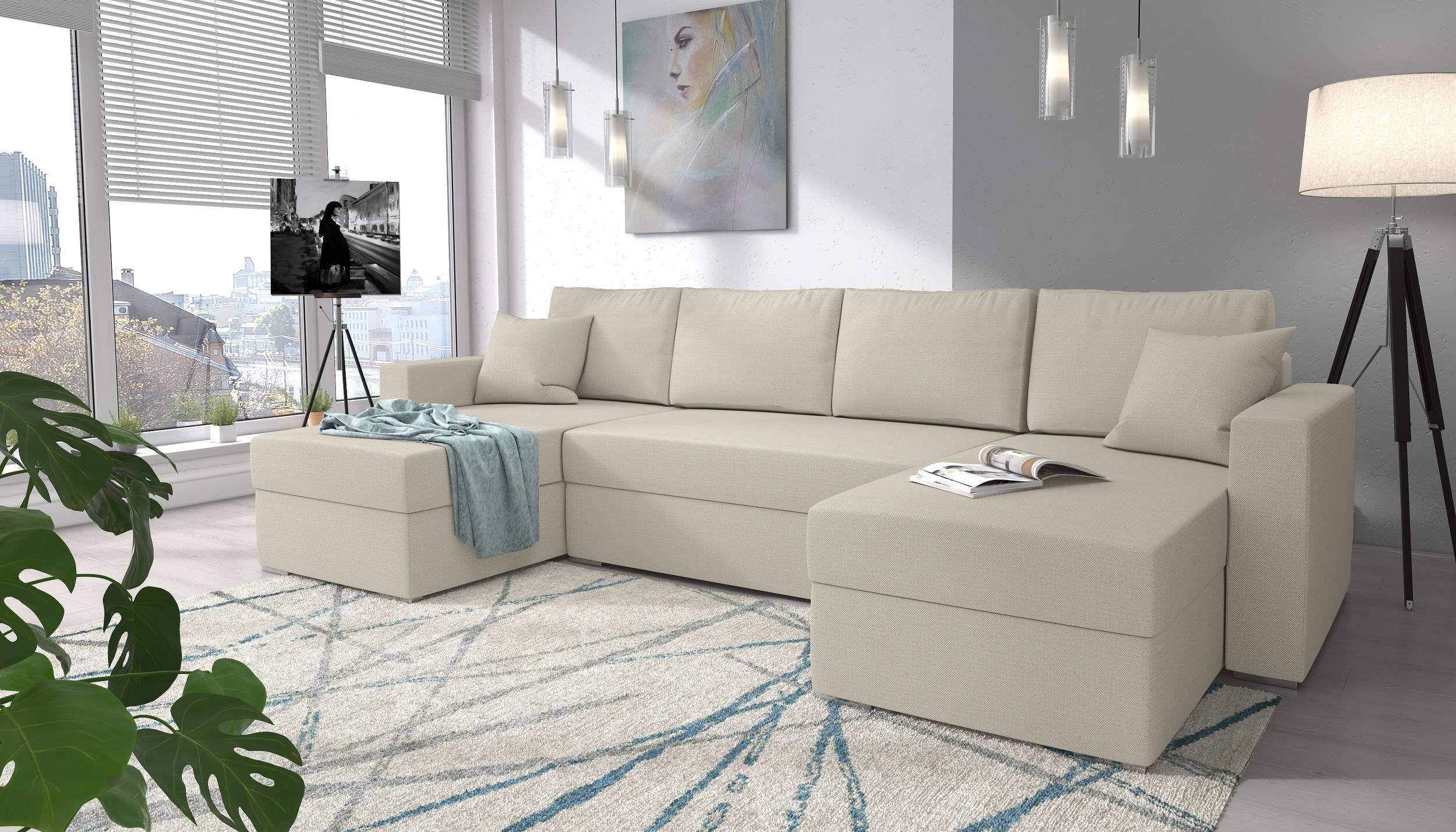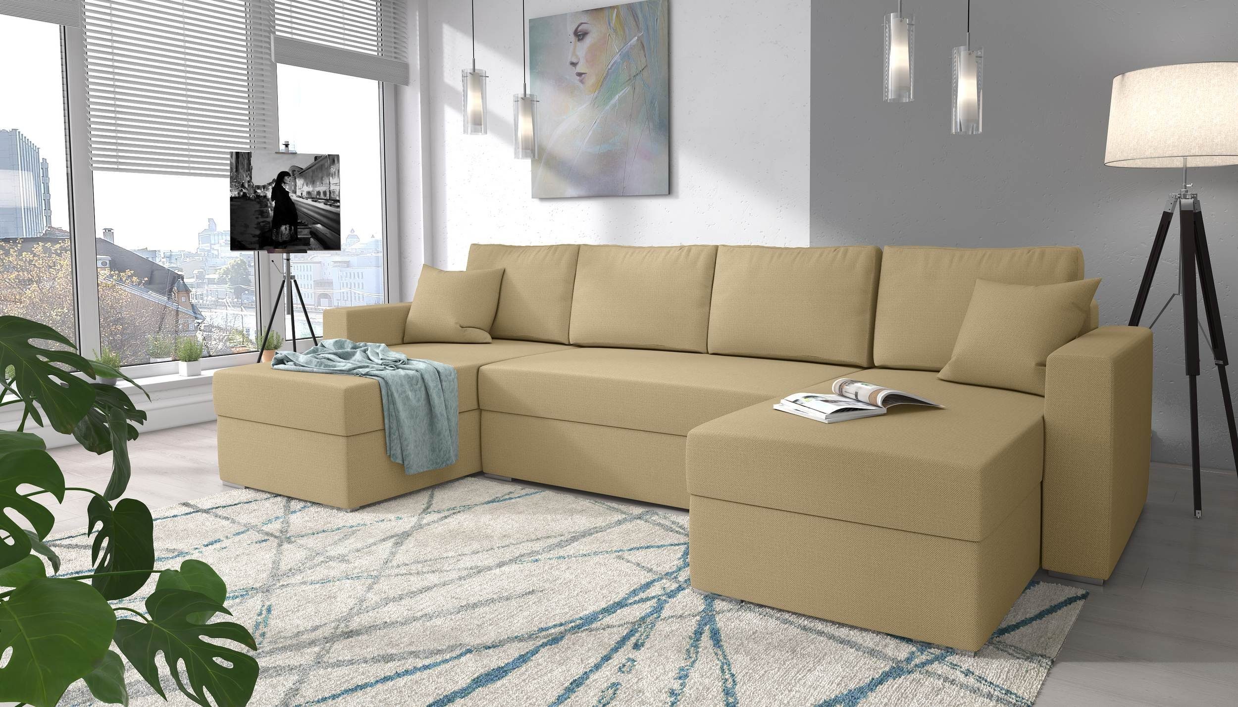 U-Form, Sofa, mit Bettfunktion und Bettkasten, inkl. Kissen, Sitzkomfort