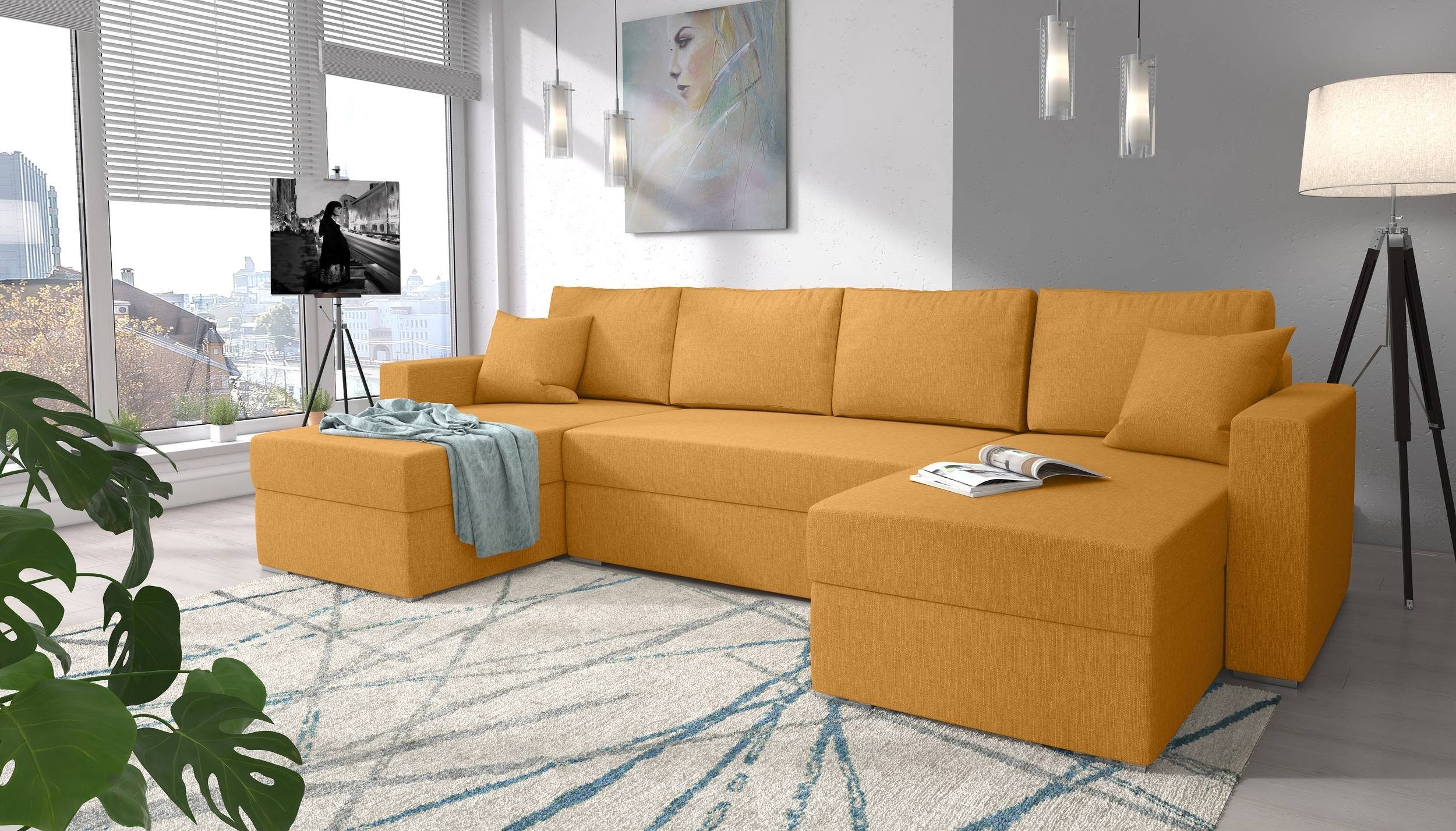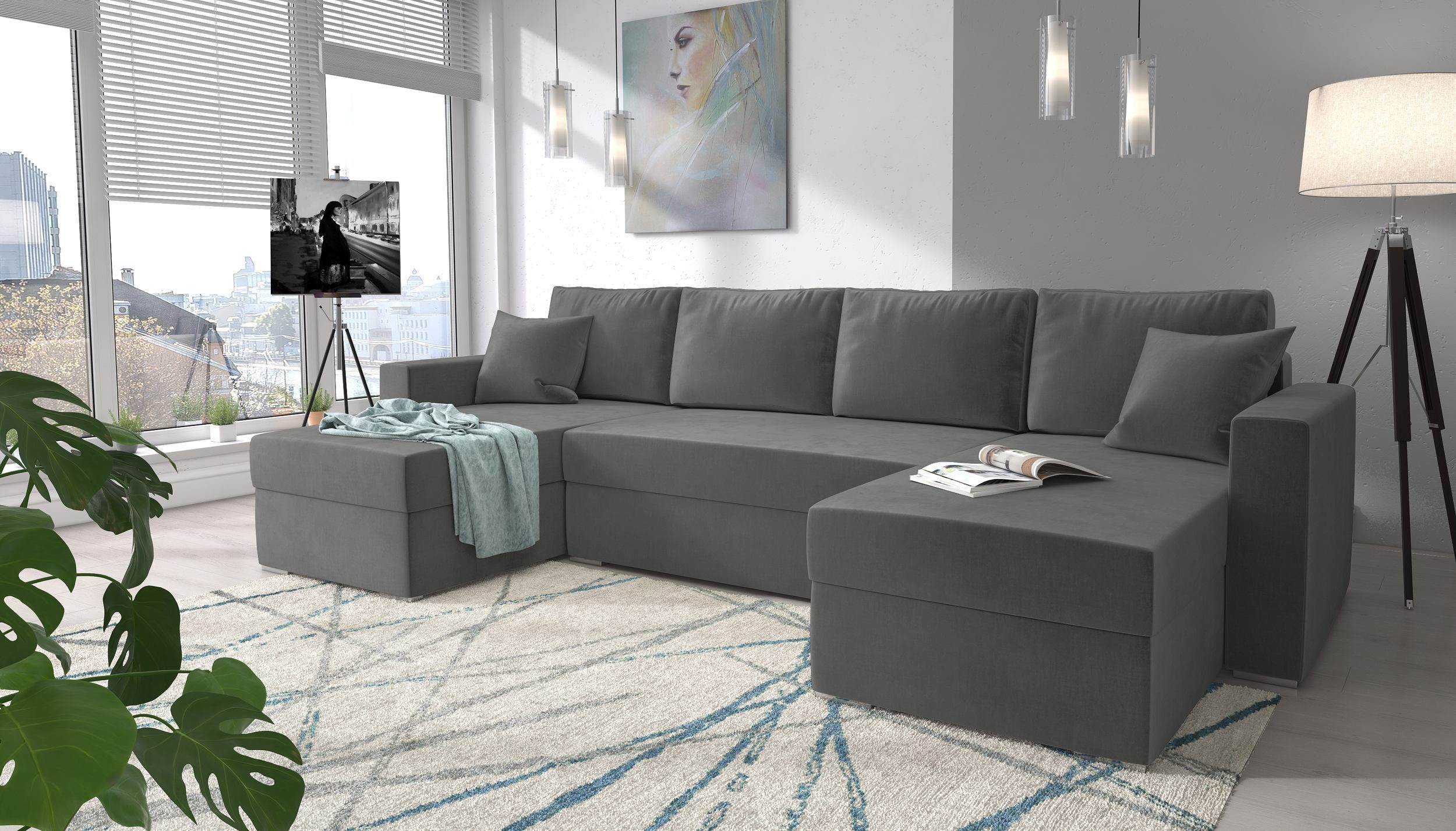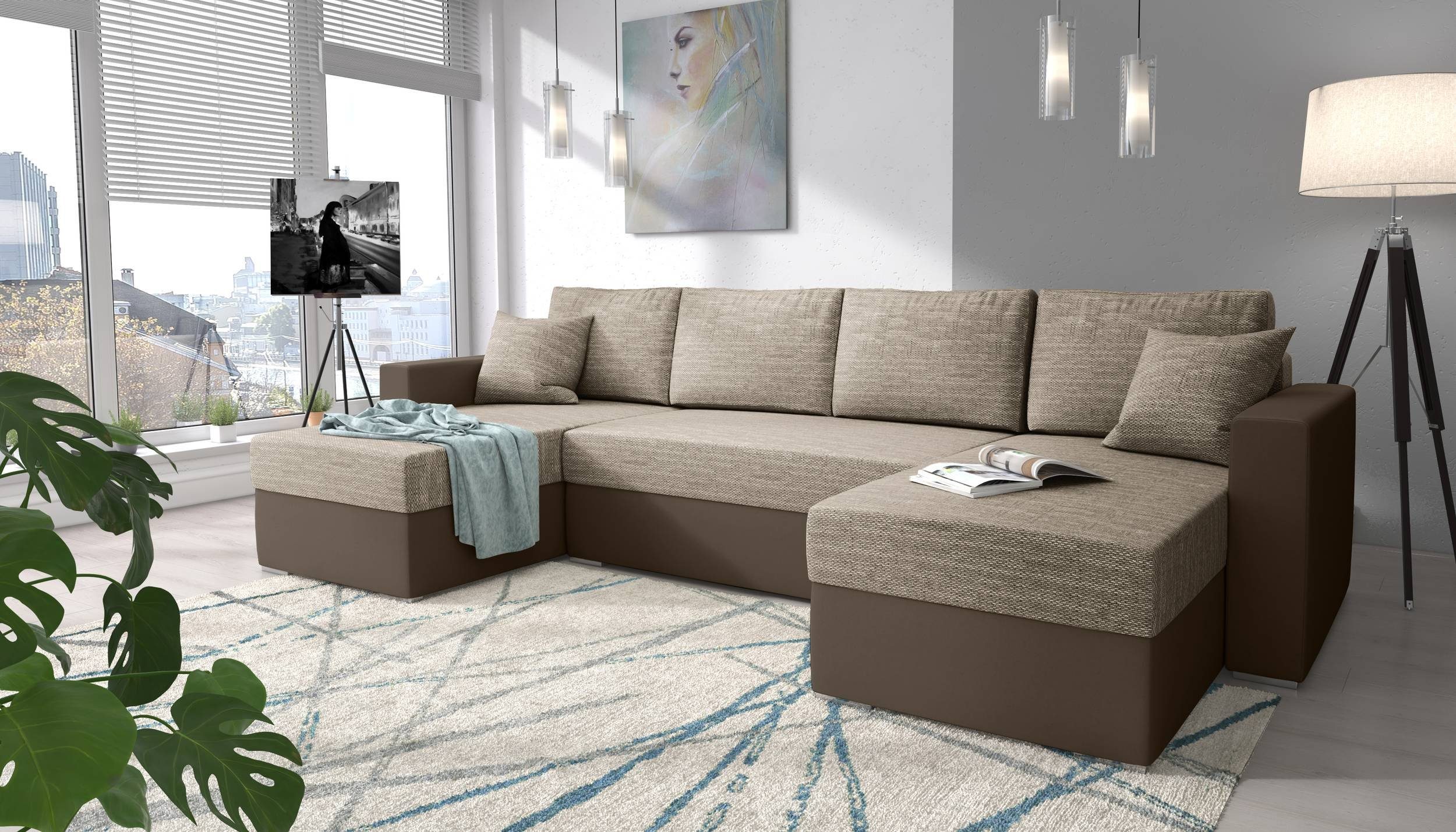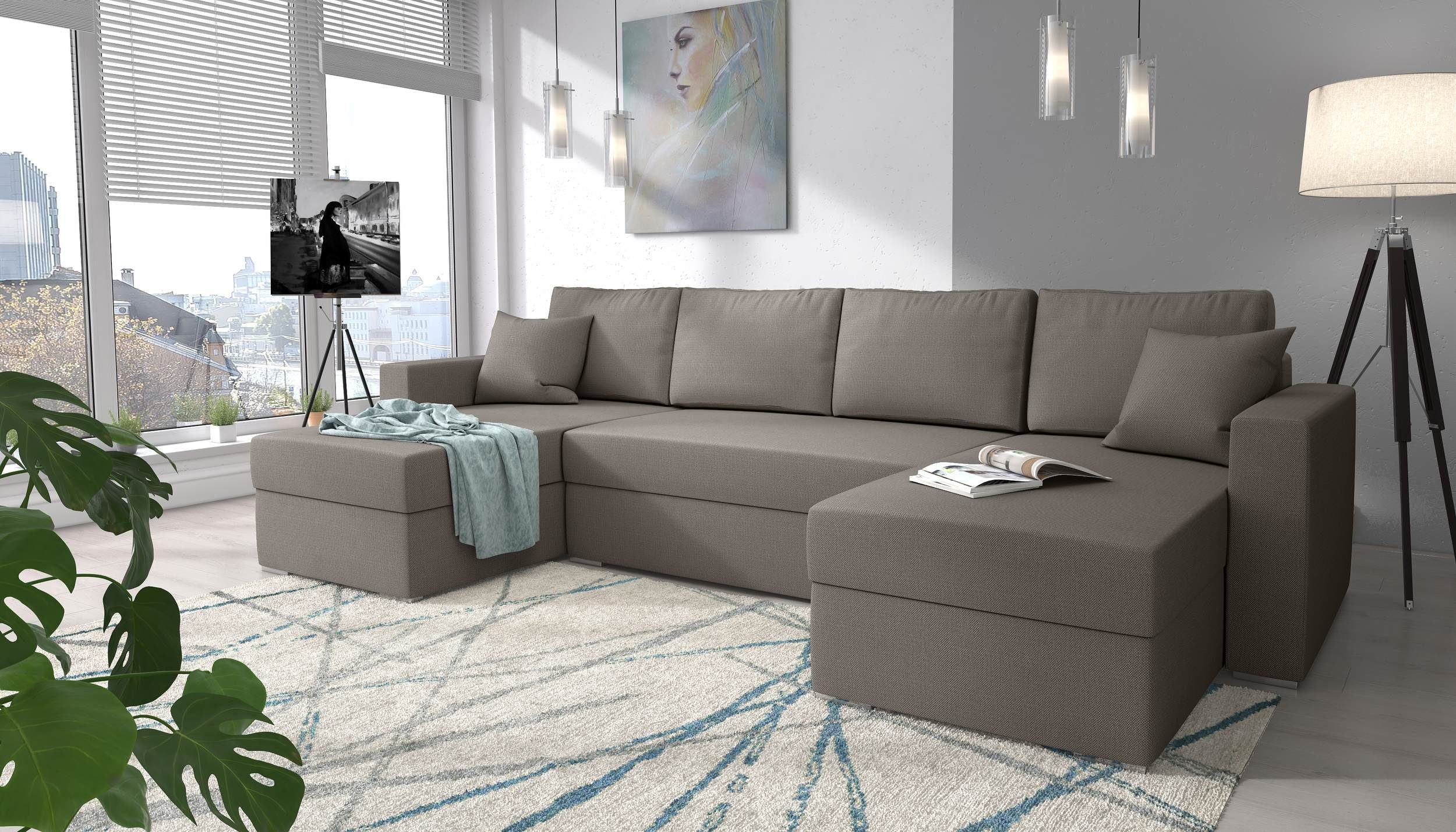 U-Form, Sofa, mit Bettfunktion und Bettkasten, inkl. Kissen, Sitzkomfort