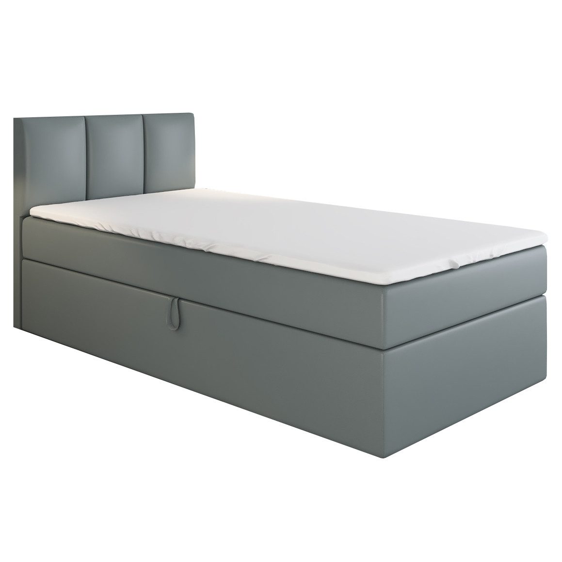 Boxspringbett Einzelbett NASI mit Bettkasten, Topper und gepolstertem Kopfteil.