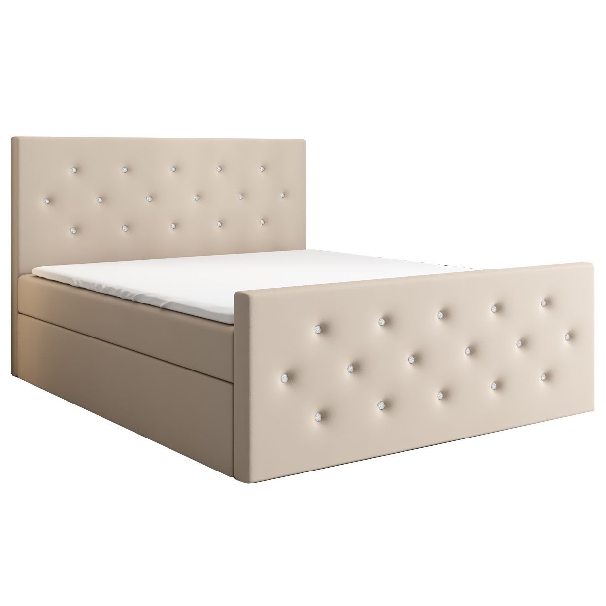 Boxspringbett mit Bettkasten, Topper und gepolstertem Kopfteil – erhältlich in verschiedenen Farben und Größen.
