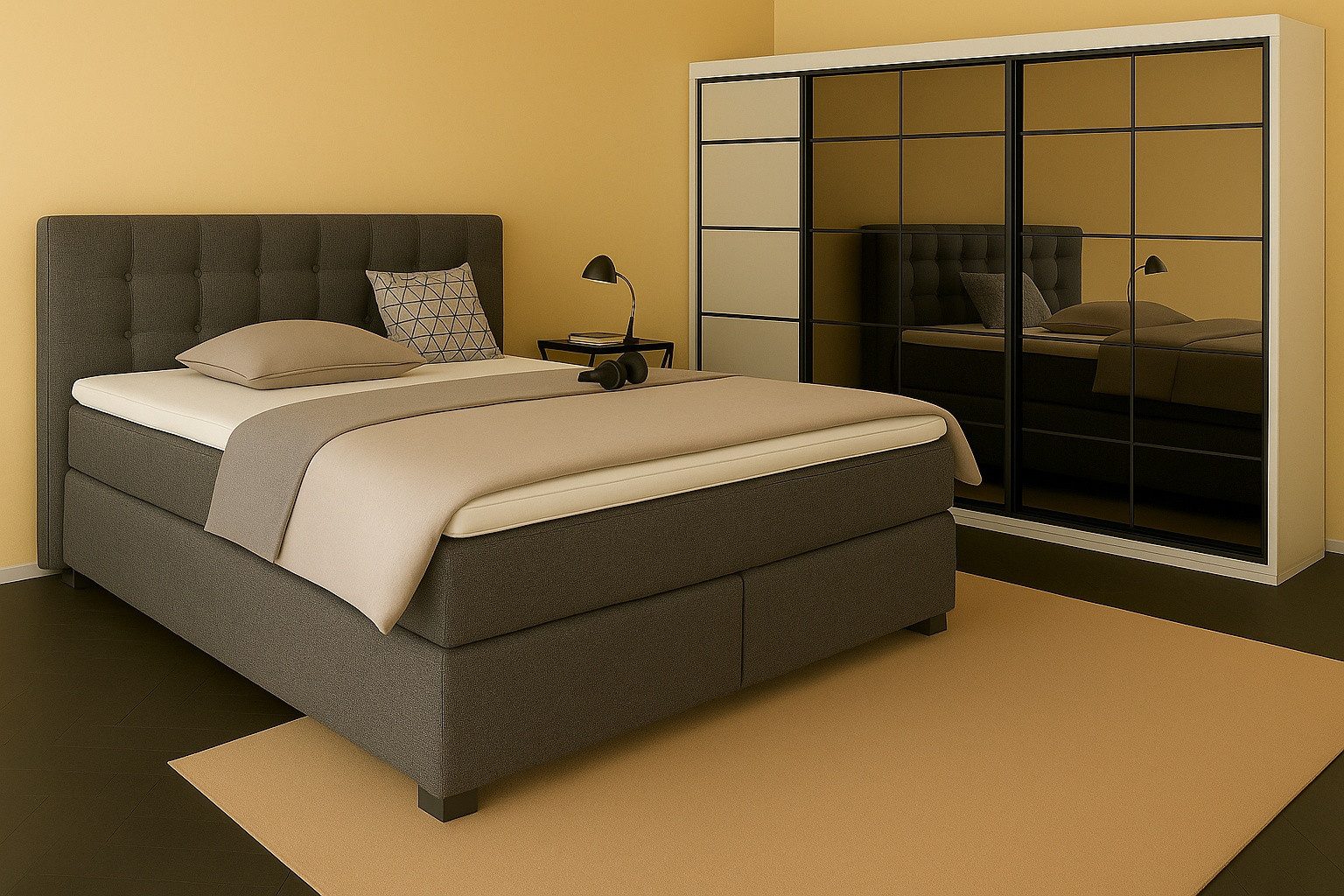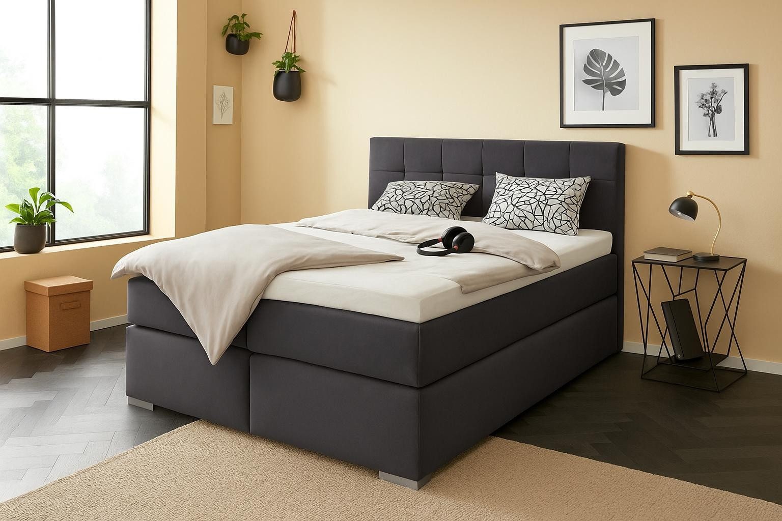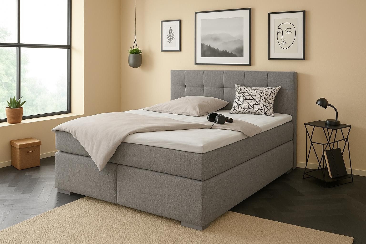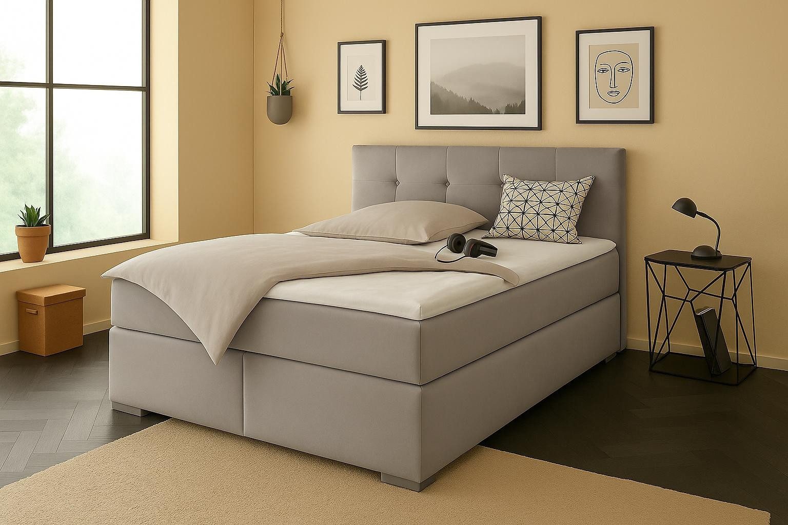 Elegantes Boxspringbett mit gepolstertem Kopfteil – in verschiedenen Farben und Größen erhältlich