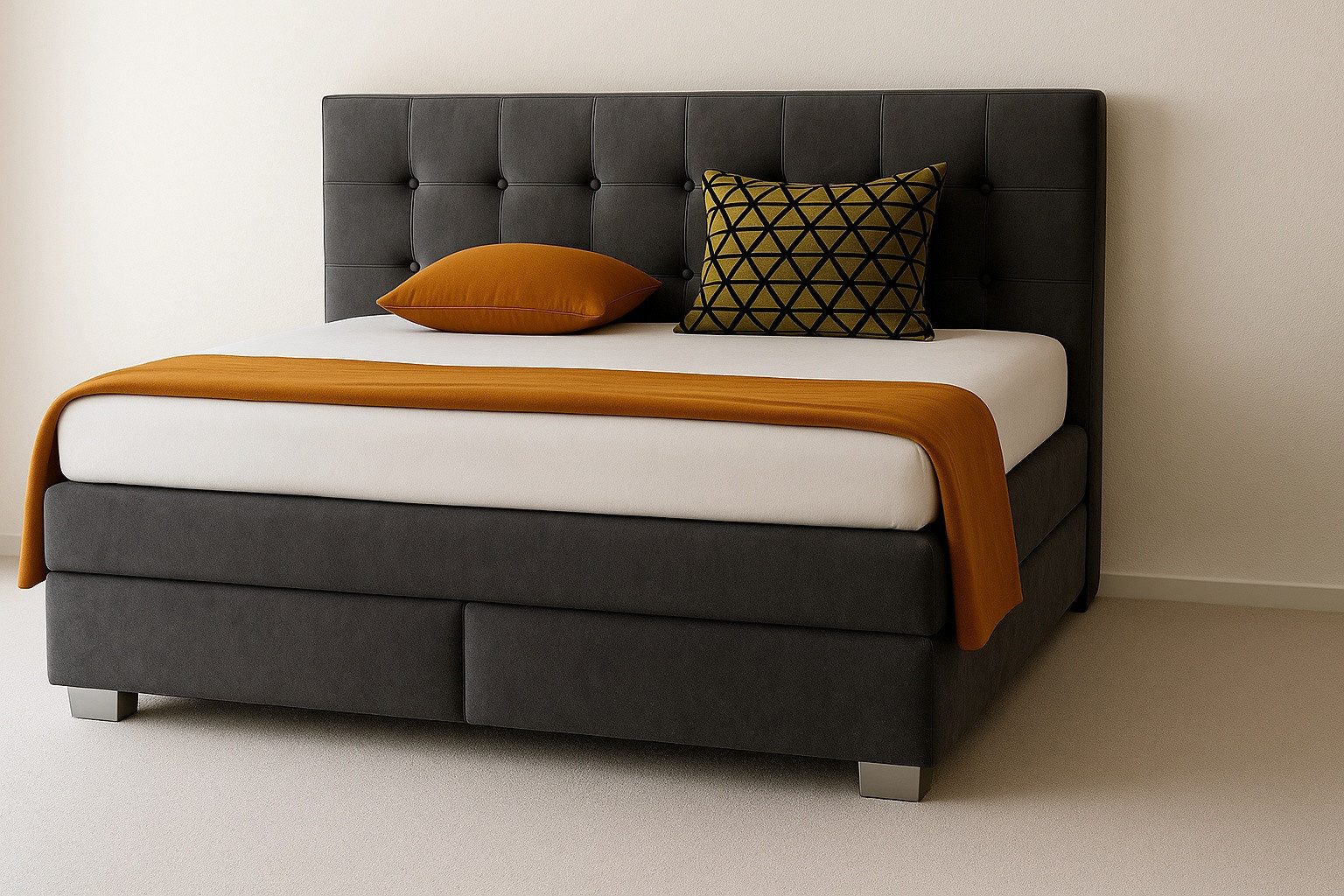 Elegantes Boxspringbett mit gepolstertem Kopfteil – in verschiedenen Farben und Größen erhältlich