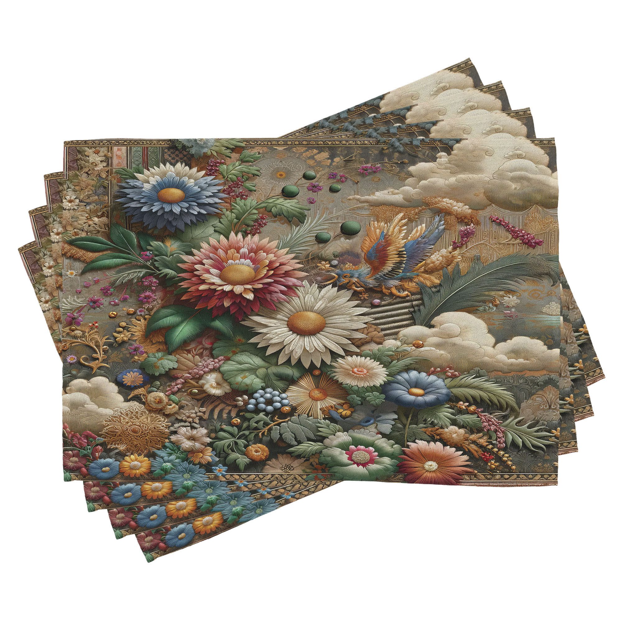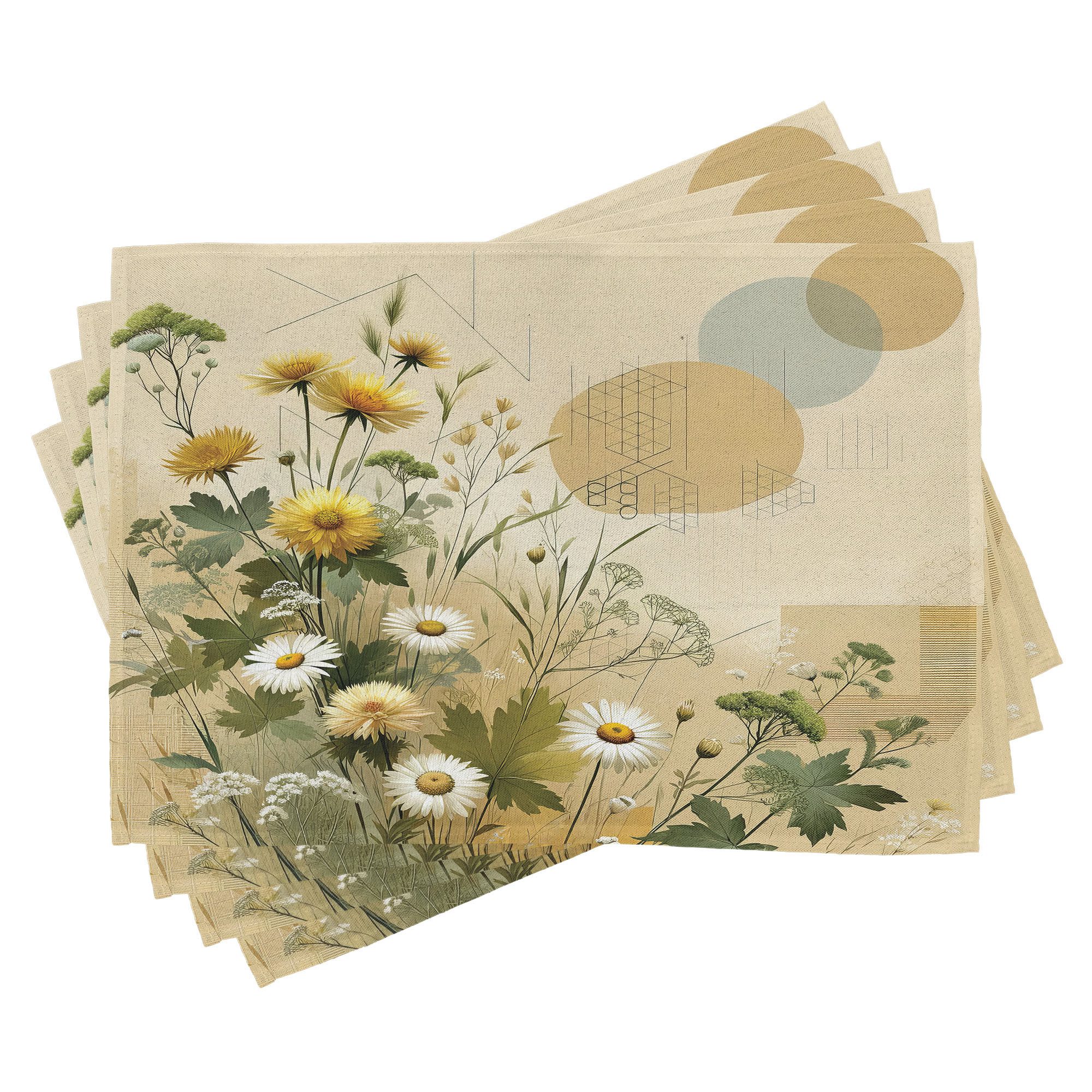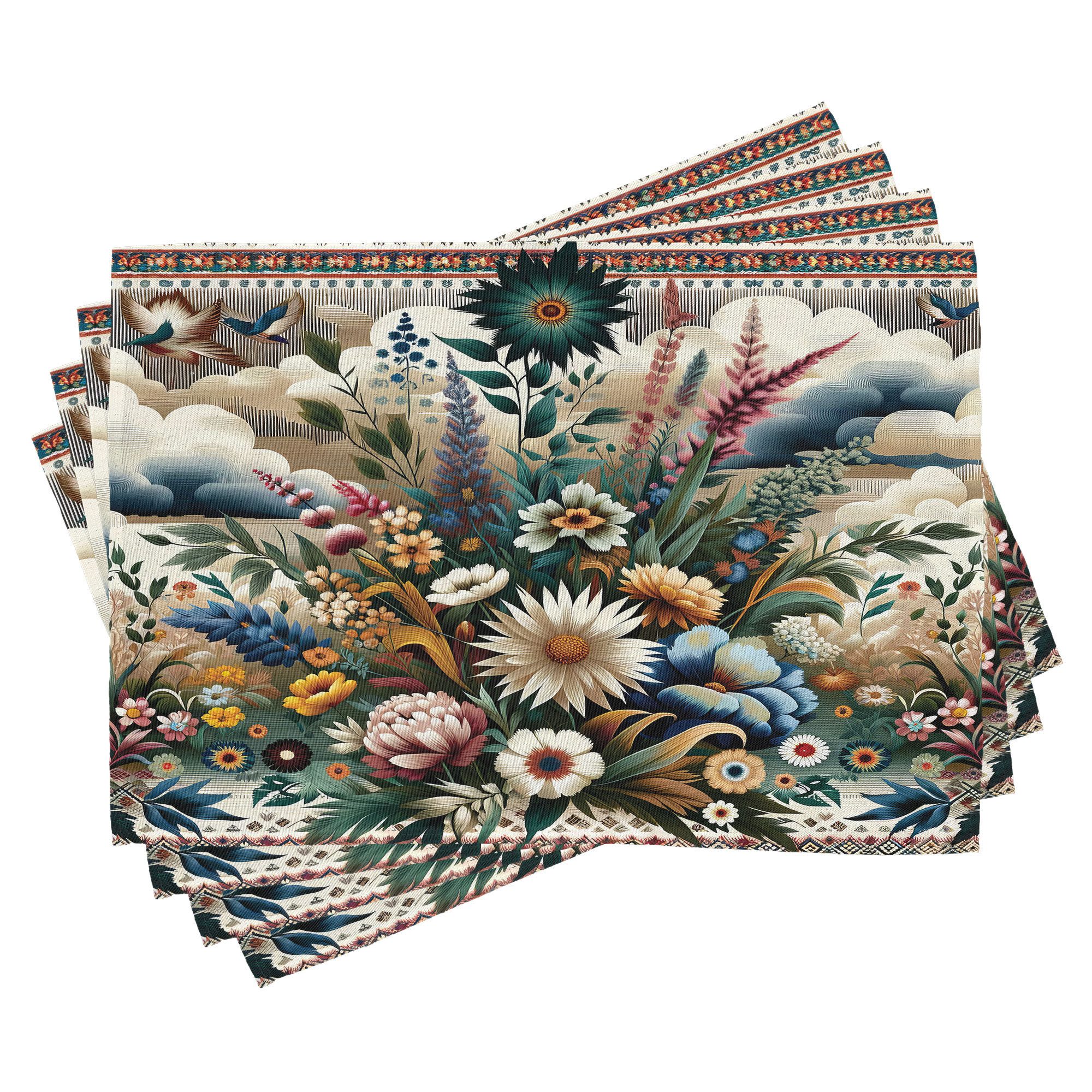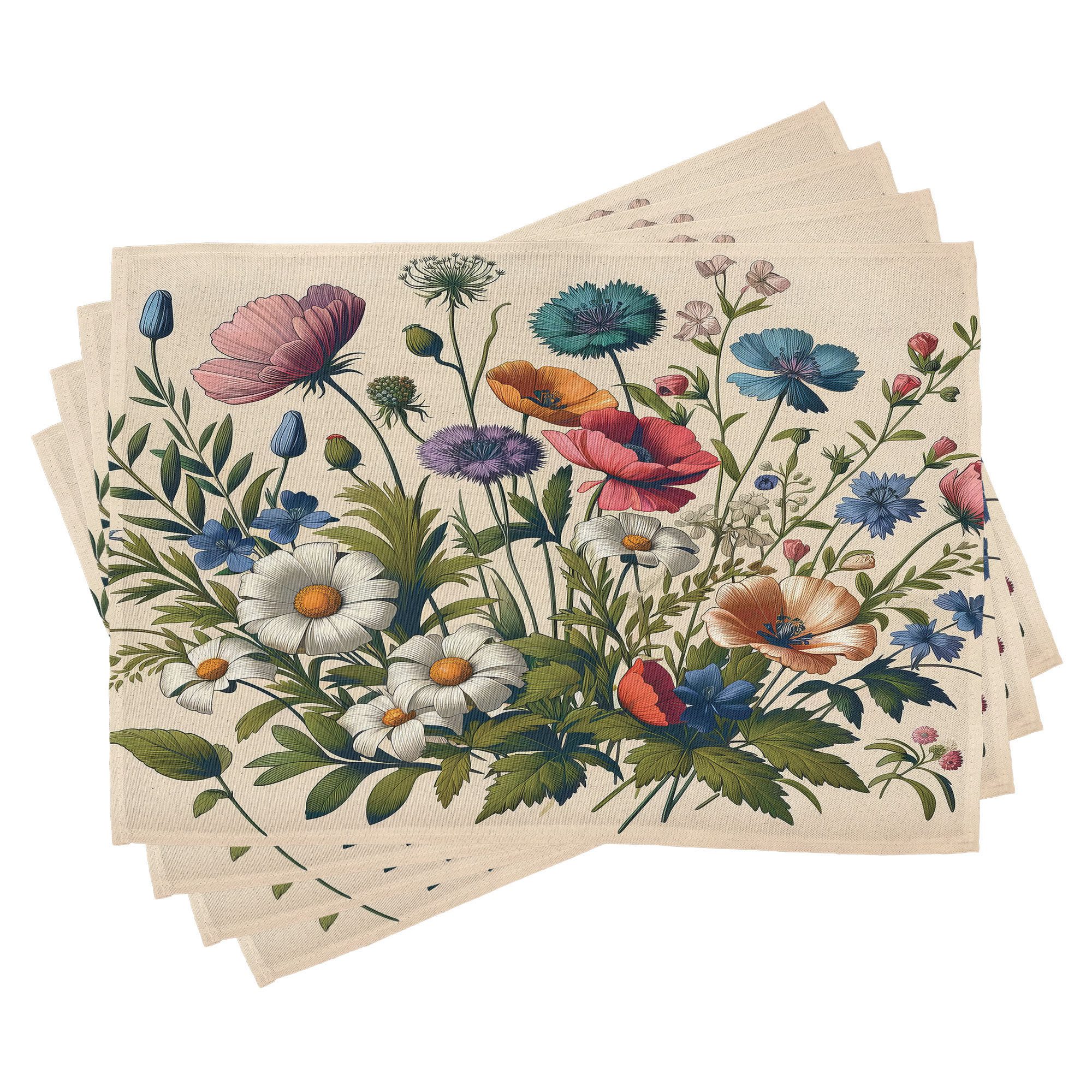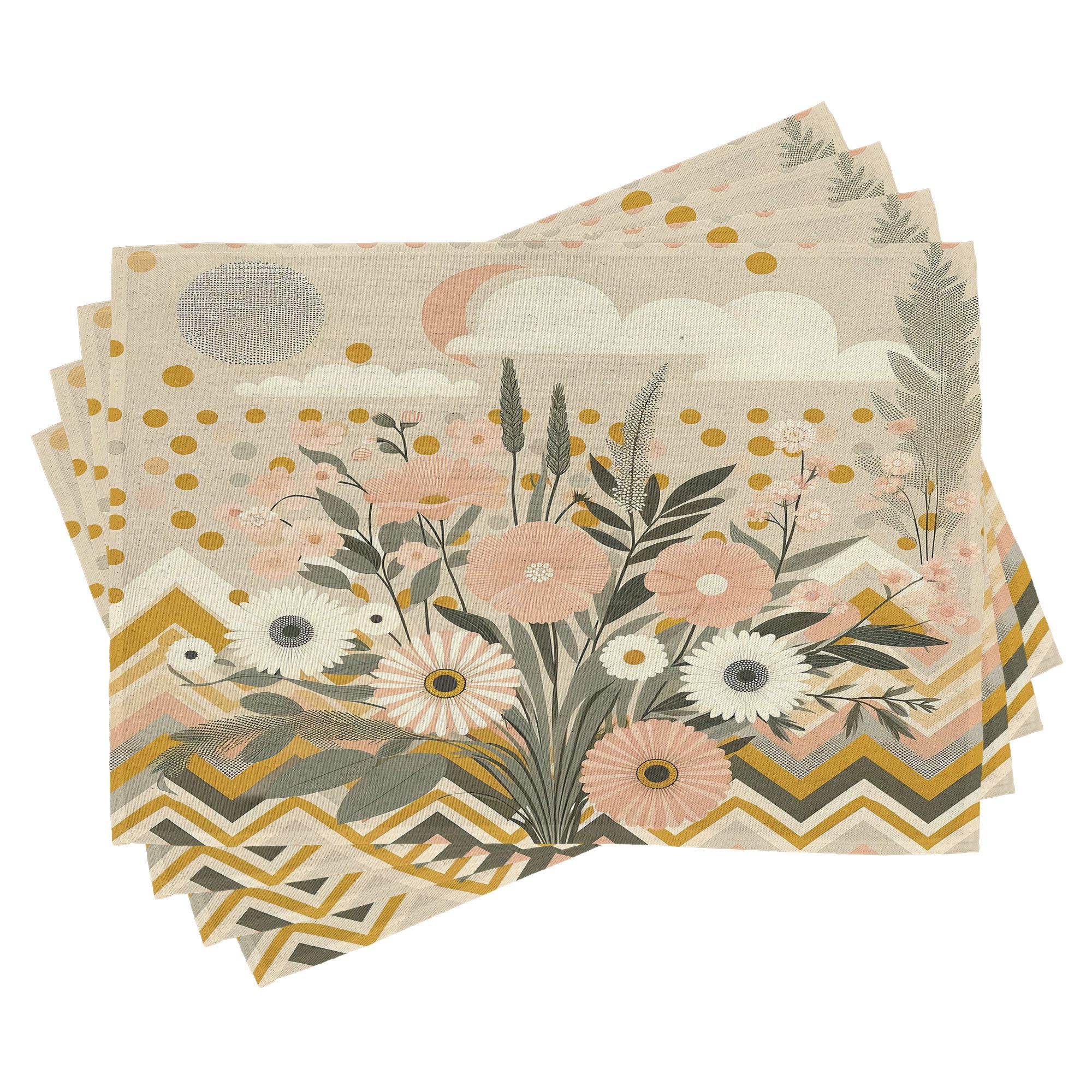Ein vierteiliges Tischmattenset, je 30 cm lang und 45 cm breit. Mit handgenähten Kanten.