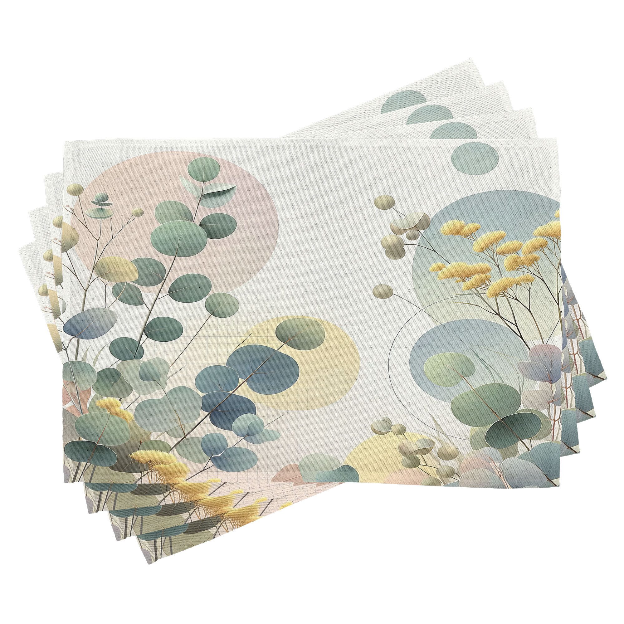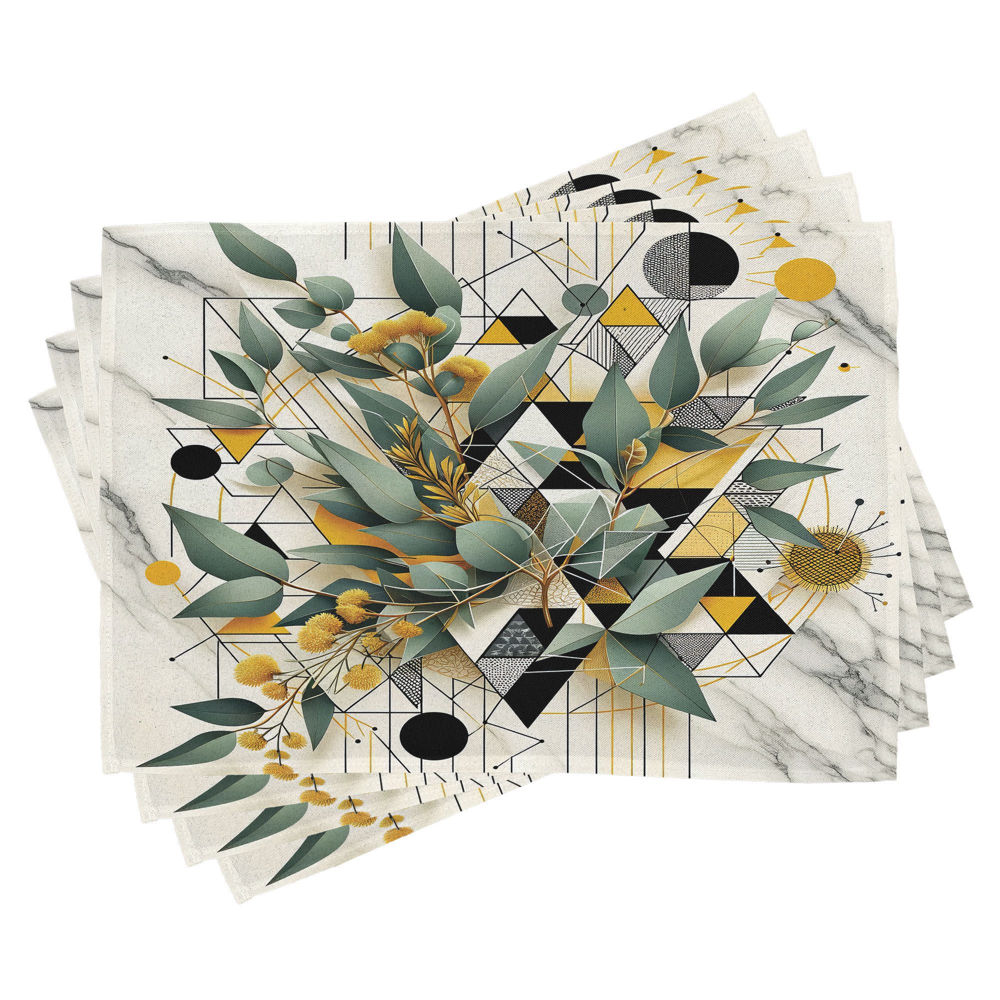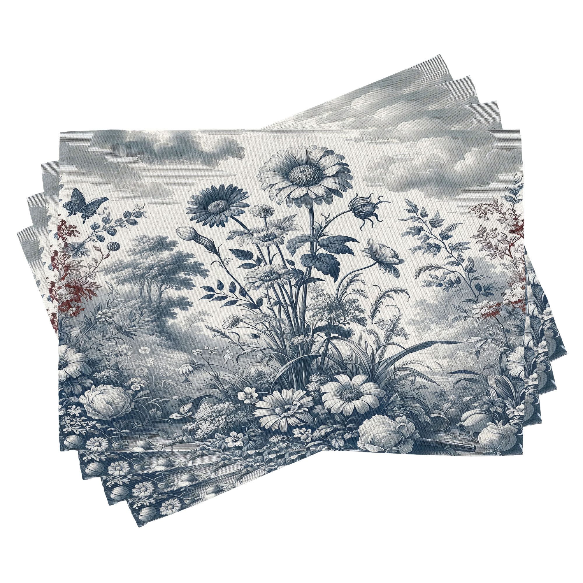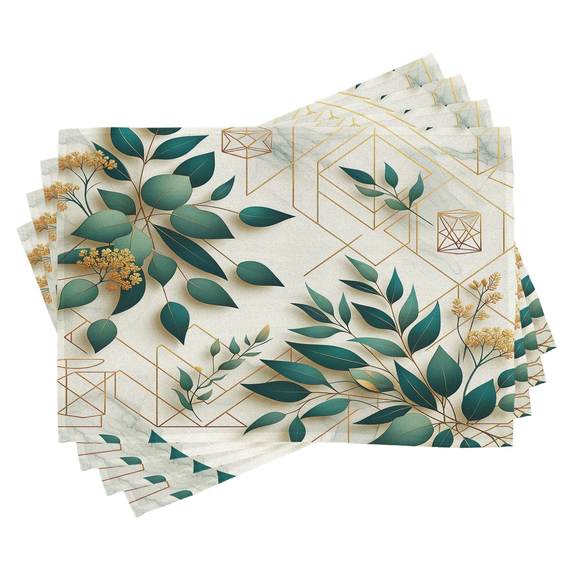 Ein vierteiliges Tischmattenset, je 30 cm lang und 45 cm breit. Mit handgenähten Kanten.