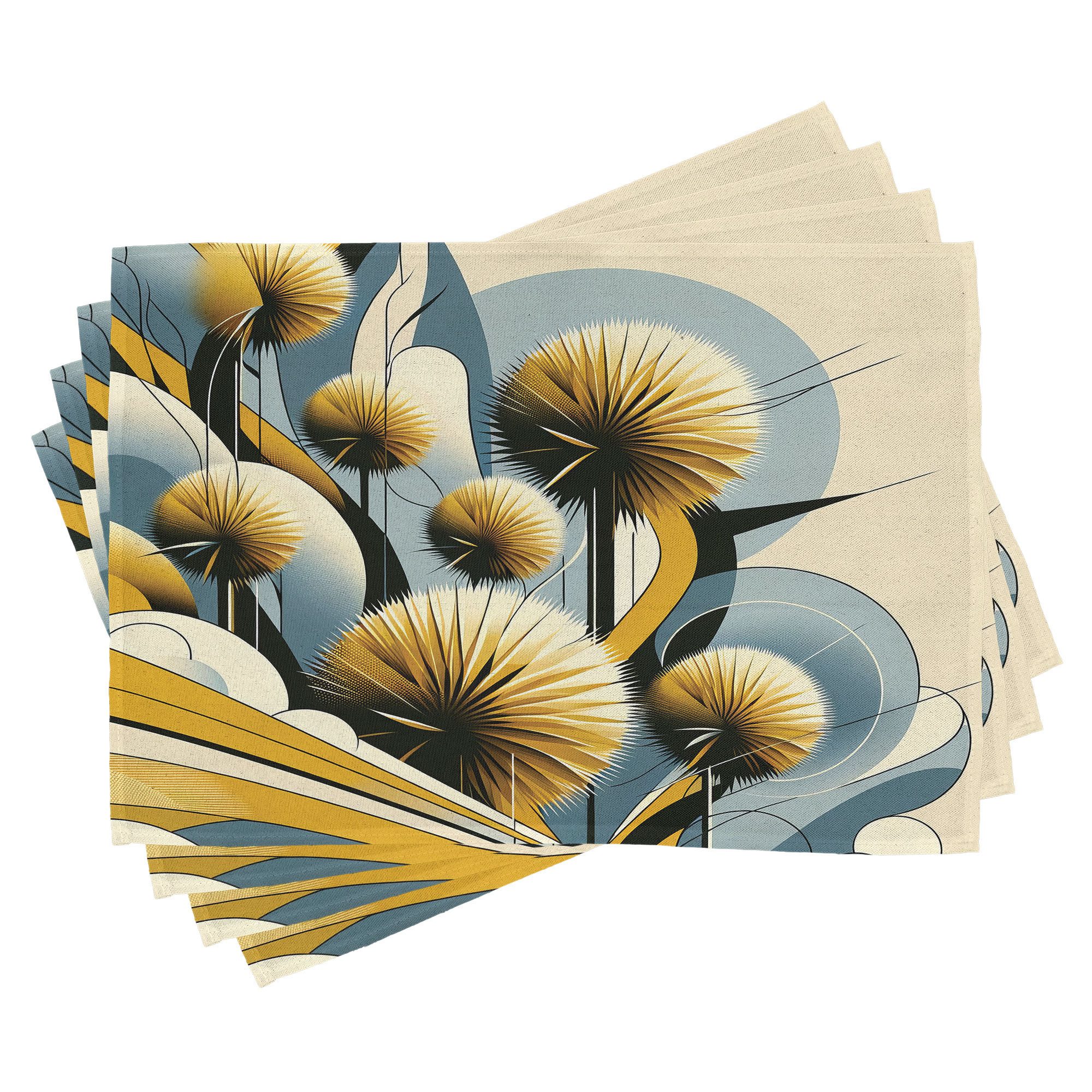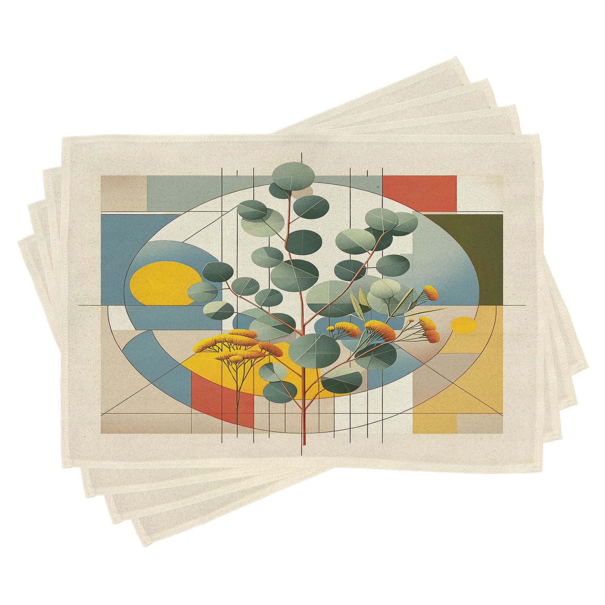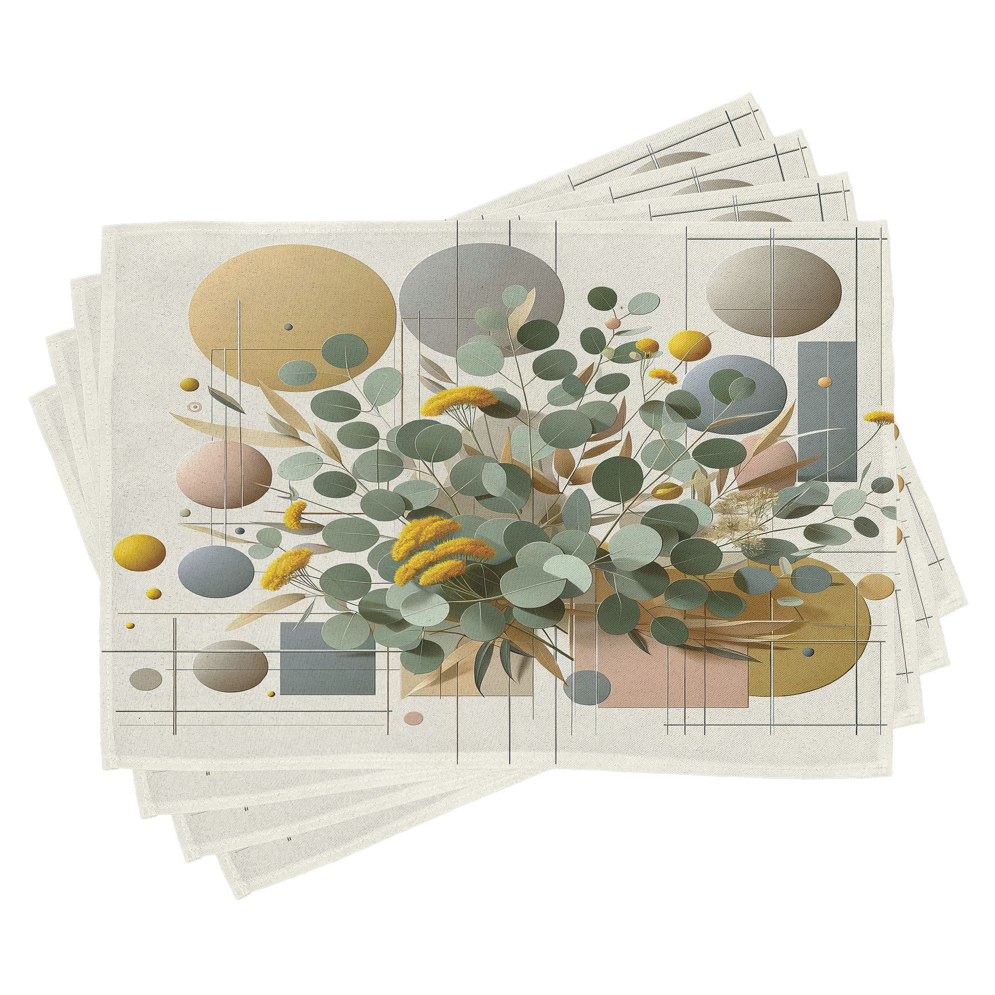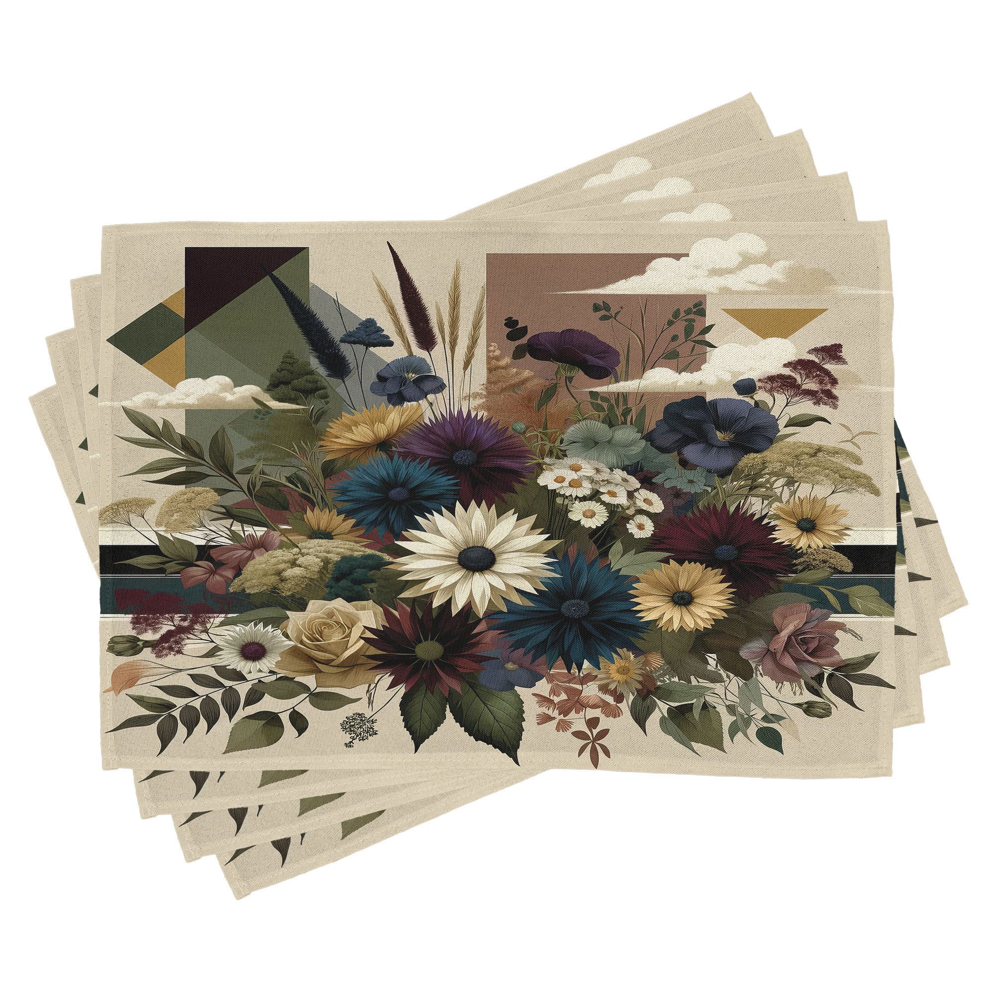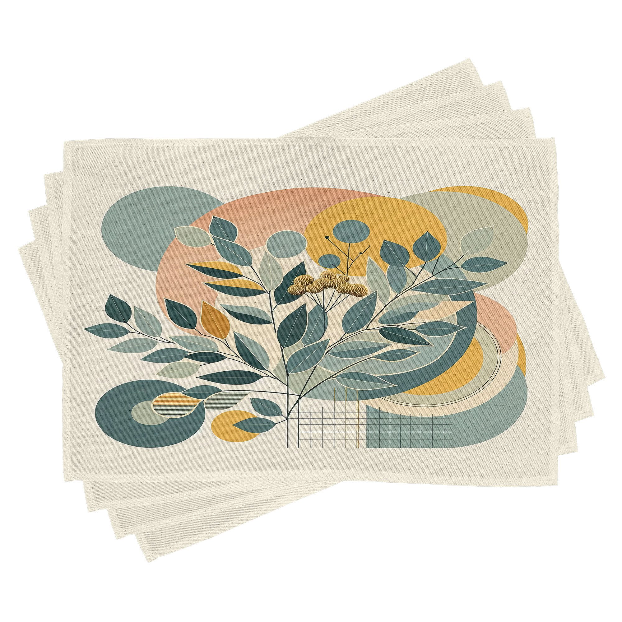 Ein vierteiliges Tischmattenset, je 30 cm lang und 45 cm breit. Mit handgenähten Kanten.