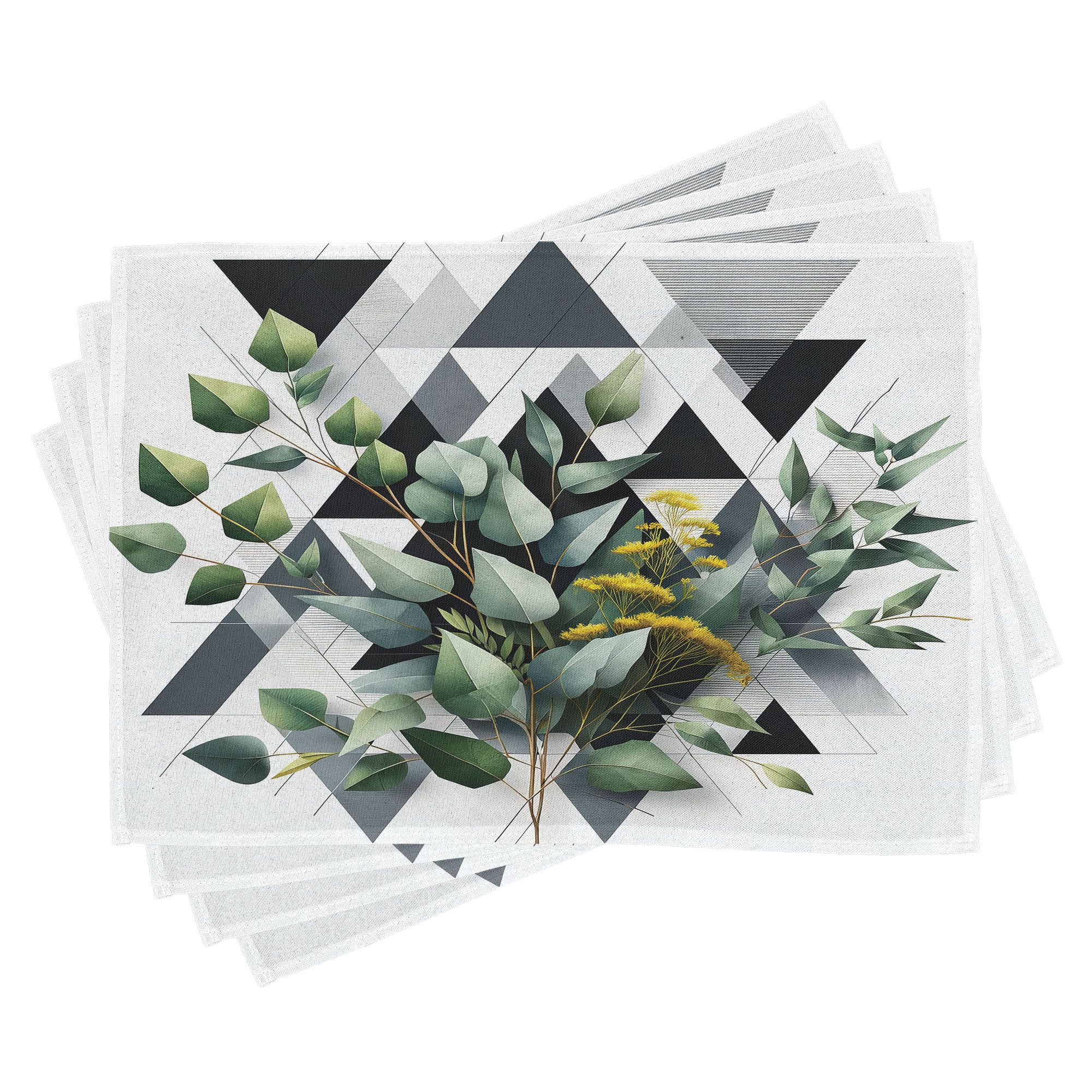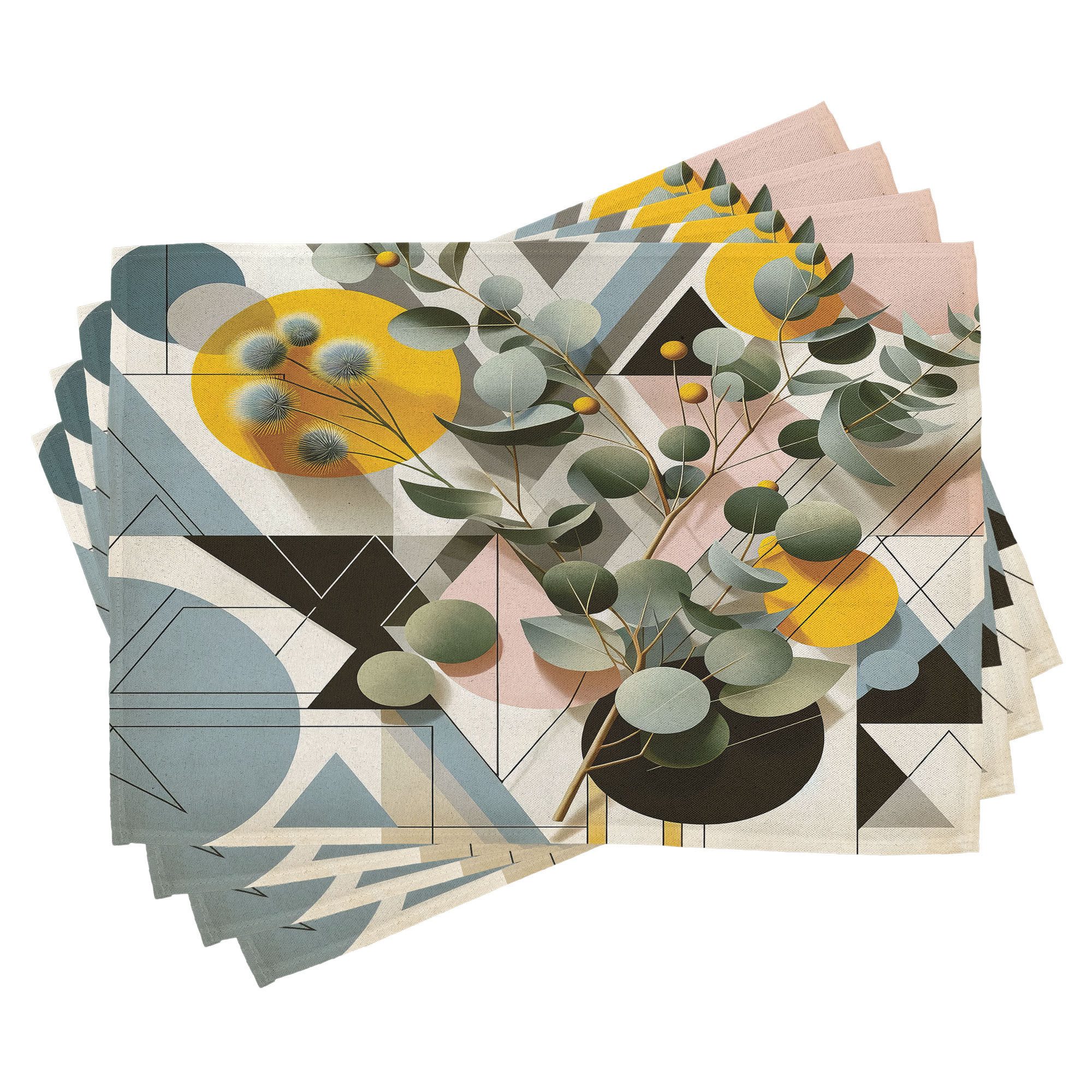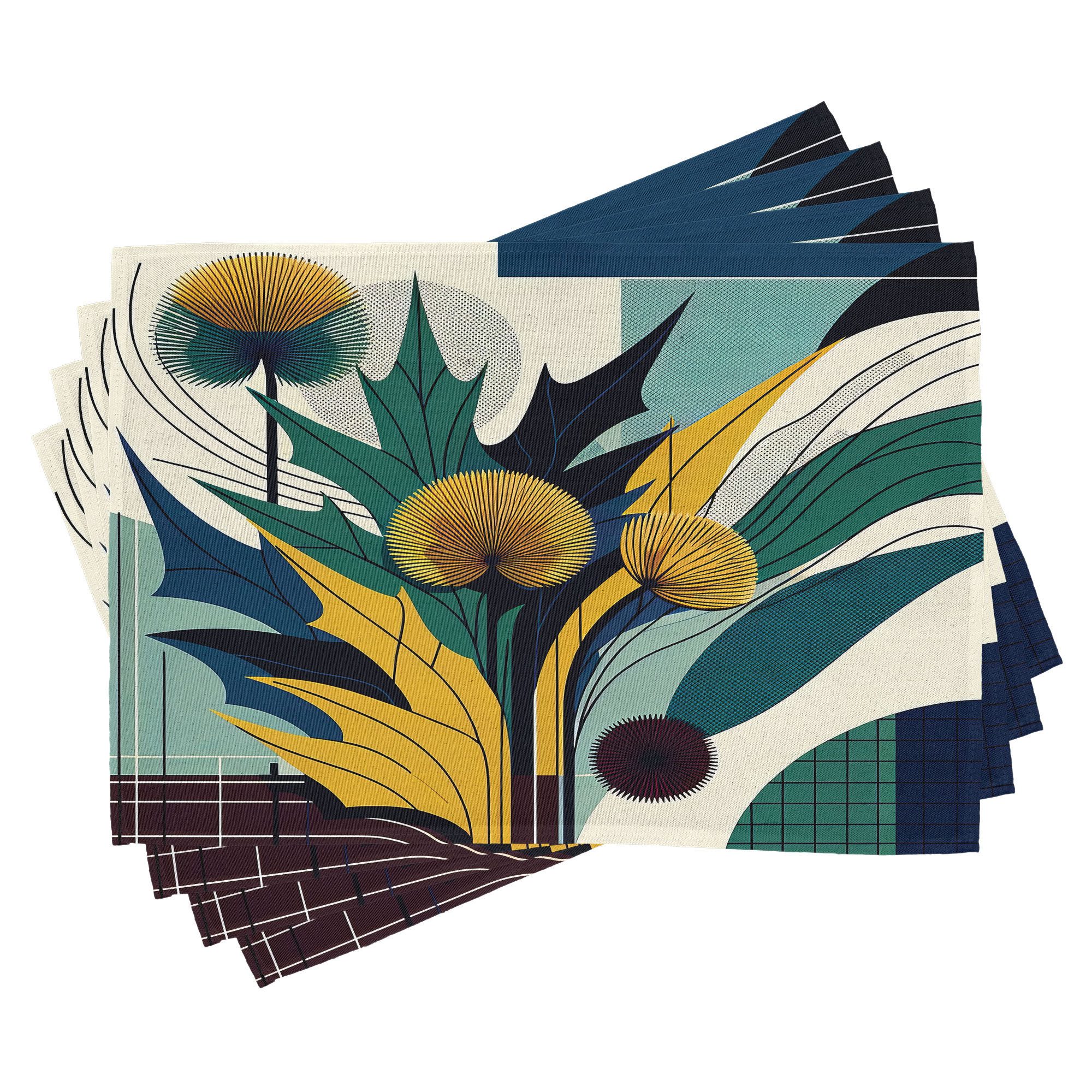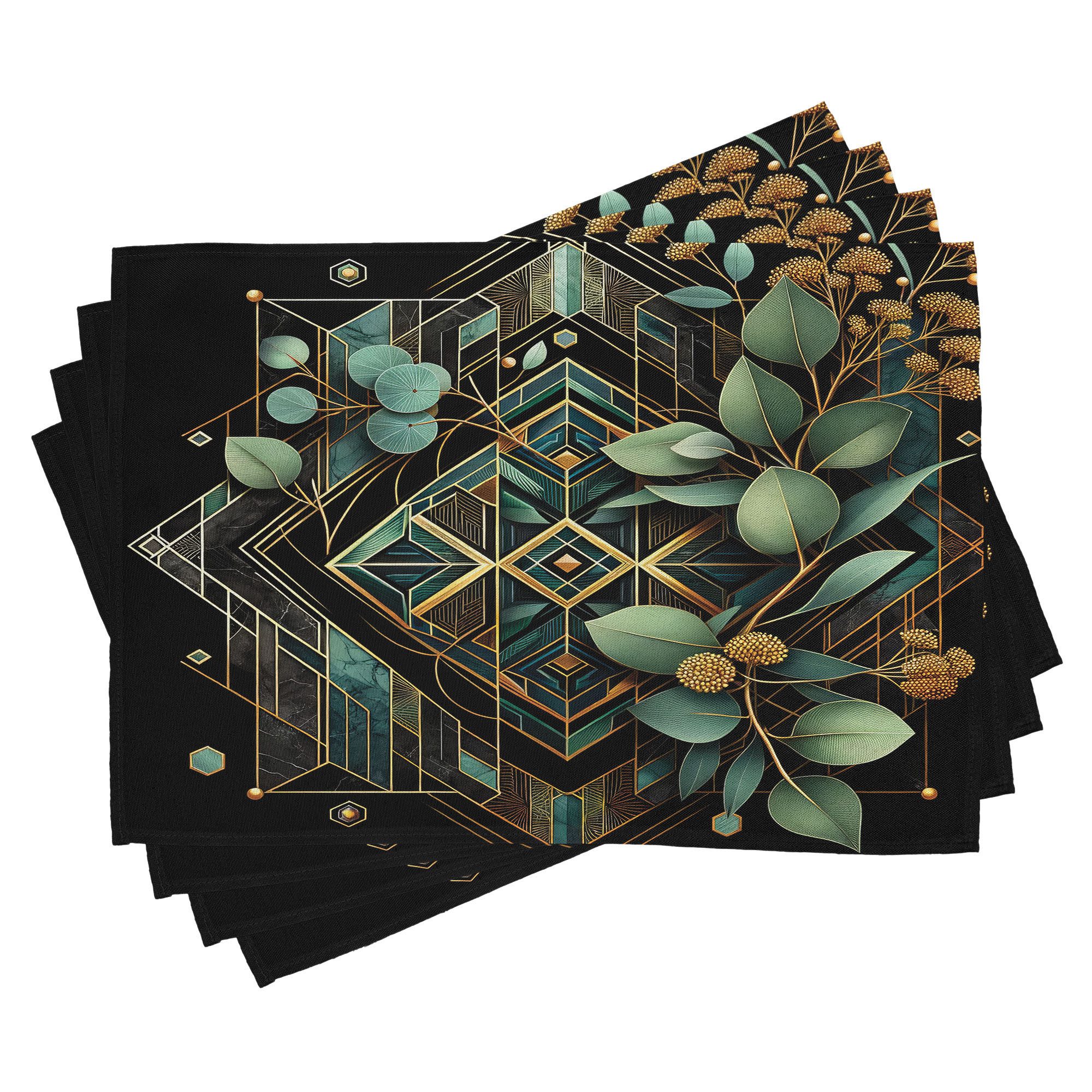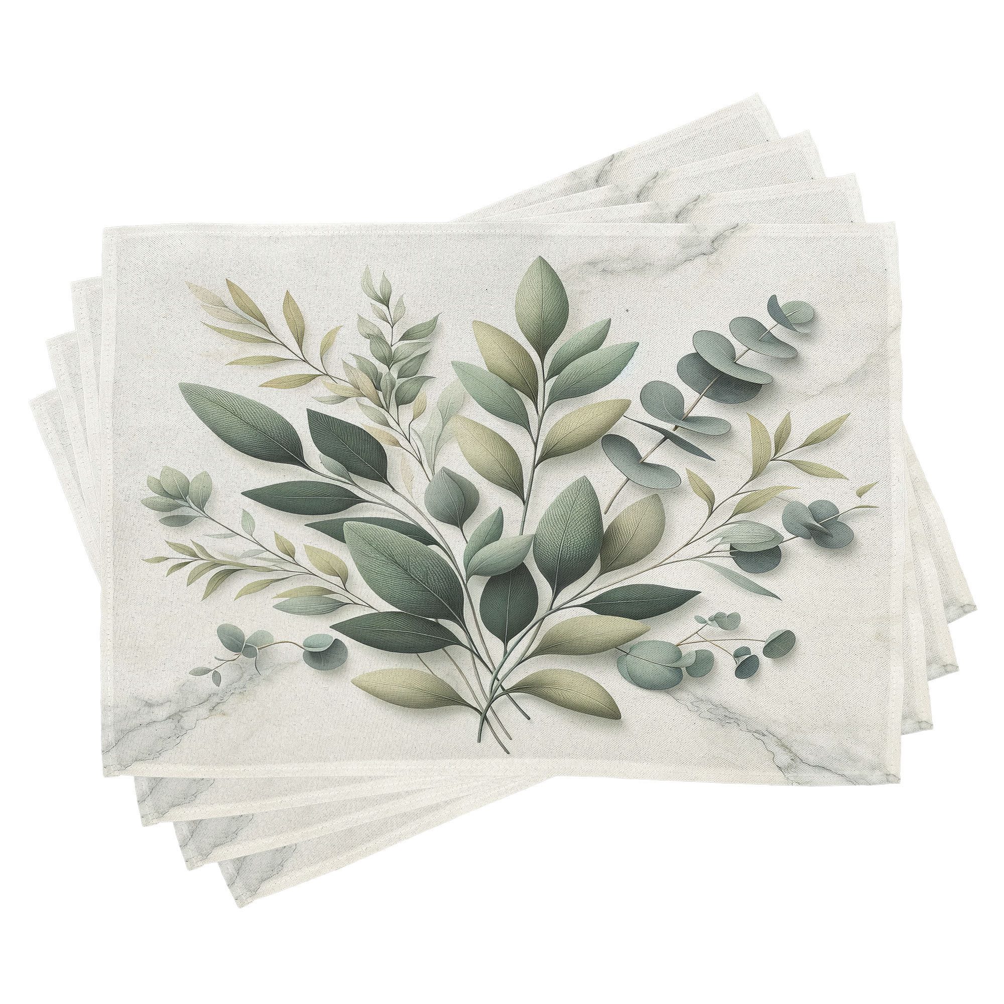 Ein vierteiliges Tischmattenset, je 30 cm lang und 45 cm breit. Mit handgenähten Kanten.