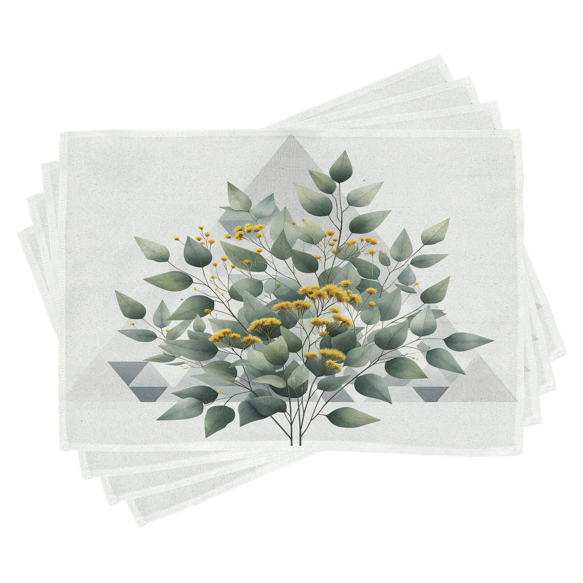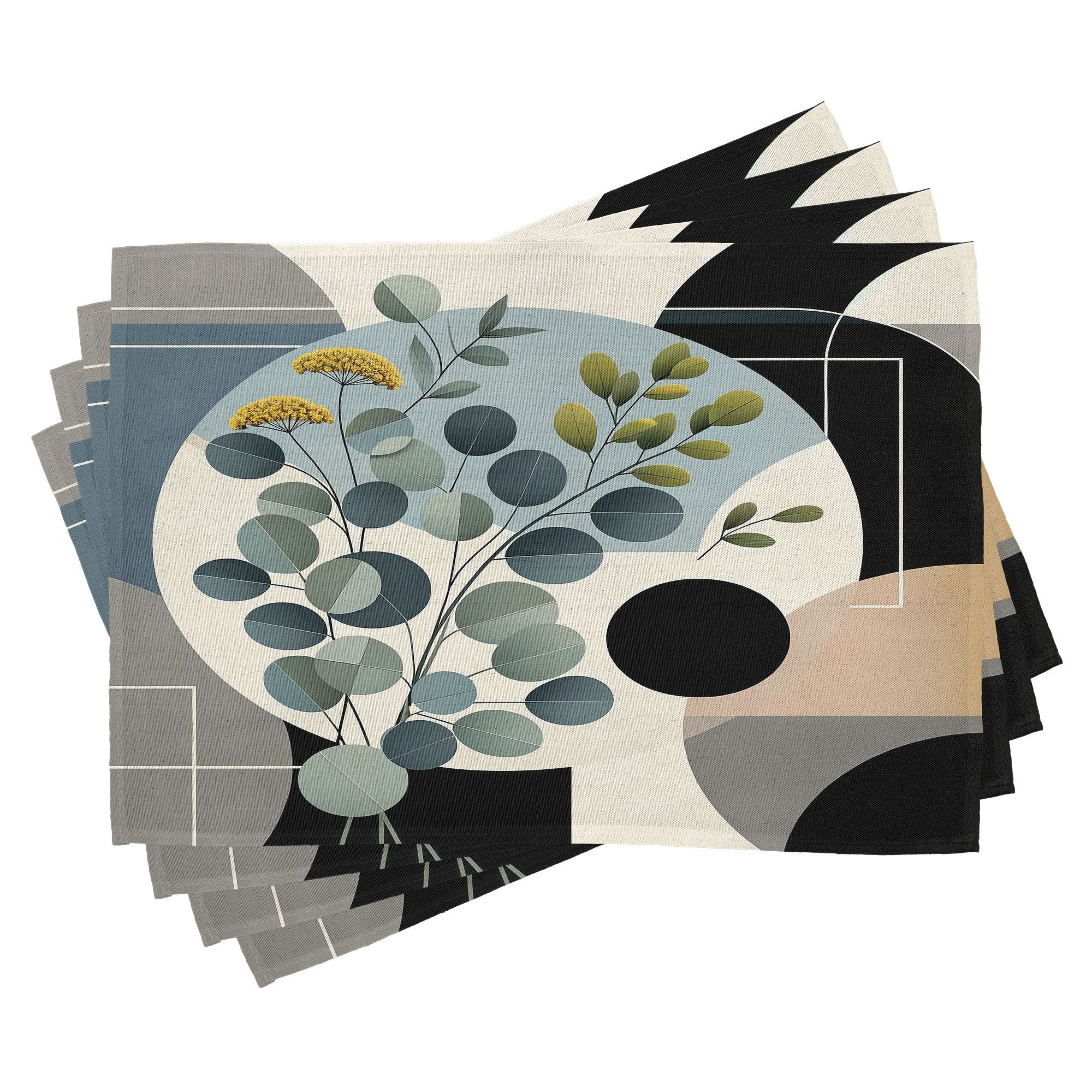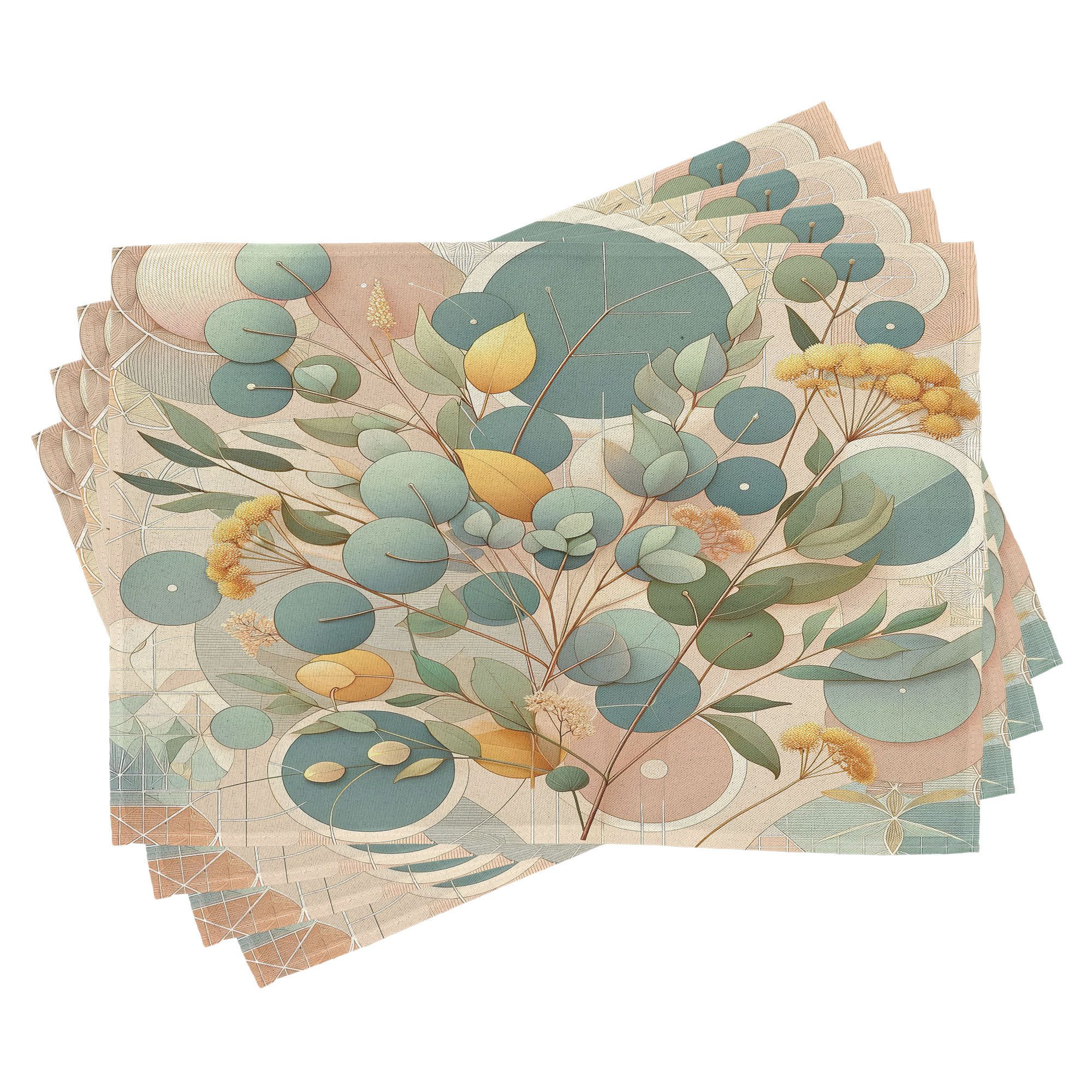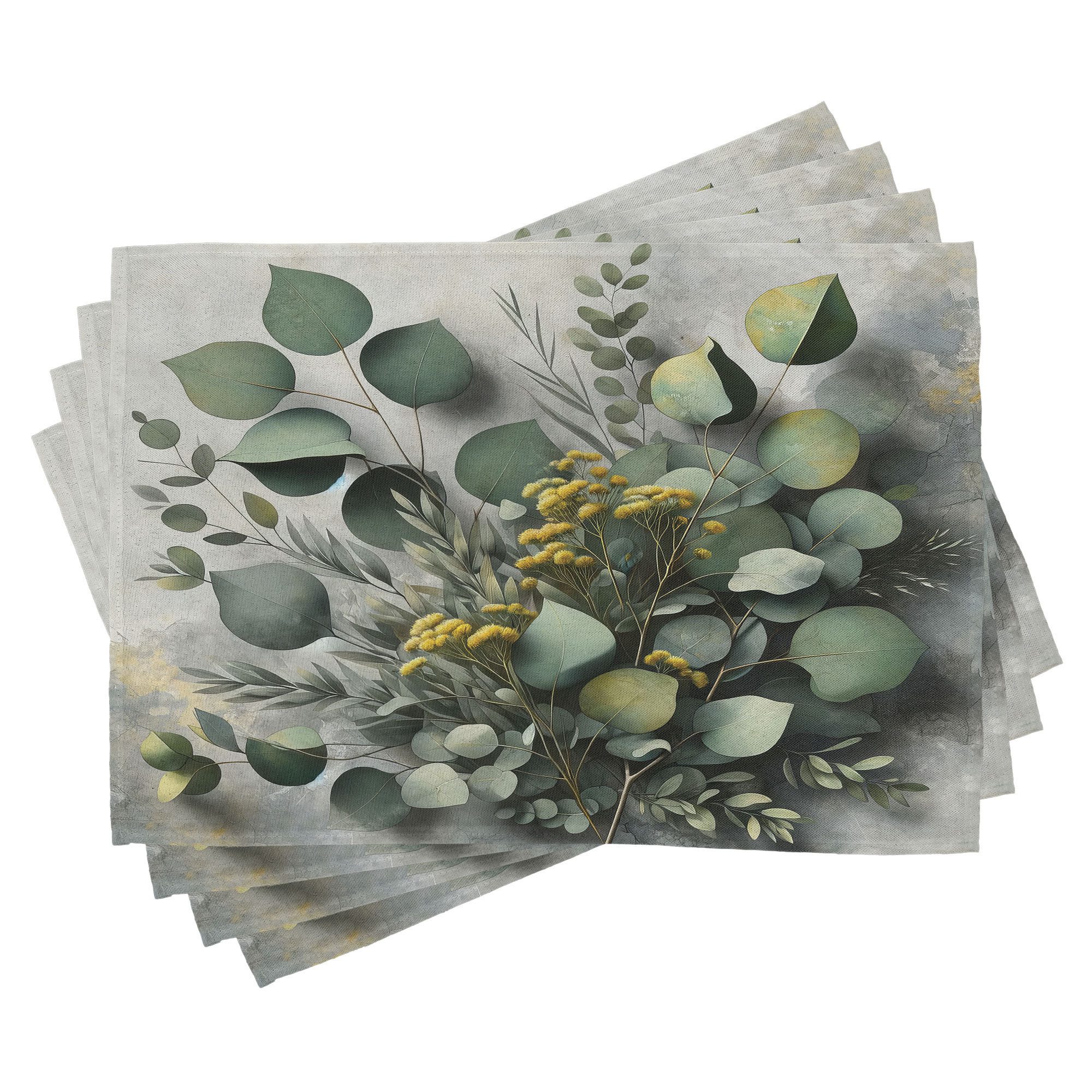 Ein vierteiliges Tischmattenset, je 30 cm lang und 45 cm breit. Mit handgenähten Kanten.
