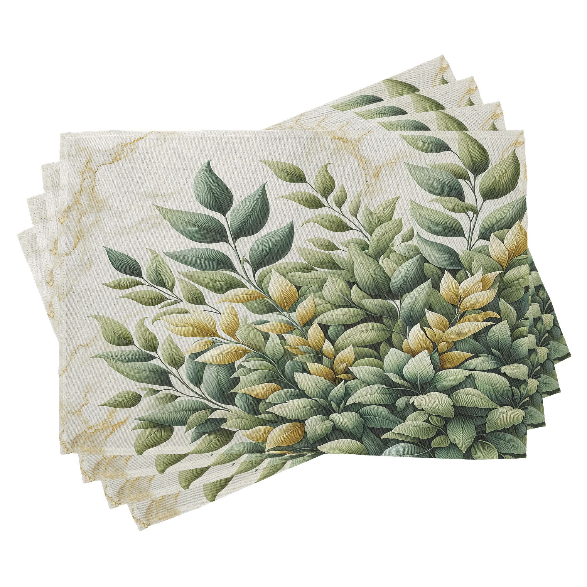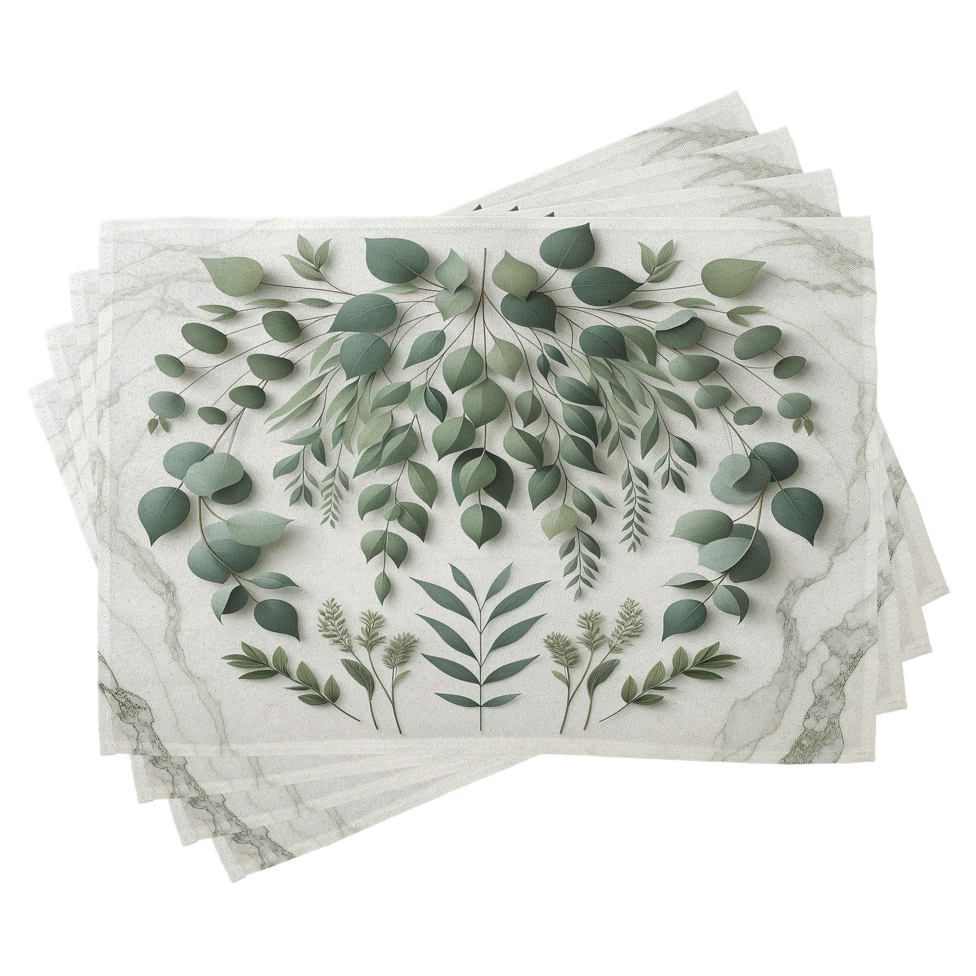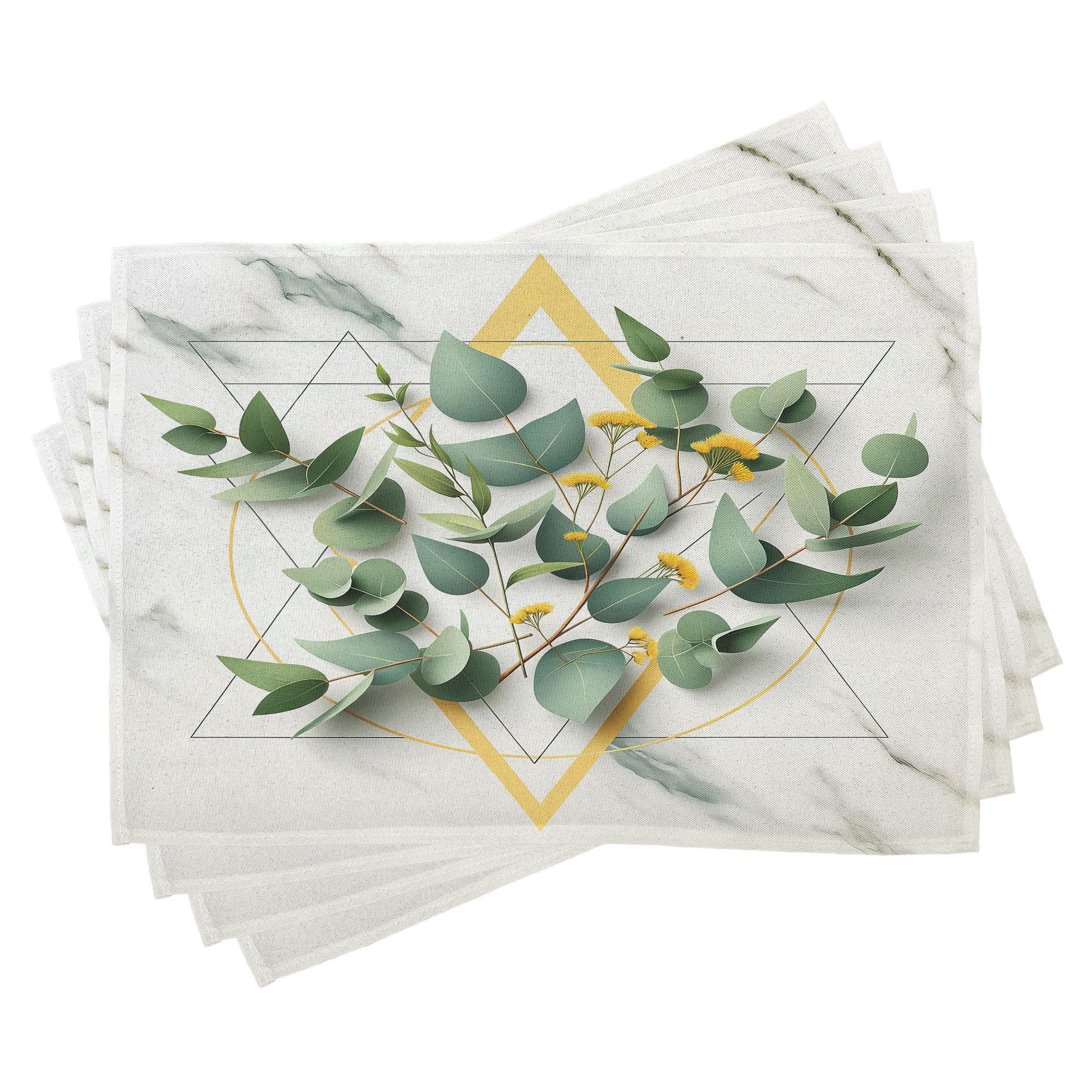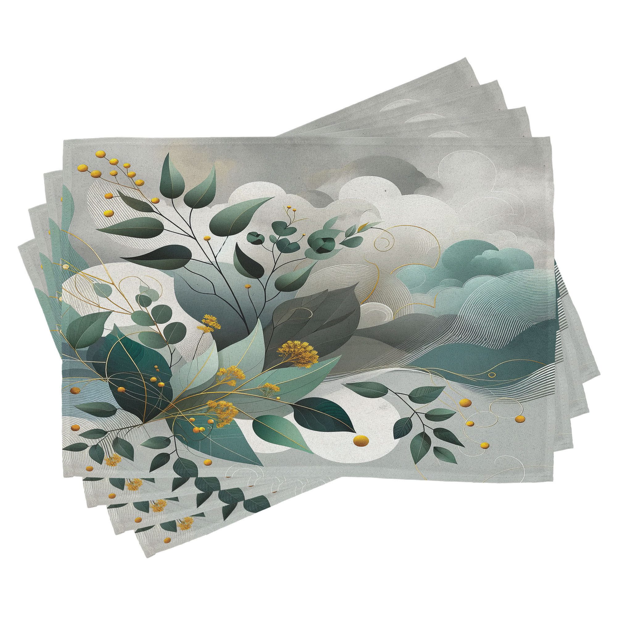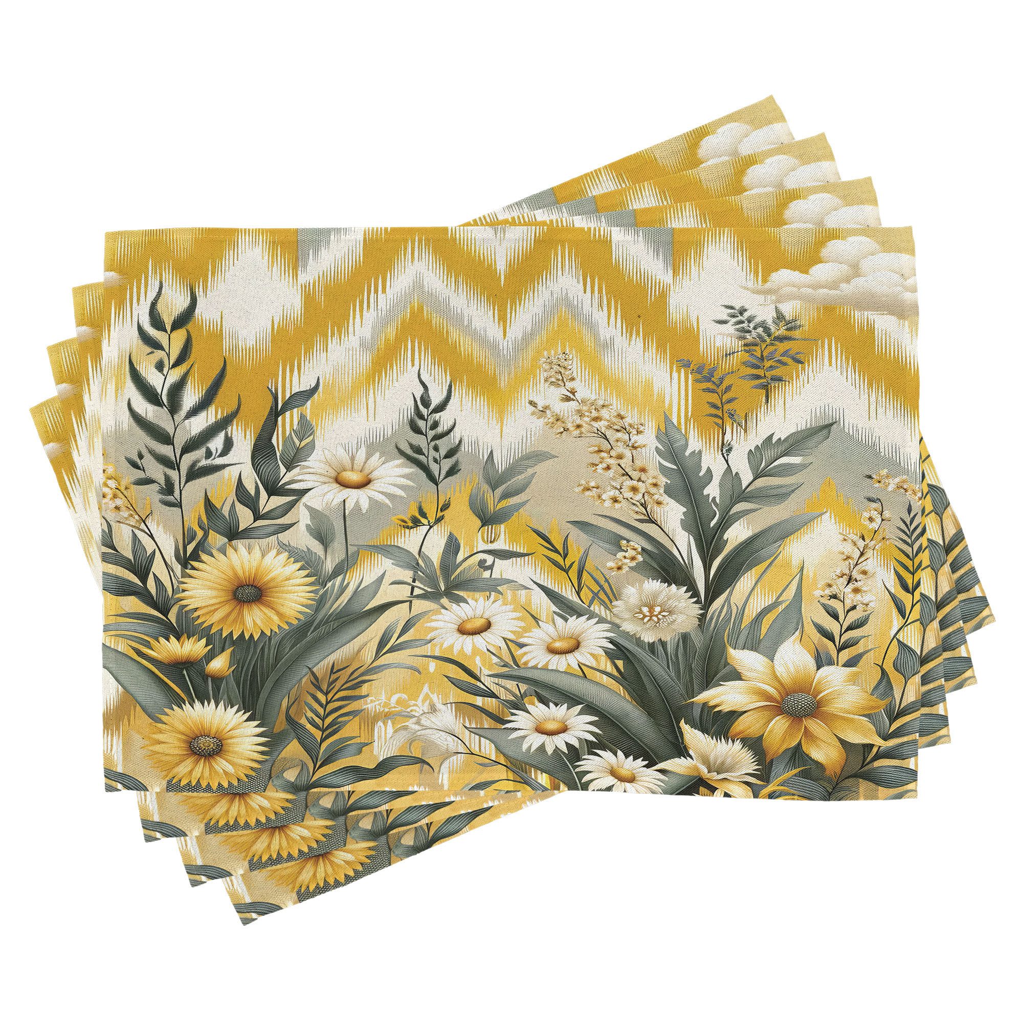 Ein vierteiliges Tischmattenset, je 30 cm lang und 45 cm breit. Mit handgenähten Kanten.