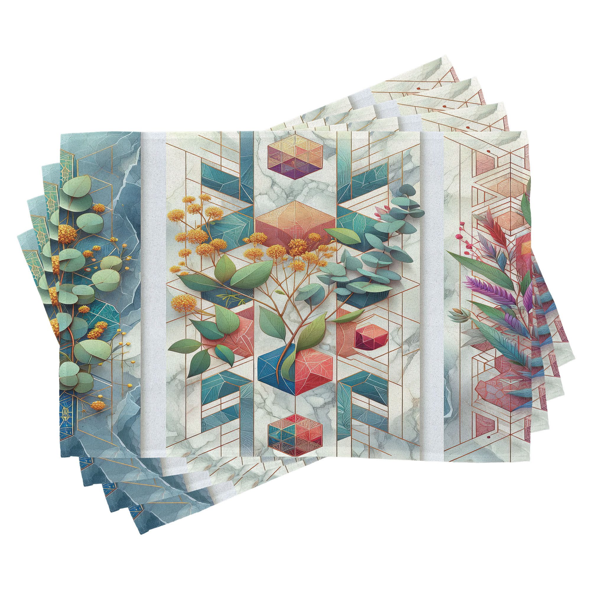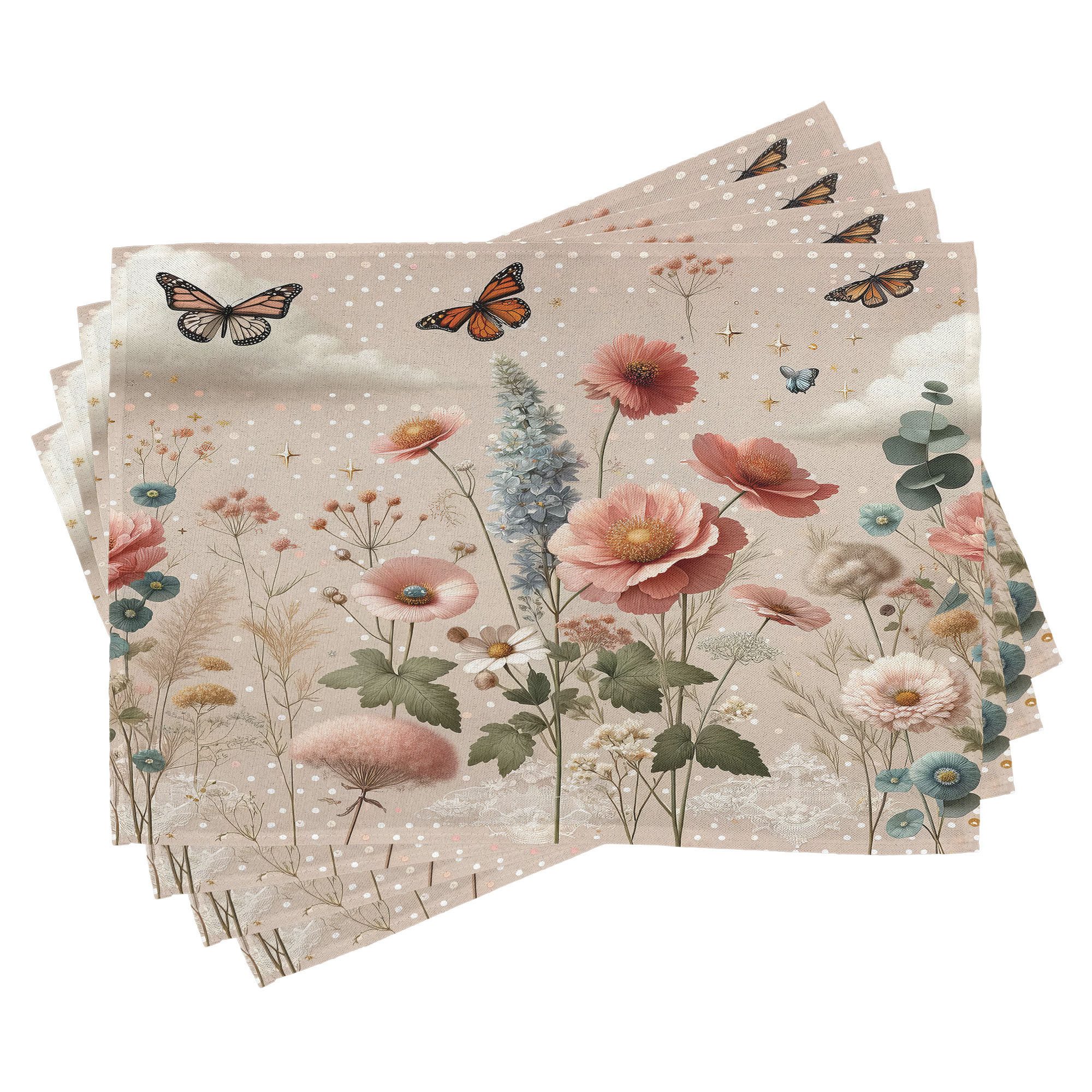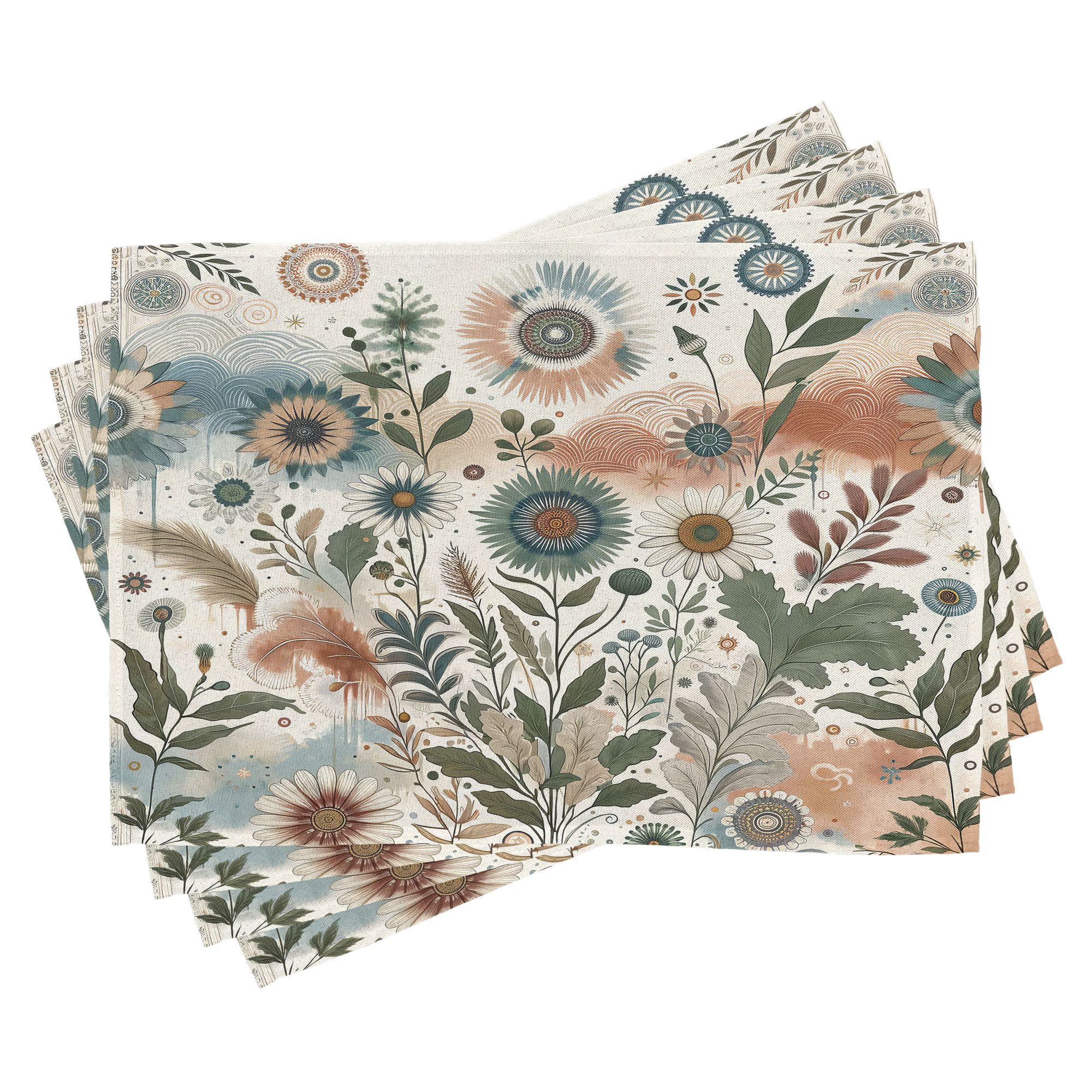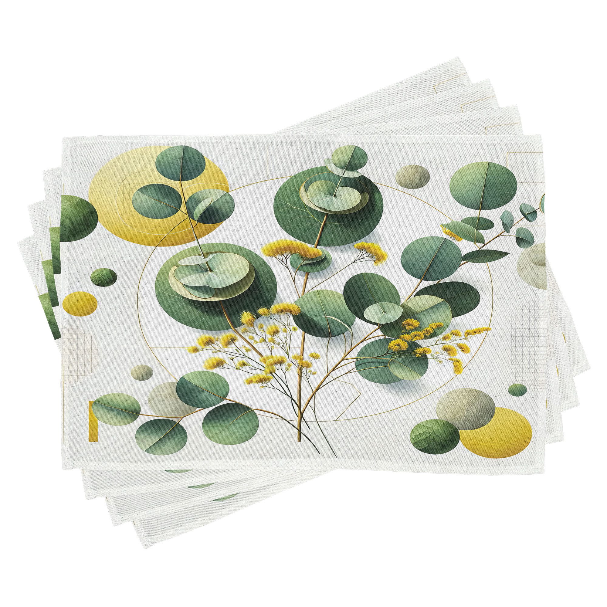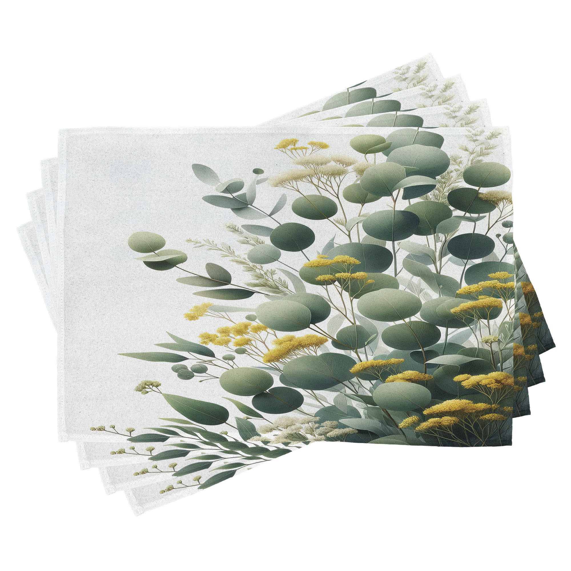 Ein vierteiliges Tischmattenset, je 30 cm lang und 45 cm breit. Mit handgenähten Kanten.