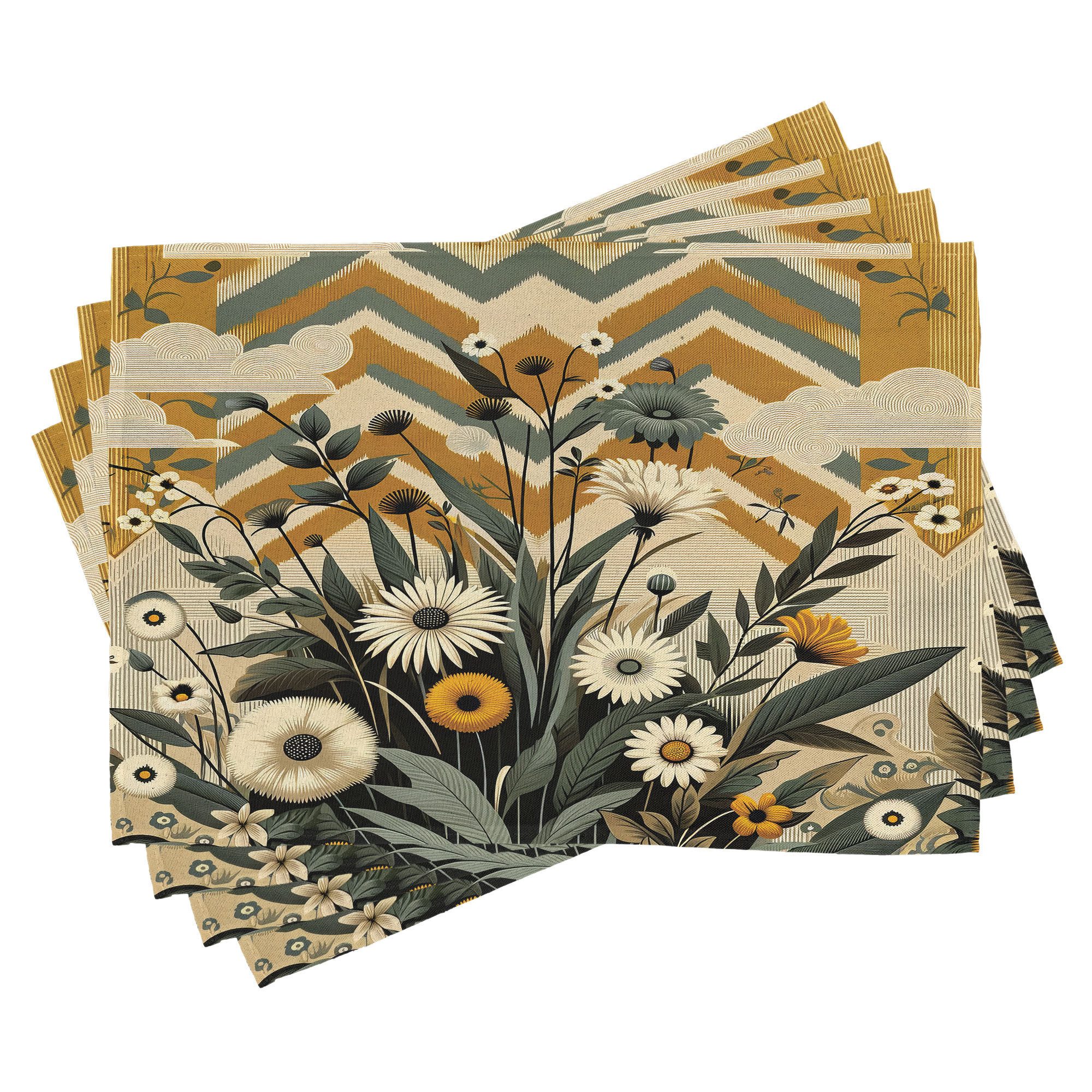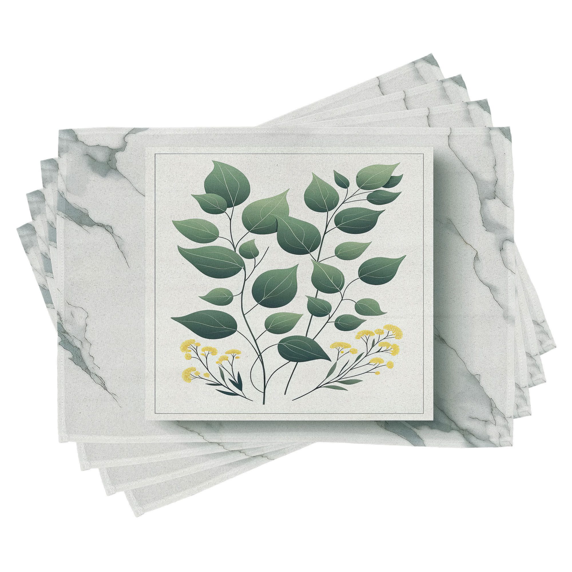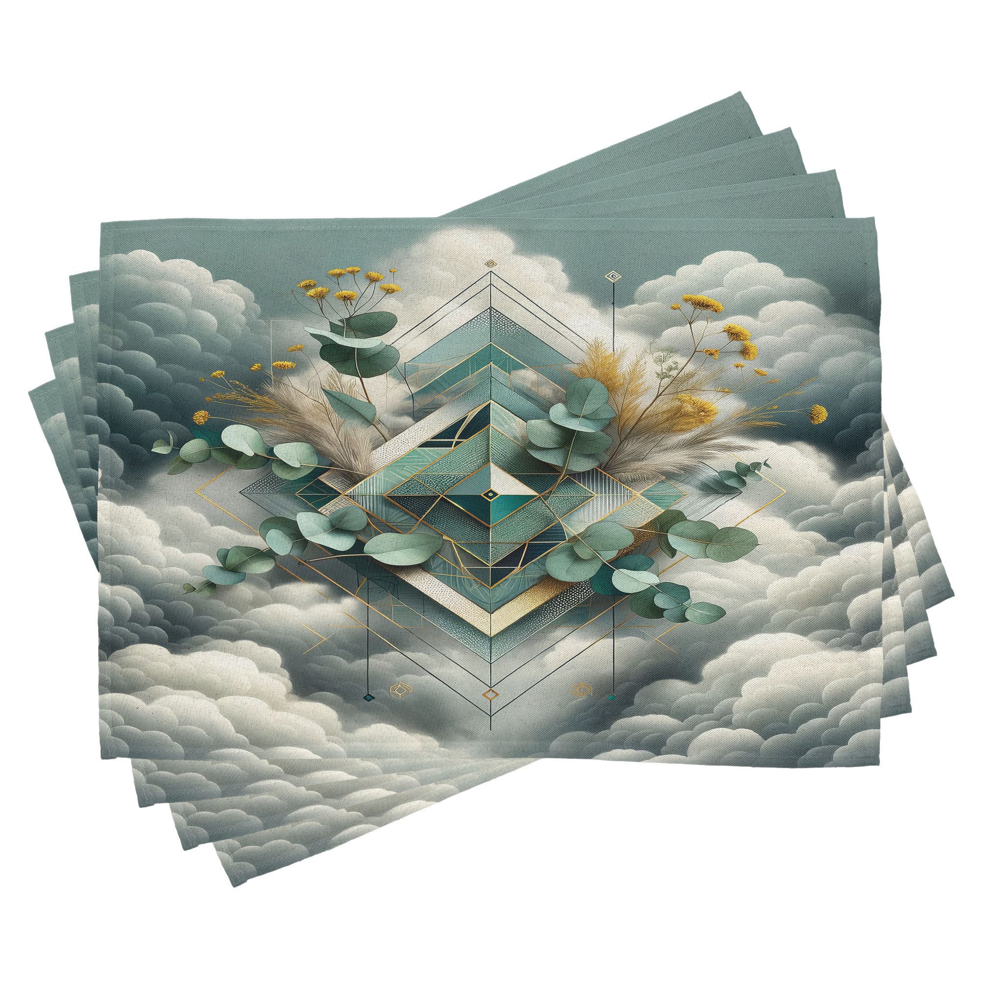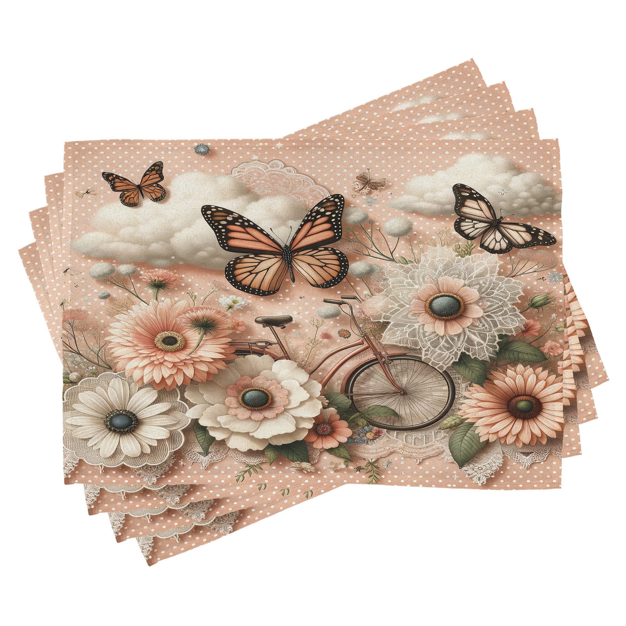 Ein vierteiliges Tischmattenset, je 30 cm lang und 45 cm breit. Mit handgenähten Kanten.