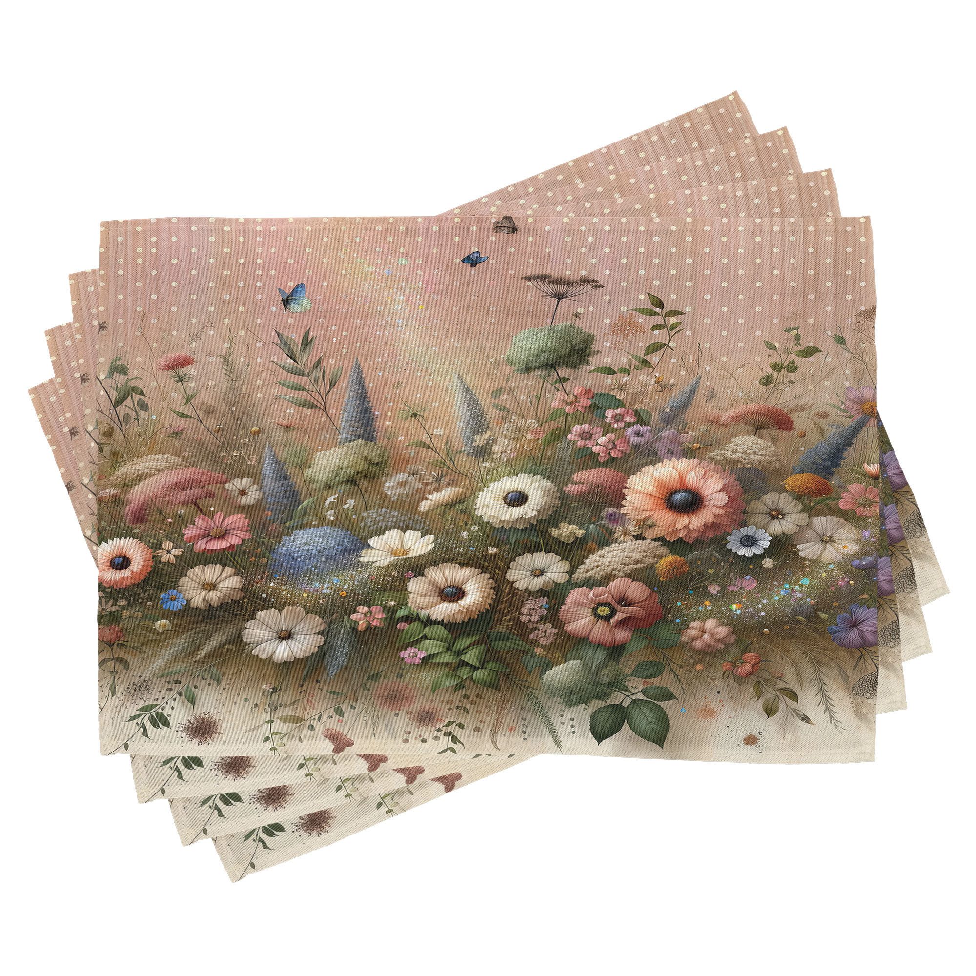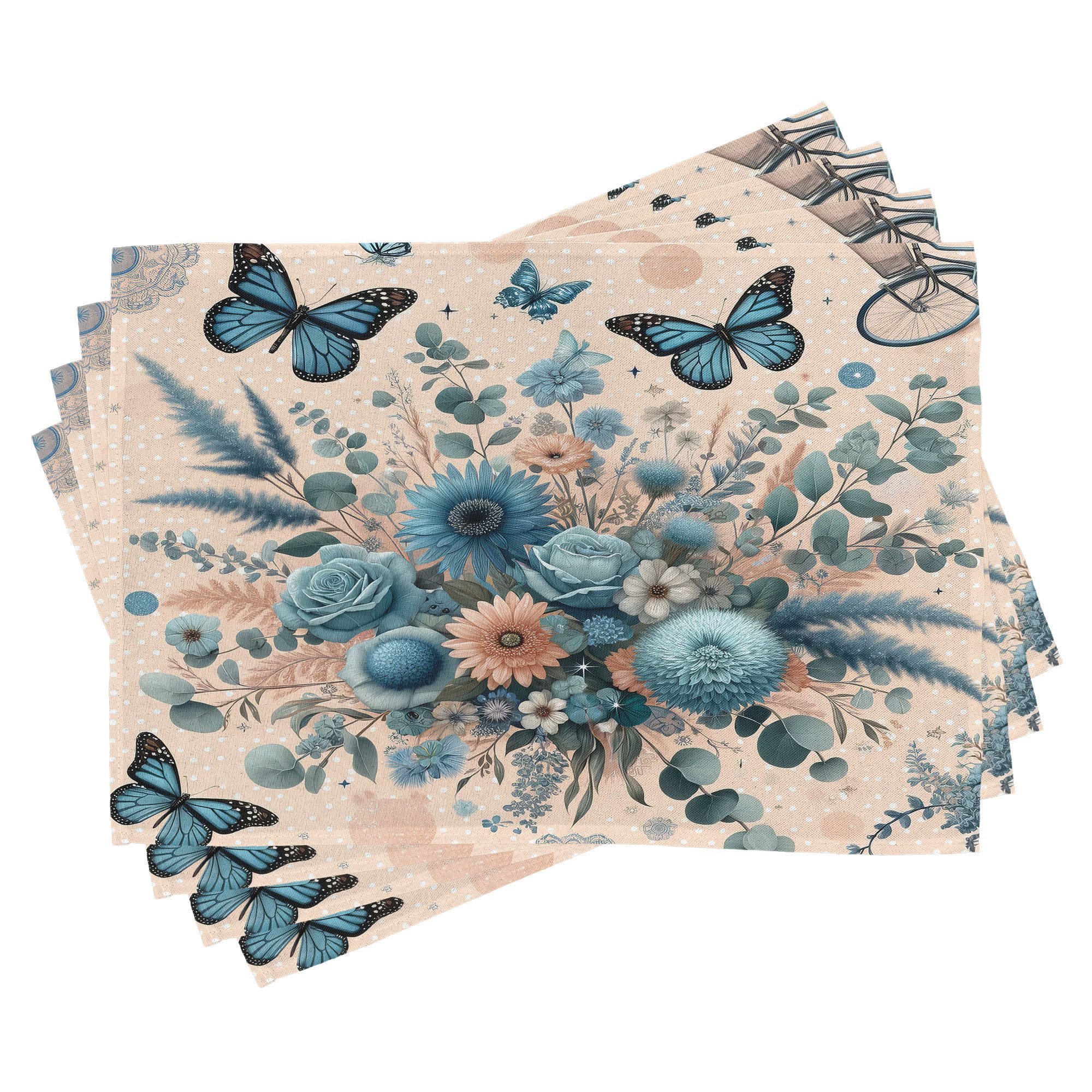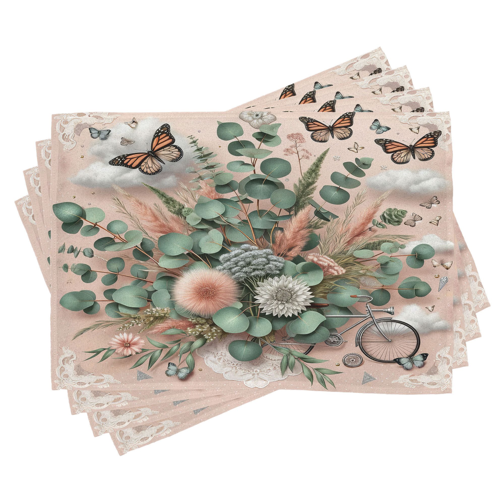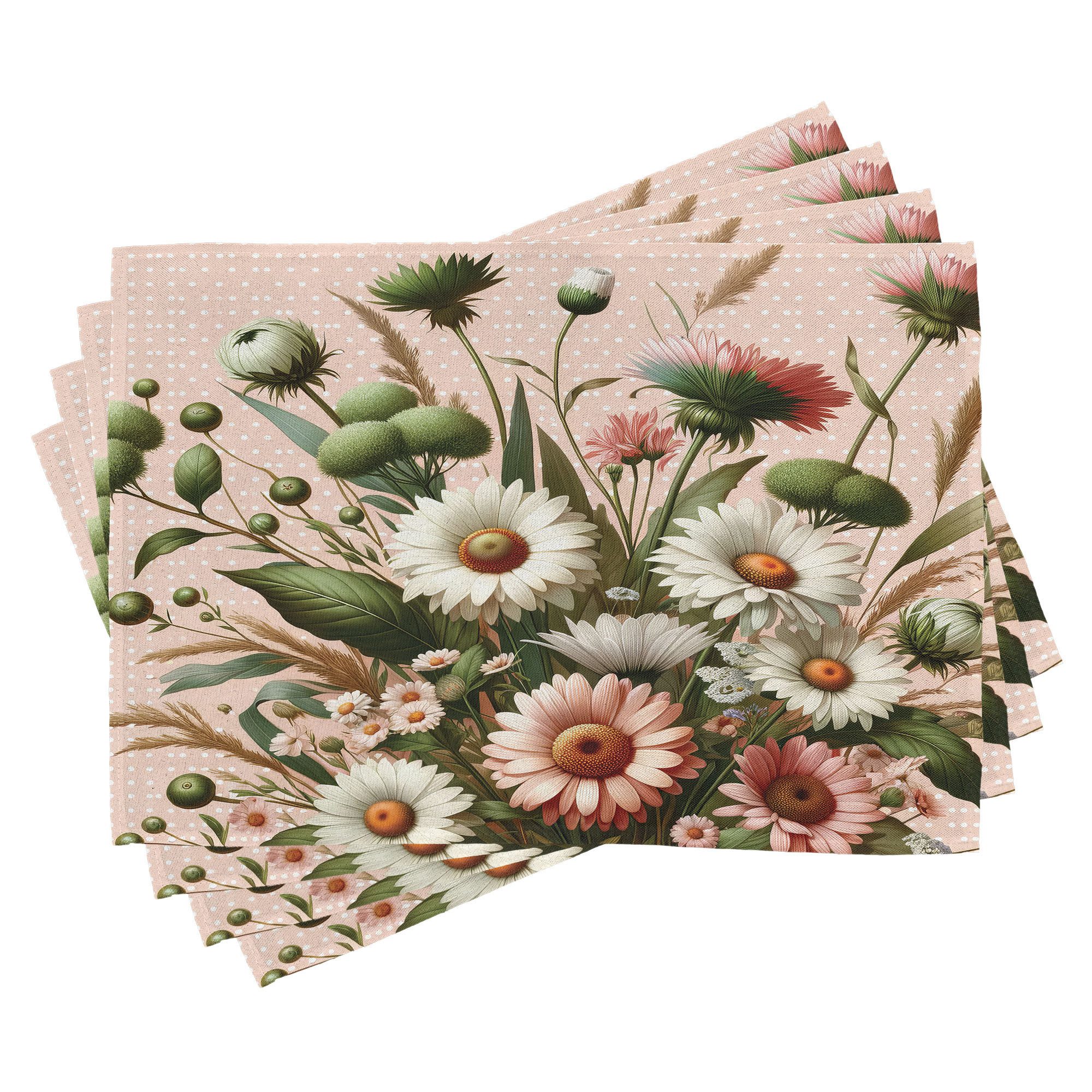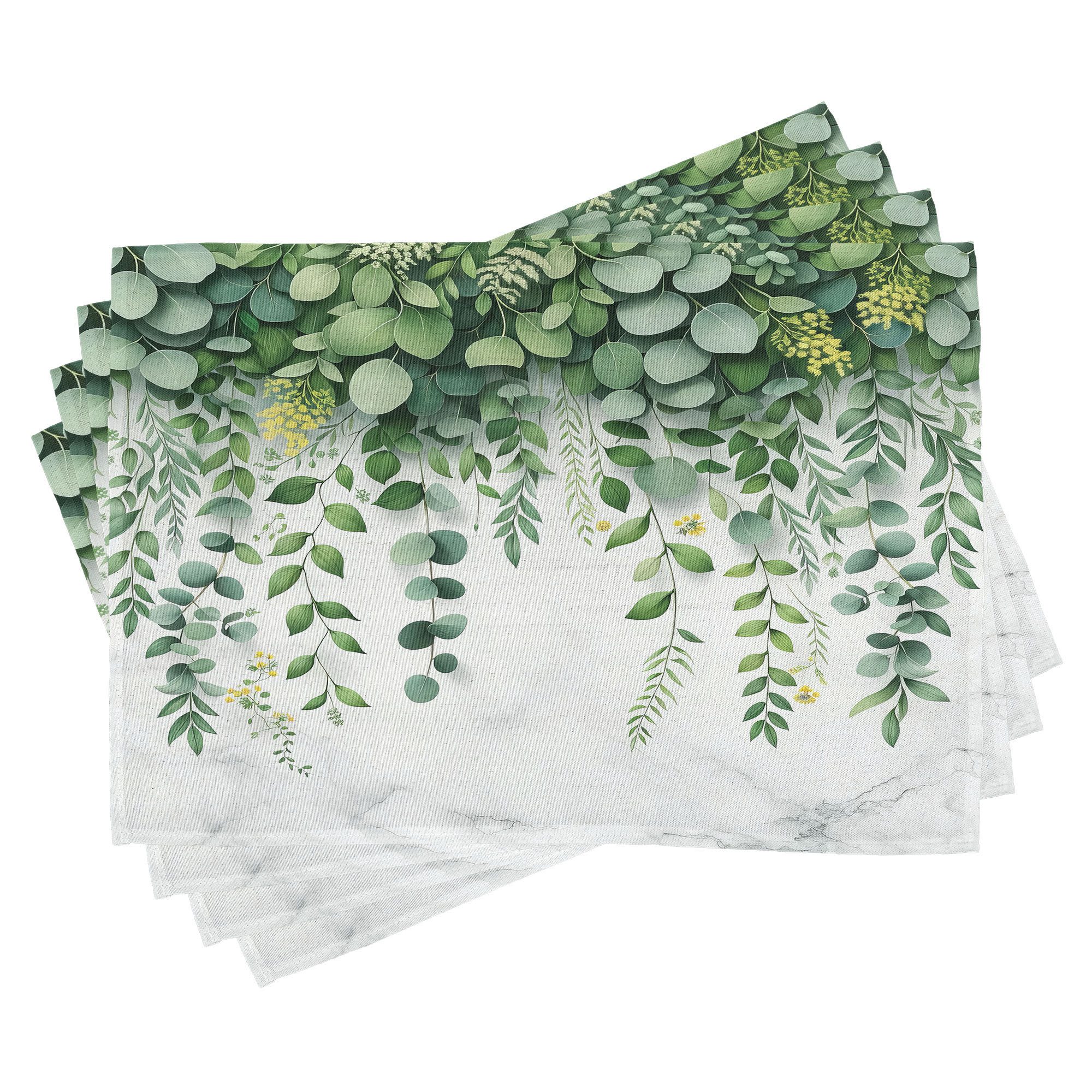 Ein vierteiliges Tischmattenset, je 30 cm lang und 45 cm breit. Mit handgenähten Kanten.