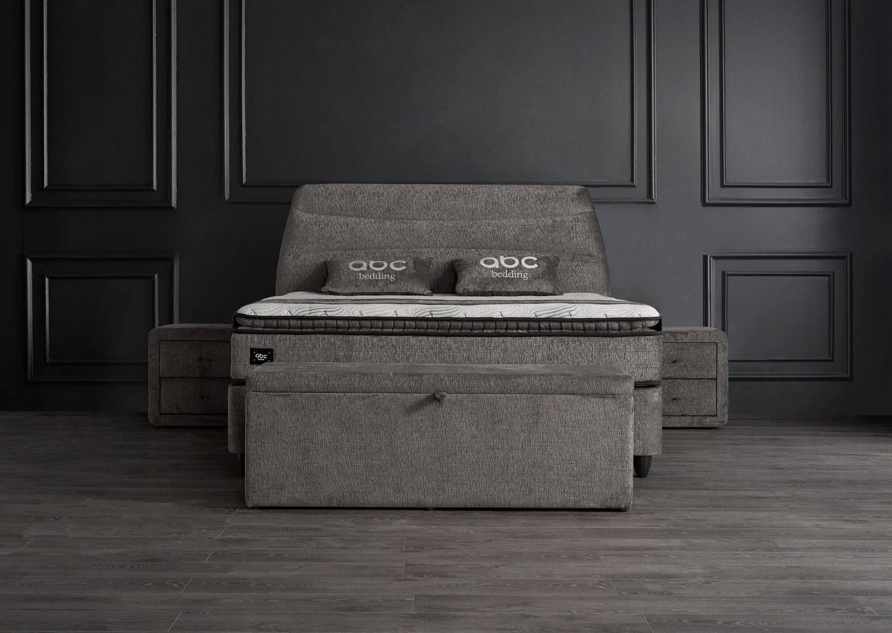 Das CARLOS Boxspringbett von ABC-Bedding verbindet modernes Design mit hoher Funktionalität und verwandelt Ihr Schlafzimmer in eine komfortable Schlafoase. Der mit grauem Stoff bezogene Rahmen verleiht dem Bett eine edle und zeitlose Optik, die sich harmonisch in verschiedene Einrichtungsstile einfügt. Das großzügige Schlafsystem mit einer ergonomischen Matratze und einem zusätzlichen Topper sorgt für höchsten Liegekomfort und unterstützt eine gesunde Schlafhaltung. Die perfekte Balance aus Stabilität und Weichheit macht dieses Komfortbett zur idealen Wahl für erholsame Nächte.
