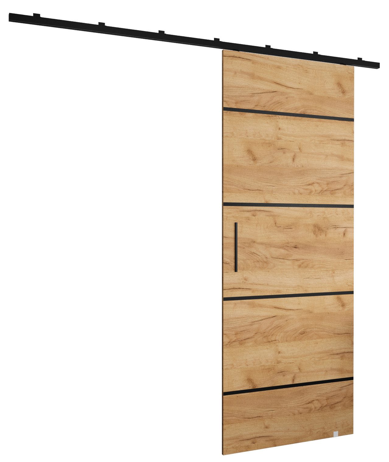 Technische Spezifikationen: Abmessungen der Schiebetür: Breite: 70-90 cm, Höhe: 204 cm. Abmessungen der Schiebetürschiene: Breite: 200 cm, Höhe: 12 cm. Gewicht des Produkts: 21 kg. Die Türen sind universell rechts/links einsetzbar und können selbst an der Wand oder Decke montiert werden.