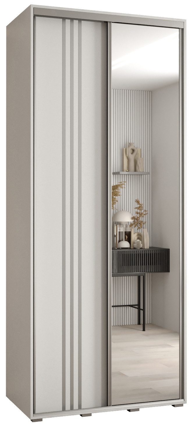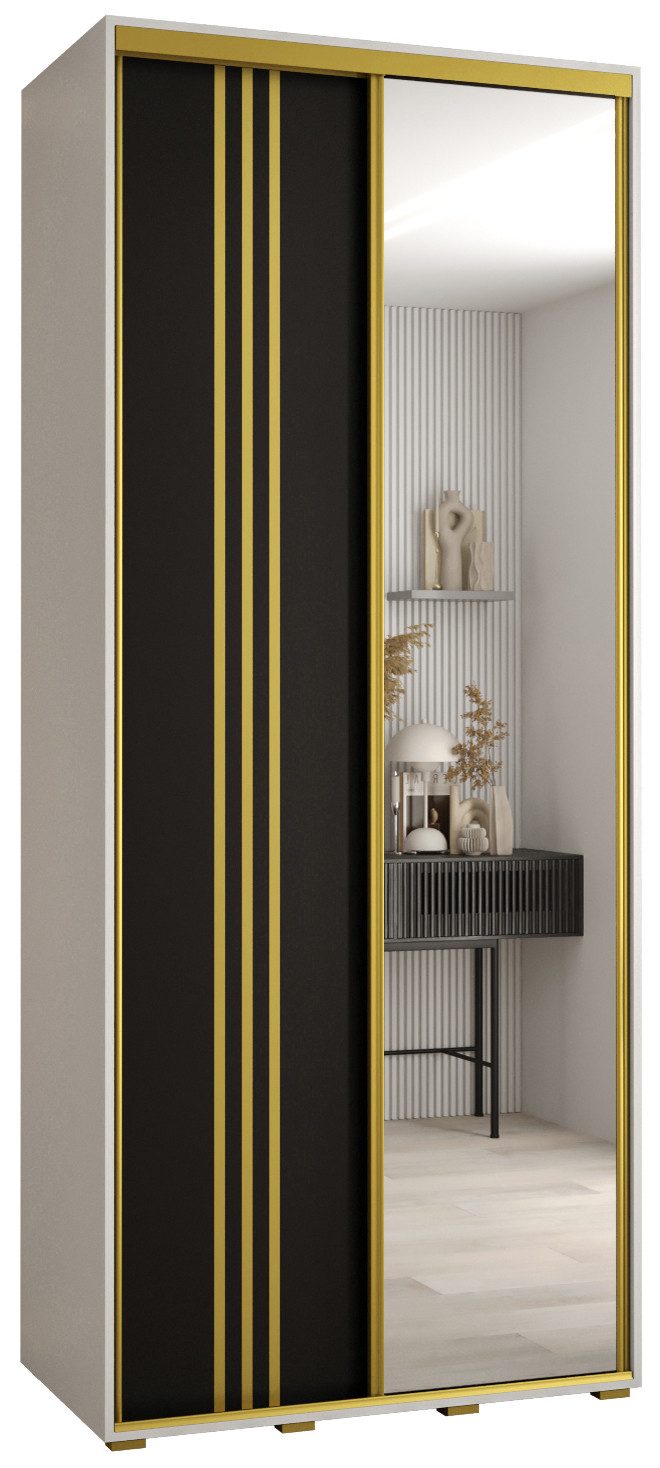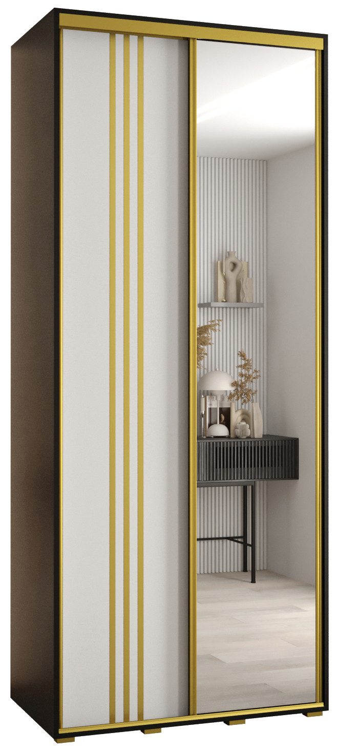 Technische Spezifikationen: Maße: Höhe: 235,2 cm, Breite: 100-200 cm, Tiefe: 45 cm. Die Stahlgriffe sind in drei Farben erhältlich: Schwarz, Gold und Silber. Im Set befinden sich die Staubschutzbürsten. Wahl der Innenausstattung beim Zusammenbau: Version 1 - ein langes Fach, eine Aufhängestange, Version 2 - zwei kurze Fächer, zwei Aufhängestangen.