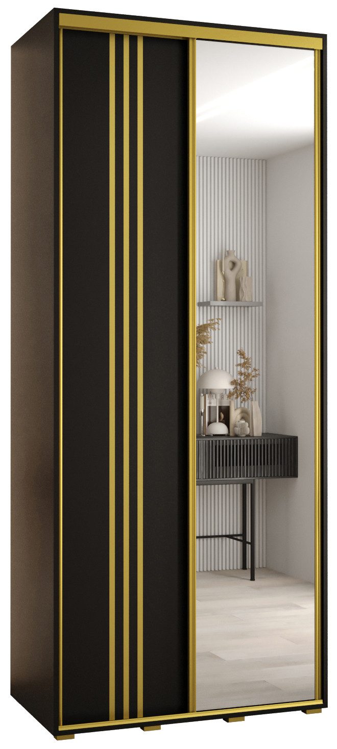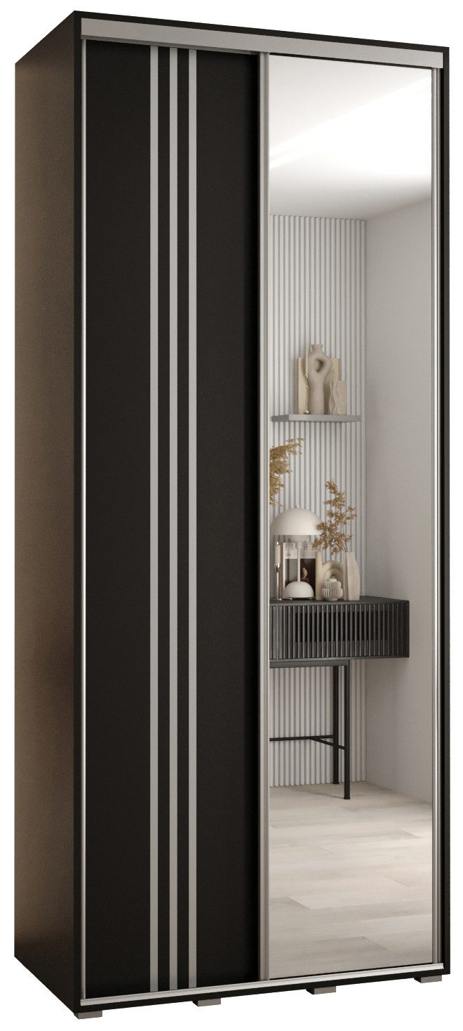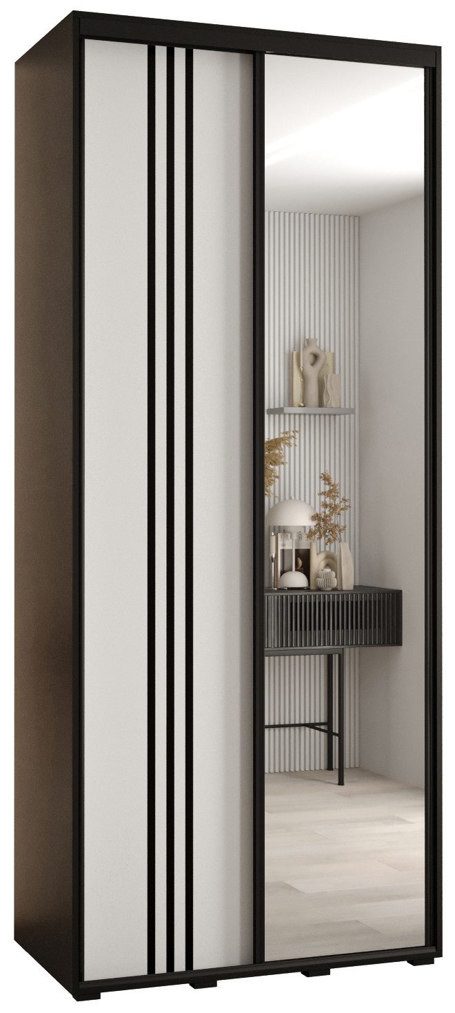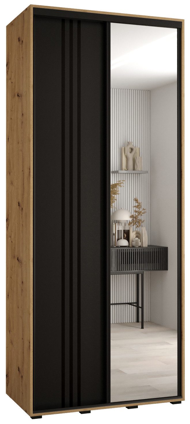 Technische Spezifikationen: Maße: Höhe: 235,2 cm, Breite: 100-200 cm, Tiefe: 45 cm. Die Stahlgriffe sind in drei Farben erhältlich: Schwarz, Gold und Silber. Im Set befinden sich die Staubschutzbürsten. Wahl der Innenausstattung beim Zusammenbau: Version 1 - ein langes Fach, eine Aufhängestange, Version 2 - zwei kurze Fächer, zwei Aufhängestangen.