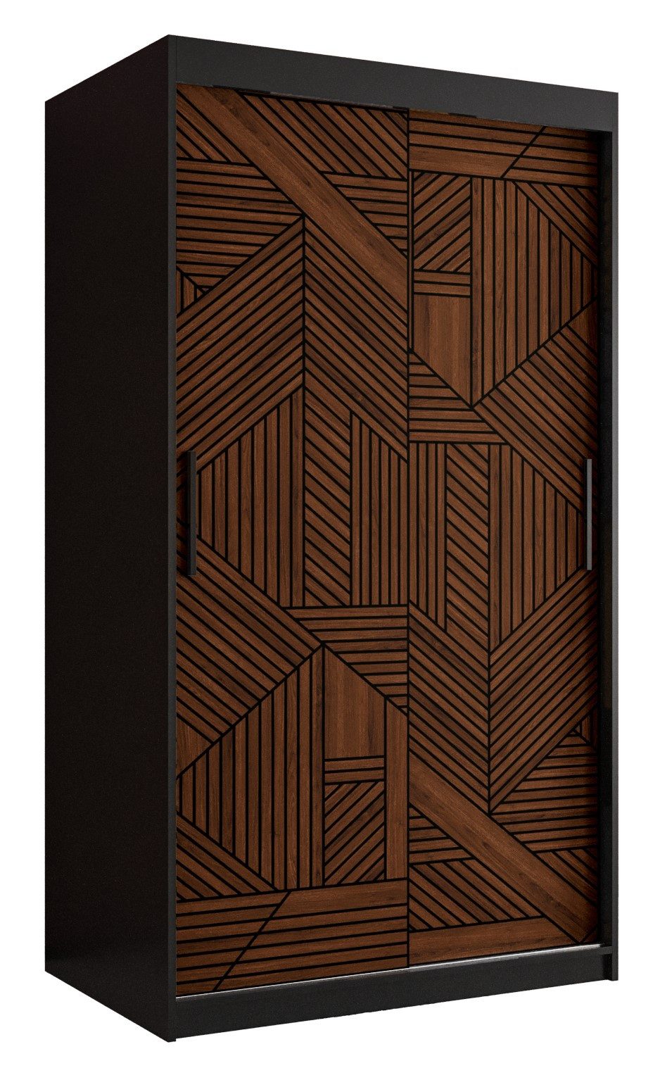 Modernes Design: Der Kleiderschrank MARSYLIA ist ein moderner Schiebetürenschrank, dessen einzigartiges Muster auf der Vorderseite dank der Drucktechnik einen unverwechselbaren Stil verleiht, der jedem Raum neues Leben einhaucht. Der solide Korpus aus schwarzer Laminatplatte sorgt für eine lange Lebensdauer des Schranks.