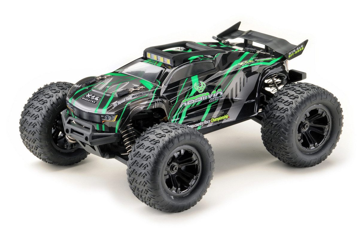 Lieferumfang | 1 Stück Mini AT Monster Truggy, 2,4 GHz Fernsteuerungsanlage, 1 Stück 7.4V Li-Ion Akku 1500mAh, 1 Stück USB-Ladekabel, Bedienungsanleitung, Du brauchst nur noch 2 AA Batterien für die Fernsteuerung um loszulegen (Bitte separat bestellen) |