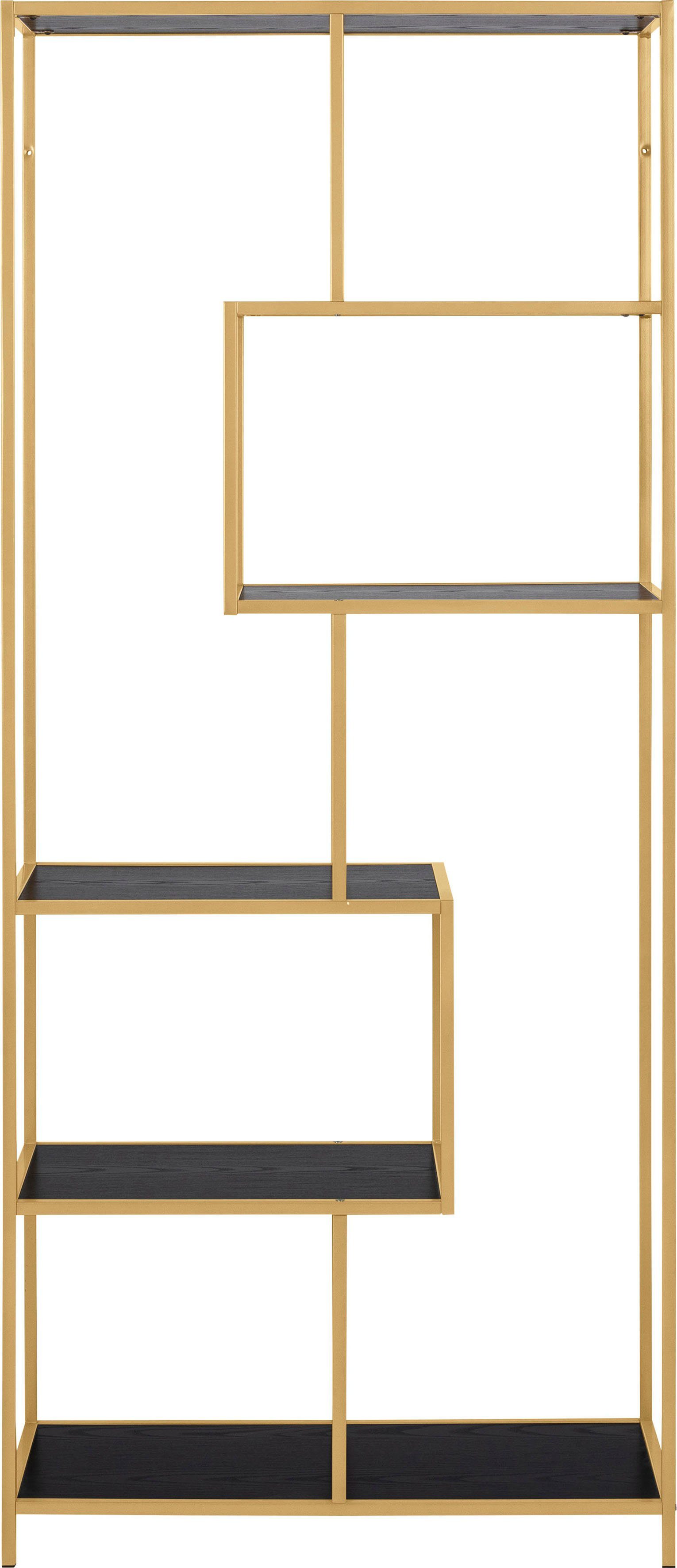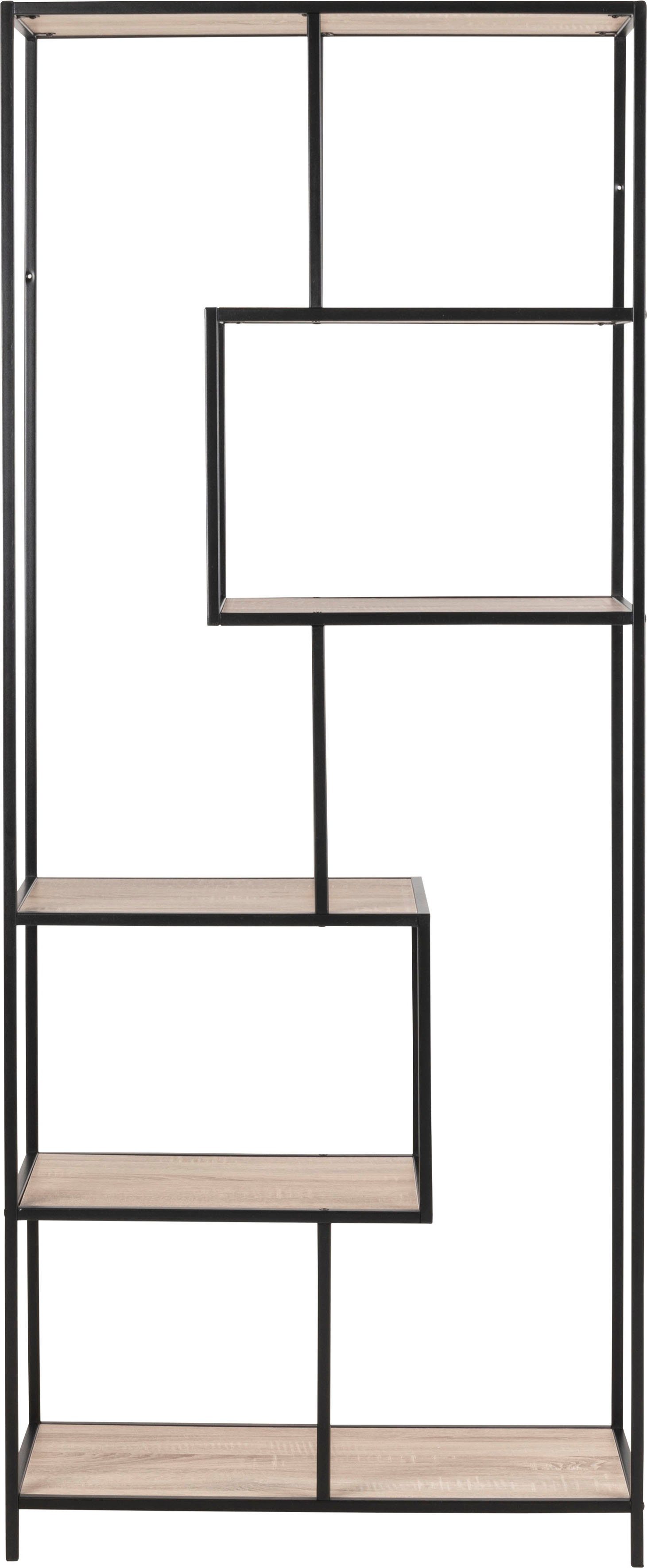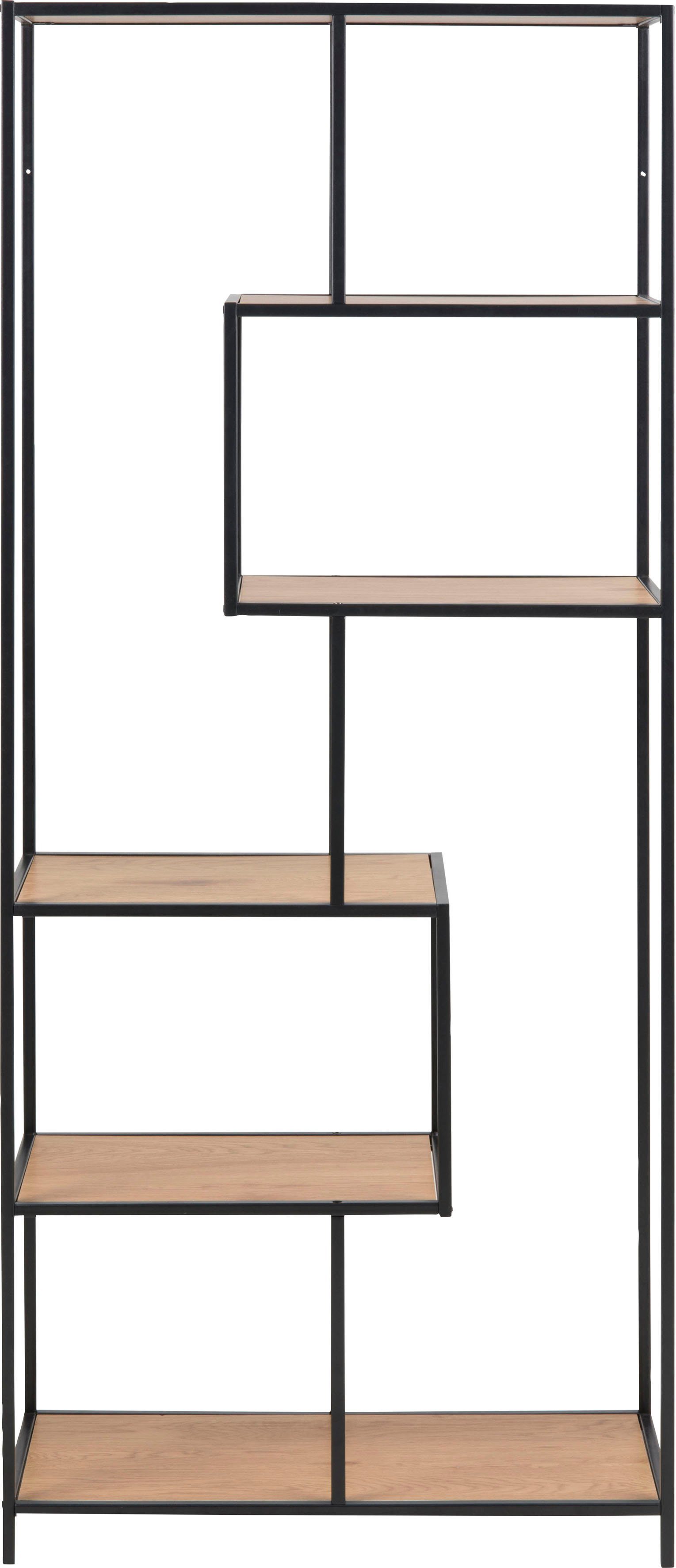 Modern designt, lässt sich das Bücherregal mit vielen Einrichtungsstilen harmonisch kombinieren. Um Akzente zu setzen, eignen sich beispielsweise farbige Vasen gut, die entweder mit Blumen oder auch mit bunten Lichterketten dekoriert werden können. Es gehört zur Stoke Serie, die weitere Artikel in diesem Stil enthält. So kannst du ein harmonisches Gesamtbild zaubern.