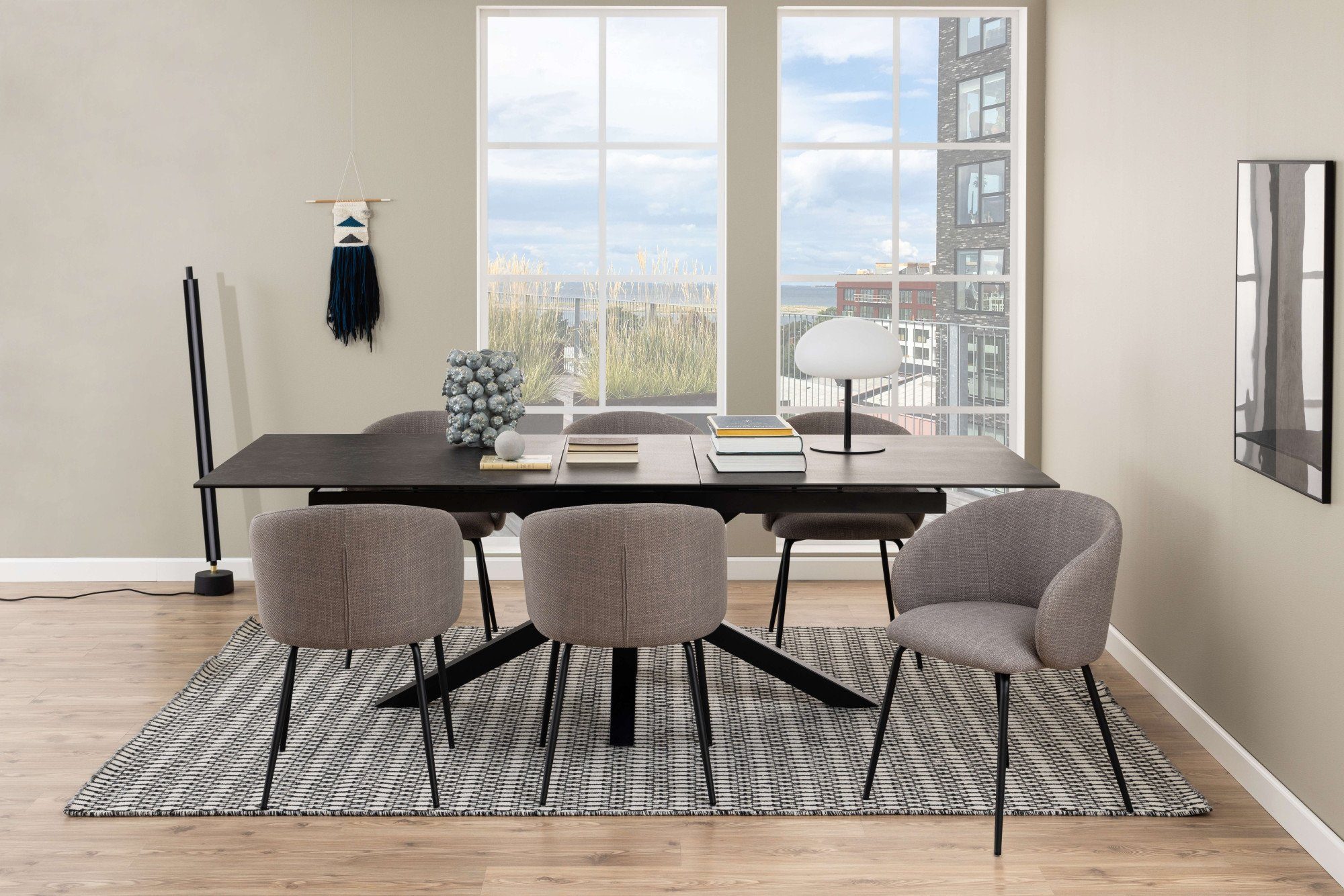 Ein Ort der Gastfreundschaft und des Beisammenseins — an diesem Esstisch »Heaven, Rechteckig Tischplatte aus rauer Keramik, Kreuzfuß, ausziehbar« von ACTONA GROUP steht einer gemütlichen Zeit nichts im Weg. Er ist ausziehbar. Dadurch hast du mit wenigen Handgriffen mehr Platz auf dem Tisch. Bei etwa 100 Kilogramm liegt die maximale Belastbarkeit.