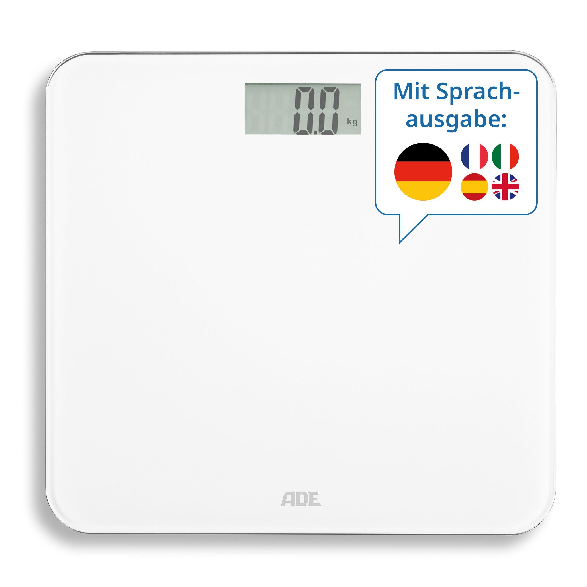 Ausstattung | Abschaltautomatik integrierte Sprachfunktion Step-on-Automatik Batteriewechselanzeige umstellbare Messeinheit Überlastungsanzeige Sicherheitsglas |