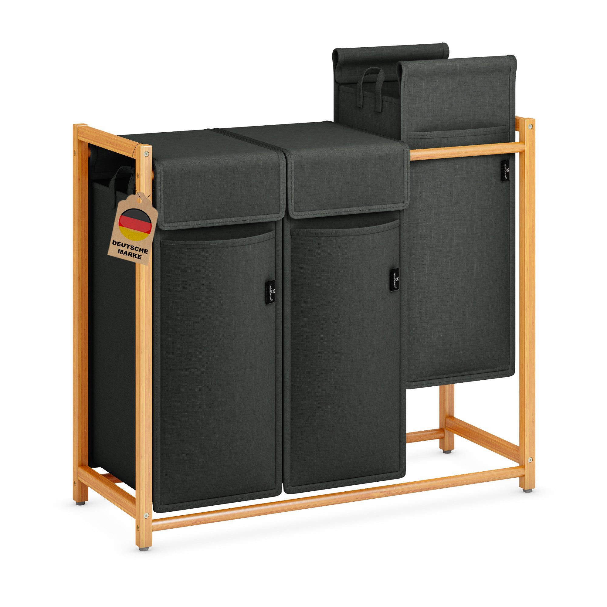Dreifachaufteilung: 150-Liter-Wäschesortierer ermöglicht eine einfache Vorsortierung von hellen, dunklen, farbigen Kleidungsstücken oder empfindlichen Waschgängen und spart Zeit.