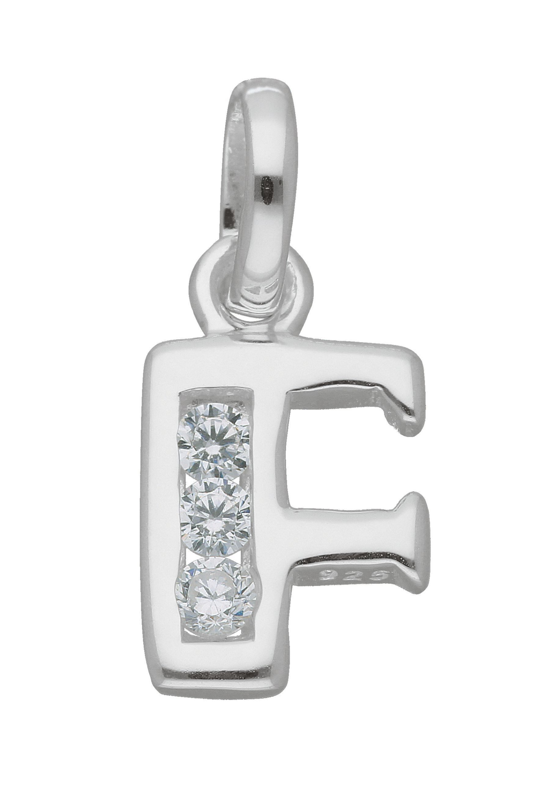 Adelia´s Namenskette Halskette - Namenskette mit Buchstabenanhänger F mit Zirkonia, Schmuckset mit bis 45 cm stufenlos verstellbarer 925 Silber Halskette