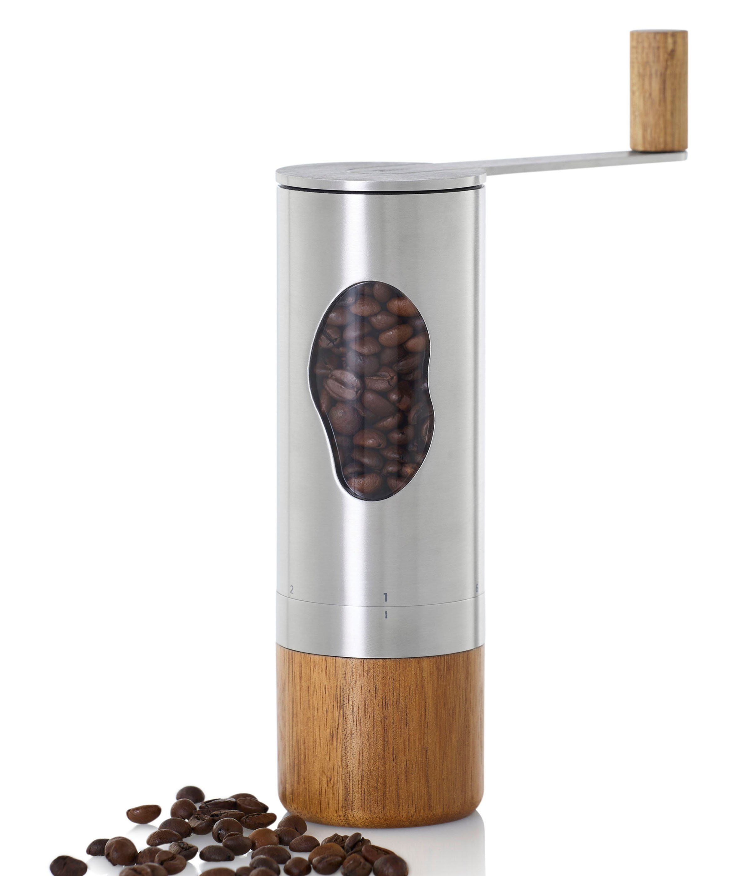 Damit das Mahlen der Lieblingssorten mühelos vor sich geht, hat Adhoc die Kaffeemühle MRS. BEAN entwickelt. Sie arbeitet manuell über eine kraftsparende Kurbel, hat aber ansonsten nichts mit Uromas altmodischer Handmühle zu tun, sondern kommt mit ihrem edlen Design in Edelstahl und Acryl absolut modern und sehr stylish daher.