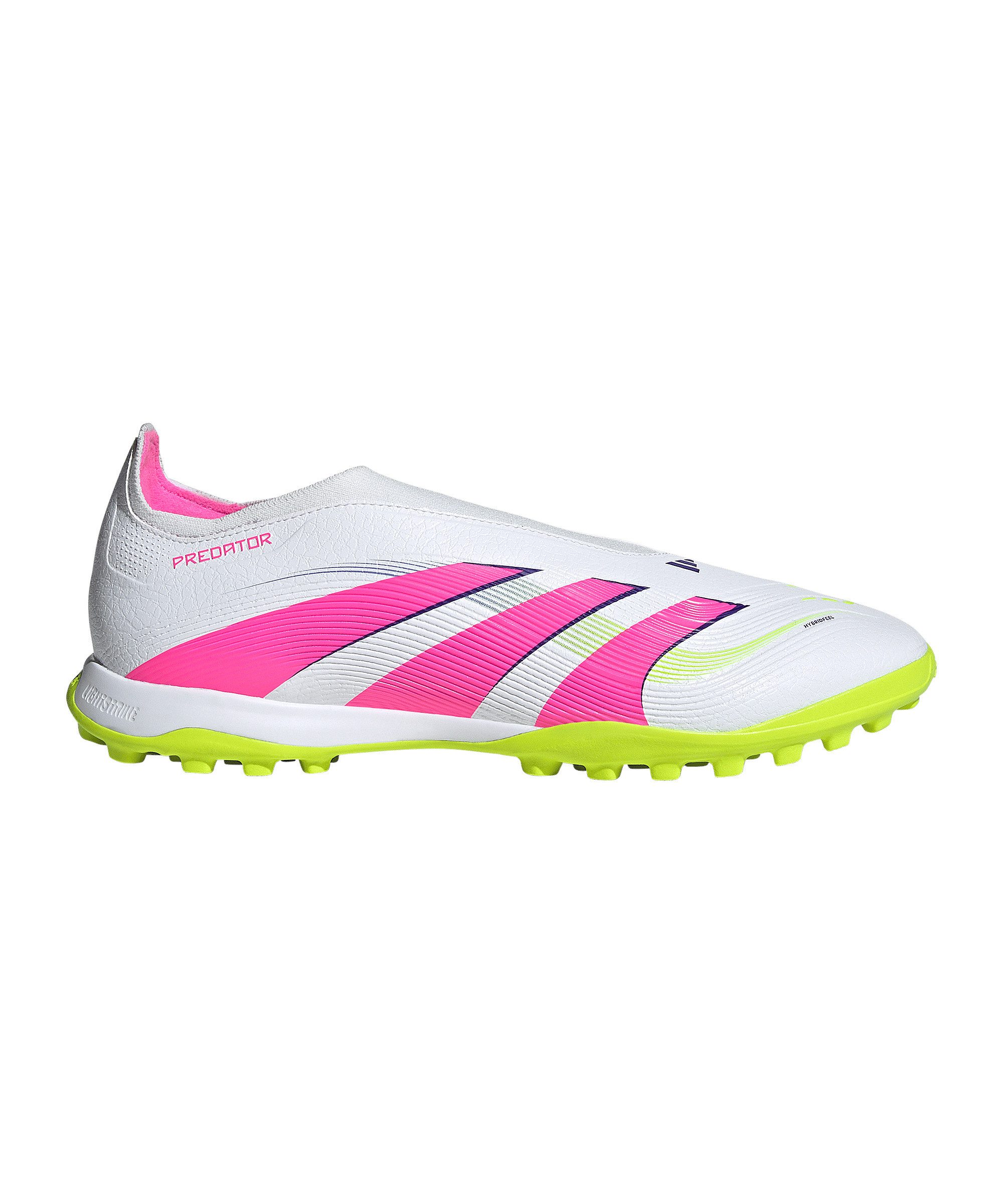 adidas Herren Fussballschuhe PREDATOR LEAGUE LL TF. Mit dem adidas Predator League weißt du schon beim Anpfiff, dass dein nächster Treffer nicht lange auf sich warten lässt. Durch das schnürsenkellose Design, das Hybridfeel Obermaterial mit Allover-3D-Struktur und die griffigen Strikescale Gummilamellen profitierst du bei jeder Torchance von optimaler Kontrolle und kannst den Ball trickreich versenken. Außerdem garantiert die genoppte Gummiaußensohle optimalen Grip auf kurzem Kunstrasen, Hart- und Aschenplätzen. Schnürfreier Strickkragen: Komfortabler Strickkragen mit TPU-Unterstützung für verbesserten Halt des Fußes bei höheren Geschwindigkeiten. Obere Details: beschichtetes Textilmaterial bietet ein strapazierfähiges Obermaterial für Komfort und Griffigket. Details zur Zunge: geschnürte, schwimmende Zunge für einfachen Einstieg und Verstellbarkeit. Strikescale: 3D texturiertes Obermaterial mit strategisch platzierten Strikefins, die den Ball für Spin und präzise Platzierung greifen. TURF: Gummilaufsohle, die für Rasenplätze entwickelt wurde (Kunstfaser mit kurzen Lamellen). Obermaterial: Sonstiges Material, Textil. Futter und Decksohle: Textil. Laufsohle: Sonstiges Material.