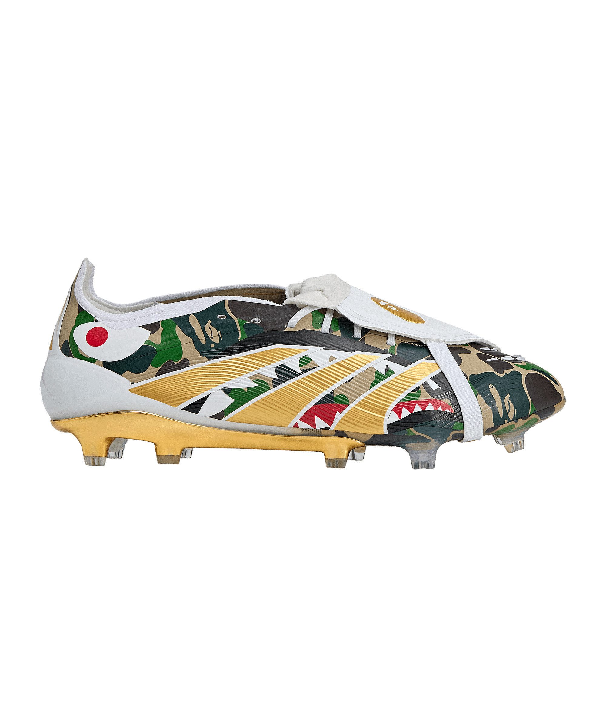 Mit den adidas x BAPE Predator Elite Fold Over Tongue FG Fuszlig;ballschuhen kannst du auf dem Platz richtig Gas geben und deine Gegner alt aussehen lassen. Diese adidas Nockenfuszlig;ballschuhe sind genau das Richtige fuuml;r dich, wenn du auf Rasenplauml;tzen dein Kouml;nnen unter Beweis stellen willst.