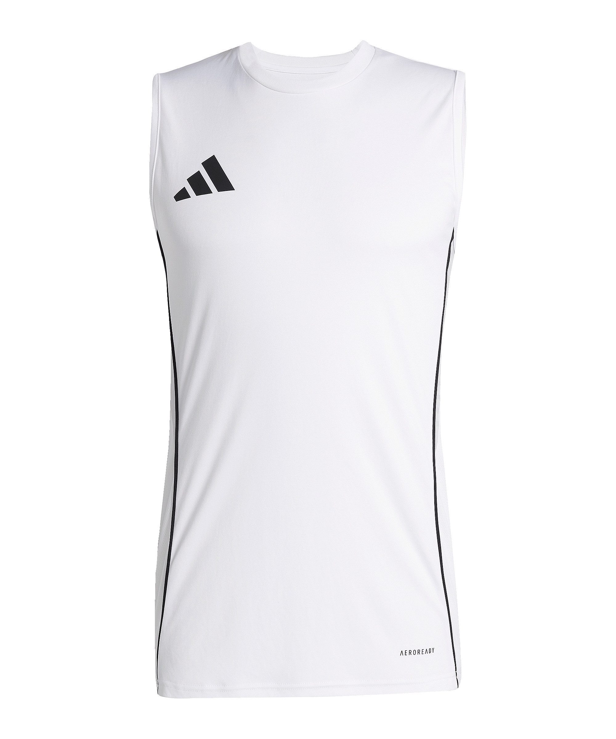 Das Premium Teamsport-Trainingsshirt fuuml;r Mauml;nner ohne Auml;rmel uuml;berzeugt mit hochkarauml;tiger Ausstattung. Du bekommst hier folgende Features und Merkmale: Mitdehnenden und schnell trocknenden Polyester-Strick mit adidas-AERORADY-Technology, einen sportlichen, leicht schmaleren Slim-Fit-Schnitt, den abgerundeten Saum hinten, Tiro-Signature-Design mit Kontrastlinie und Mesh-Einsauml;tzen seitlich und natuuml;rlich hohe Эко-товары durch Einsatz von recyceltem Polyester. Ein wertiges Performance-Detail: Das adidas 3-Stripes Logo ist als leichter und scheuerarmer Thermodruck umgesetzt.