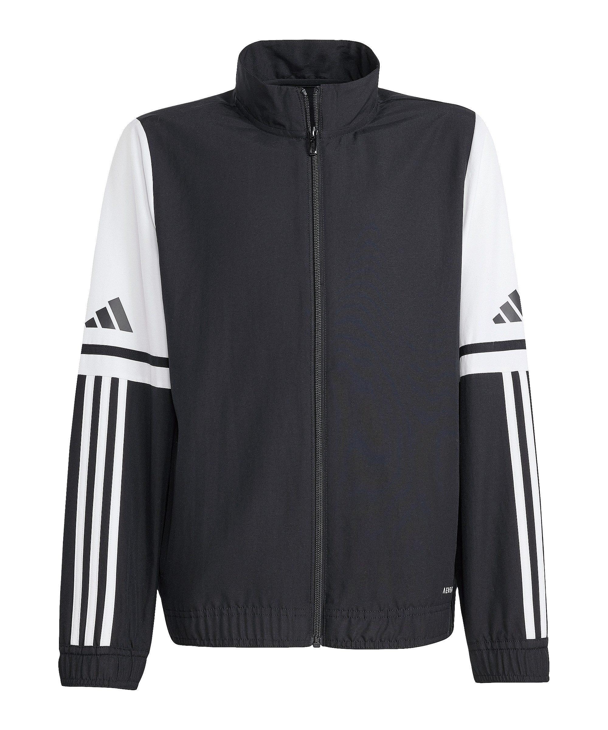 Typ: adidas Prauml;sentationsjacke / Teamsport-Oberteil / Fuszlig;ball-Trainingsbekleidung Grouml;szlig;en: fuuml;r Kinder Lieferumfang: 1 Stuuml;ck Kollektion: adidas Squadra 25 Farbe: Schwarz / Weiszlig; Nachbestellbar bis: Anfang 2028 (Angabe von adidas)