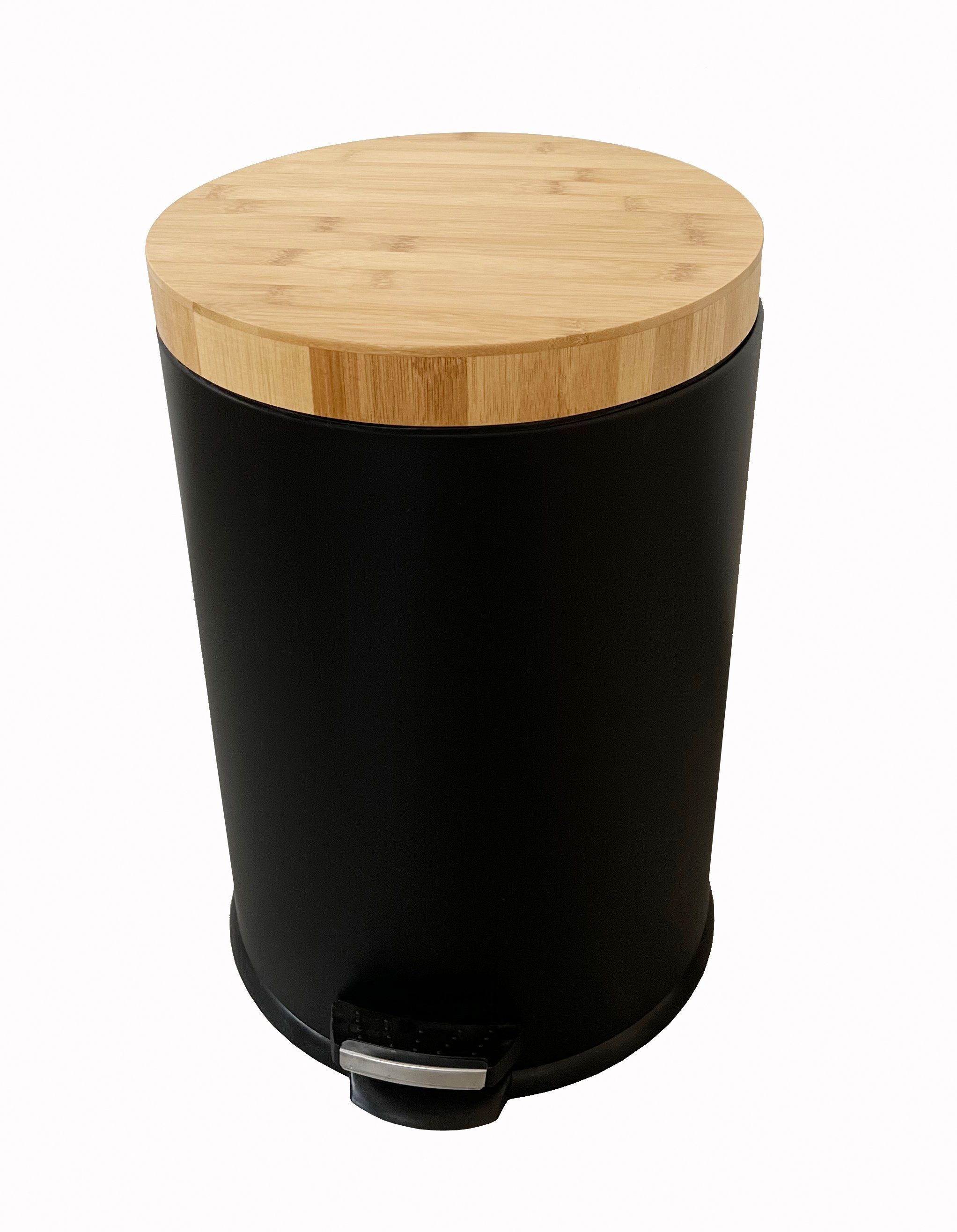 ELEGANTE ABFALLTRETEIMER aus METALL mit BAMBUS DECKEL, IDEAL als MÜLLEIMER für BAD, WC, KÜCHE, BÜRO