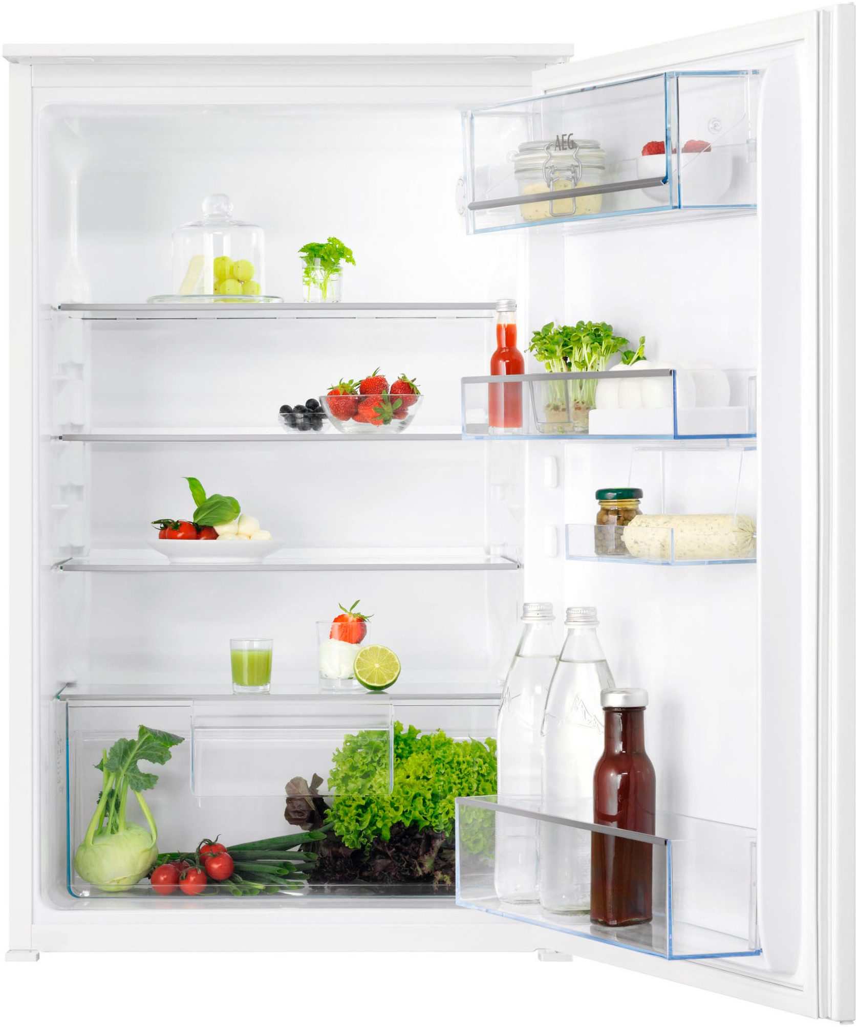 Der Einbaukühlschrank »TSK5O881ES« von AEG hat eine hohe Funktionalität und ist integrierbar. Bei einem Kühlvolumen von 142 l betragen die Maße des Modells 54,8 x 87,3 x 54,9 cm (B/H/T). Das Modell arbeitet mit einem Betriebsgeräusch von 36 dB. Eine Gemüseschublade steht zur Verfügung, um den Einkauf zu verstauen. Auf vier Ablageflächen aus Sicherheitsglas ist im Einbaukühlschrank genug Raum für Lebensmittel. Schnell griffbereit sind Lebensmittel in den vier Türablagen. Dank der LED-Innenbeleuchtung findet man sofort, was man sucht. Der »TSK5O881ES« von AEG ist ein Einbaukühlschrank, der mit seinen Features überzeugt und ausreichend Platz für Lebensmittel aller Art bietet.