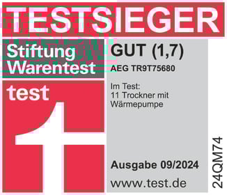 Der AEG TR9T75680 erzielt im Vergleichstest des Magazins „test“ der „Stiftung Warentest“ mit 17 weiteren Wäschetrocknern das Gesamtergebnis „GUT (1,7)“. Das Gerät trocknet in allen Programmen sehr zuverlässig und schnell. Es ist einfach zu bedienen und zu reinigen sowie zu be- und entladen. Es verbraucht wenig Strom, arbeitet leise und die Klimabelastung durch das Kältemittel ist sehr gering. Außerdem ist es sicher und „gut“ verarbeitet. Insgesamt ist das Modell der „TESTSIEGER“.