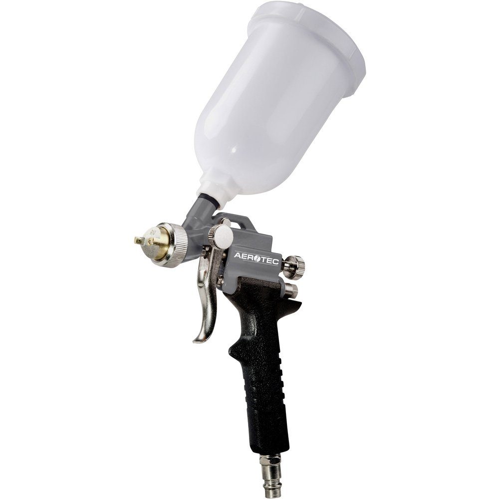 Die Pistole wird mit einem Adapterstück geliefert damit man handelsübliche Airbrushgläser anstecken kann · Ideal für Feinlackierungen - Spotrepair und Modellbau · Nebelreduzierte Spritzpistole mit Luftmengenregulierung · Pistole mit montierter 0,5mm Düse · 250 ml Kunststoffbecher mit Schraubdeckel · Geringes Gewicht mit 322 Gramm · Lackierdruck: 1,5 - max. 3 bar · Luftverbrauch: 60 L /min