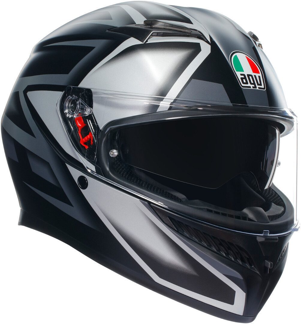 Eine AGV-Ikone, die auf Perfektion ausgelegt ist. Der K3 ist der Integralhelm für den Straßeneinsatz von AGV, der alle Eigenschaften eines vielseitigen und sicheren Helms auf eine neue Stufe hebt. Sicherheit für alle auf höchstem Niveau: Die Schale aus hochfestem Thermoplast, das EPS mit hoher Dichte und Details wie das Schlüsselbeinschutzprofil sowie das Schutzvisier ermöglichen es dem K3, die strenge Zulassungsnorm ECE 22.06 zu erfüllen. Dank des AGV Extreme Safety-Designprotokolls übertrifft der K3 die Anforderungen der neuesten internationalen Normen bei Weitem. Vielseitigkeit ist seine Stärke. Der K3 ist so konzipiert, dass er in jeder Situation sein Bestes gibt. Die integrierte Sonnenblende, die sich auch mit Handschuhen bequem bedienen lässt, hilft bei übermäßiger Helligkeit und blockiert in Ruheposition nicht die Frontlüftung. Das Pinlock -Beschlagschutzsystem Max Vision garantiert maximale Sicht auch an nassen und kalten Tagen, wenn der Temperaturunterschied zwischen der Umgebung und dem Inneren des Helms ein gefährliches Beschlagen des Visiers verursachen könnte. Nicht beim K3. Das Ultravision Visier bietet außerdem ein horizontales Sichtfeld von 190°, sodass man Hindernisse, die Straße und alles, was vor einem liegt, schneller und besser sehen kann. Der K3 ist für die Installation von Kommunikationssystemen vorbereitet. Das Eyewear Ready-Innendesign ermöglicht es, während der Fahrt bequem eine Brille oder Sonnenbrille zu tragen. Der Komfort steigert die Leistung. Das aerodynamische Profil des K3 ist so ausgelegt, dass bei einer Fahrtgeschwindigkeit von 130 km/h ein dynamisches Gewicht von Null erreicht wird. Das bedeutet weniger Gewicht und eine geringere Belastung der Nackenmuskulatur, sodass man sich voll auf das Fahren konzentrieren kann. Die Innenausstattung aus 2DRY-Material mit schneller Schweiß- und Feuchtigkeitsaufnahme kann individuell angepasst werden, um die Passform und den Tragekomfort zu optimieren. Die Belüftung ist dank der präzisen und auch mit Handschuhen leicht zu bedienenden Lufteinlässen an Front und Kinn maximal effizient. Das praktische mikrometrische Verschlusssystem aus Stahl ermöglicht ein schnelles und sicheres Спрятать des Helms.