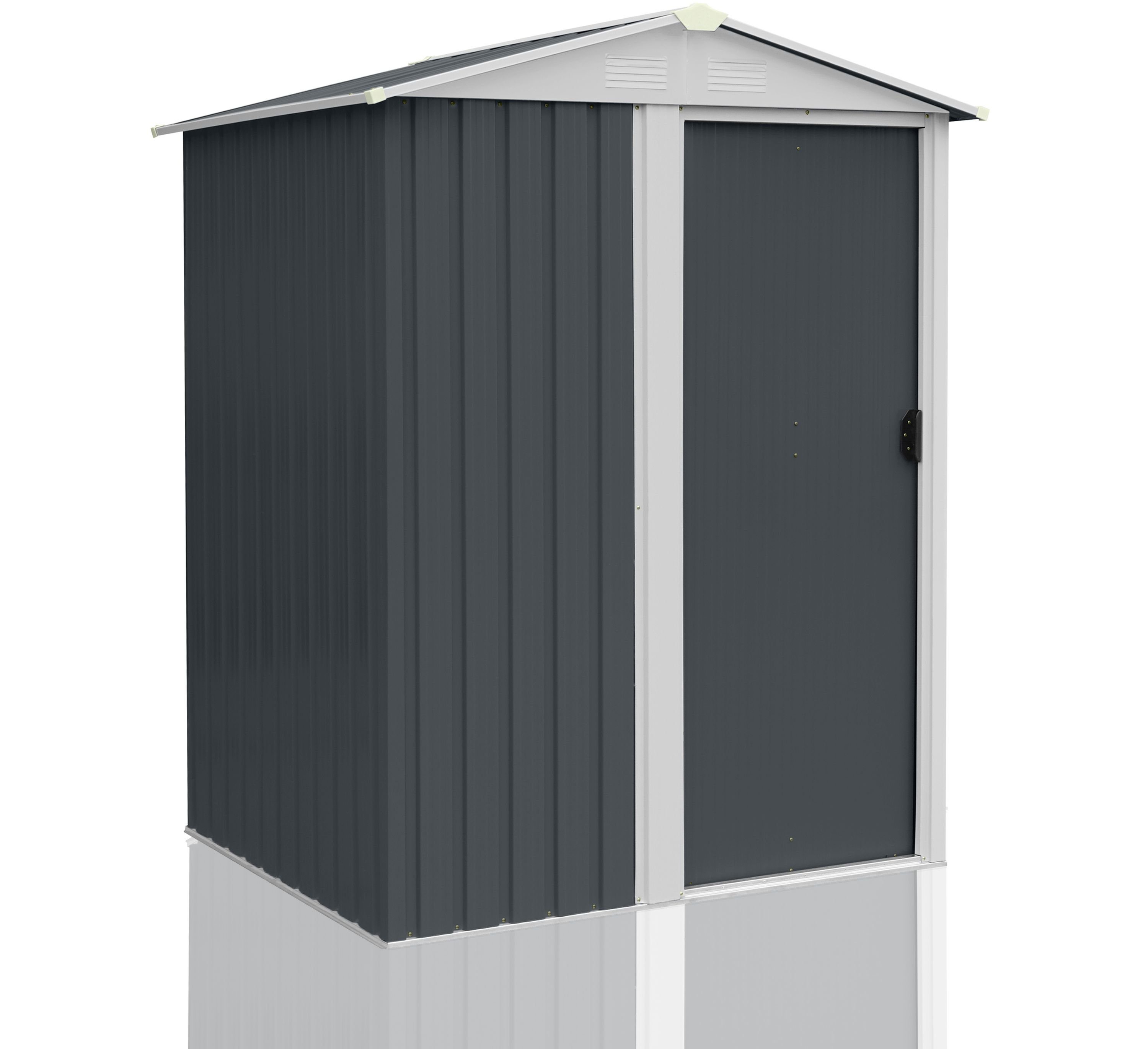 Dank der verzinkten Stahlelemente ist dieser Metallgeräteschuppen wetterfest und langfristig vor Kratzern und Rost geschützt. Er verfügt außerdem über zwei Belüftungsöffnungen, die die Luftzirkulation gewährleisten und so die Bildung von Feuchtigkeit, Schimmel und unangenehmen Gerüchen verhindern.
