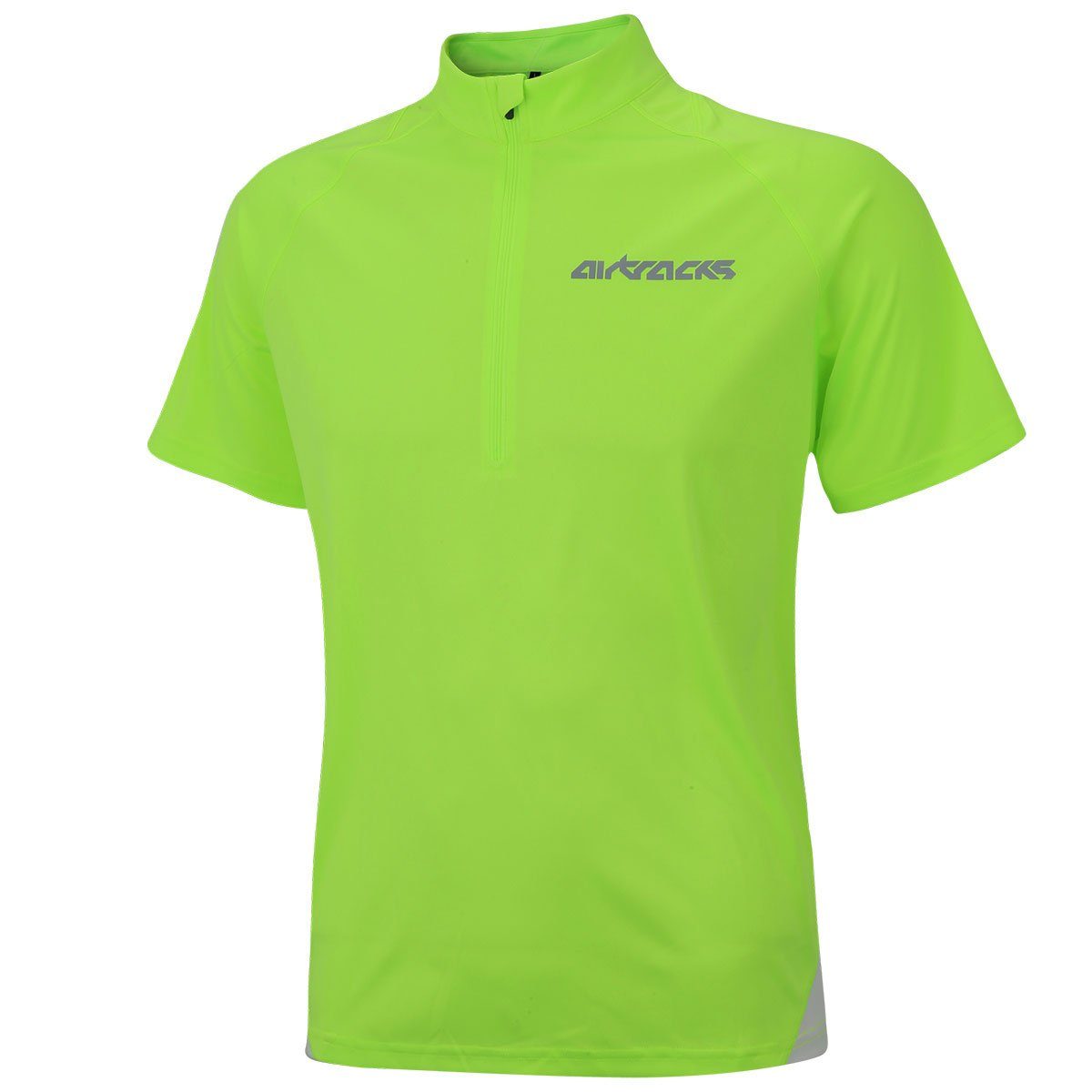 Sportliches Laufshirt kurzarm Air Tech, atmungsaktiv, schnelltrokend und hochfunktionell mit optimalem Tragekomfort. Mikrofaserpolyester transportieren Schweiß von der Haut an die Gewebeoberfläche. Das Material leitet Schweiß ab und sorgt für ein trockenes, angenehmes Körperklima. Optimierte Farbkombination für bessere Sichtbarkeit, halber Reißverschluss, Reflexlogo im Frontbereich und leichtes, weiches Gewebe für exzellentes Feuchtigkeitsmanagement. Das Running T-Shirt verbessert die Laufhaltung durch High - Tech - Faser mit UV-Schutz. Das Funktionshirt kurzarm fällt normal aus und hat ein Unisex-Profil.