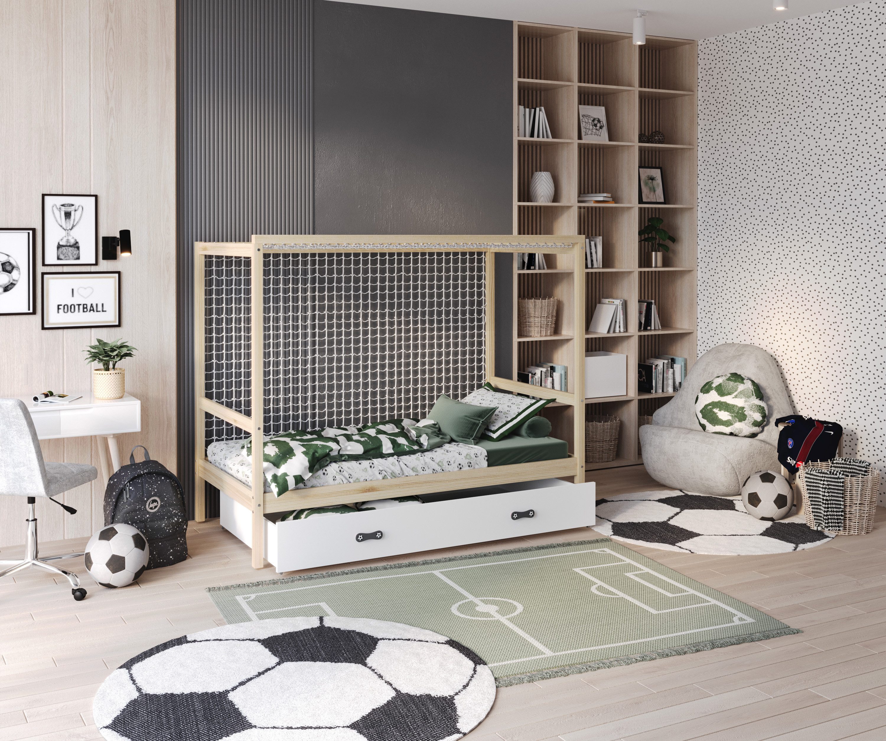 Mit dem AJK meble Jugendbett Fußball Tor schaffen Sie einen kreativen und funktionalen Schlafplatz für Ihr Kind. Dieses Bett kombiniert Spaß, Design und Funktionalität, um sowohl Kinder als auch Eltern zu begeistern.