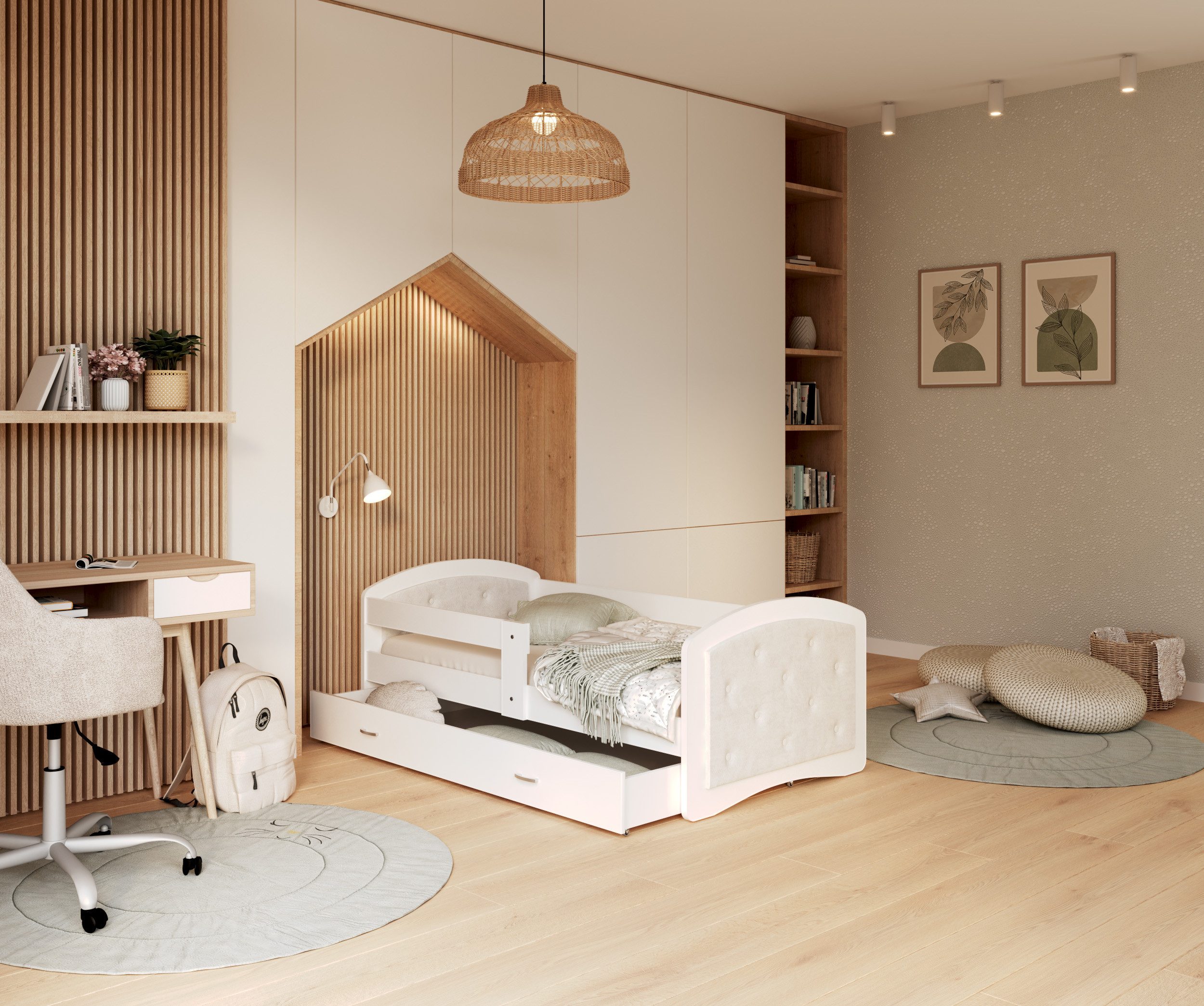 Das AJKmeble Jugendbett bietet die perfekte Kombination aus Komfort, Sicherheit und modernem Design. Es ist die ideale Wahl für das Kinderzimmer und sorgt für einen erholsamen Schlaf in einer sicheren und stilvollen Umgebung.