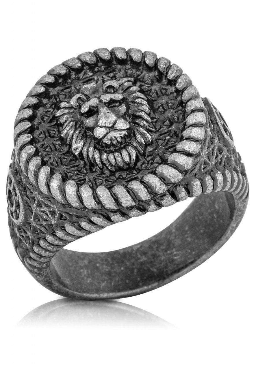 Siegelring mit Löwensymbol • Edelstahl • Farbe: Antik Silber mit schwarzer Tinte