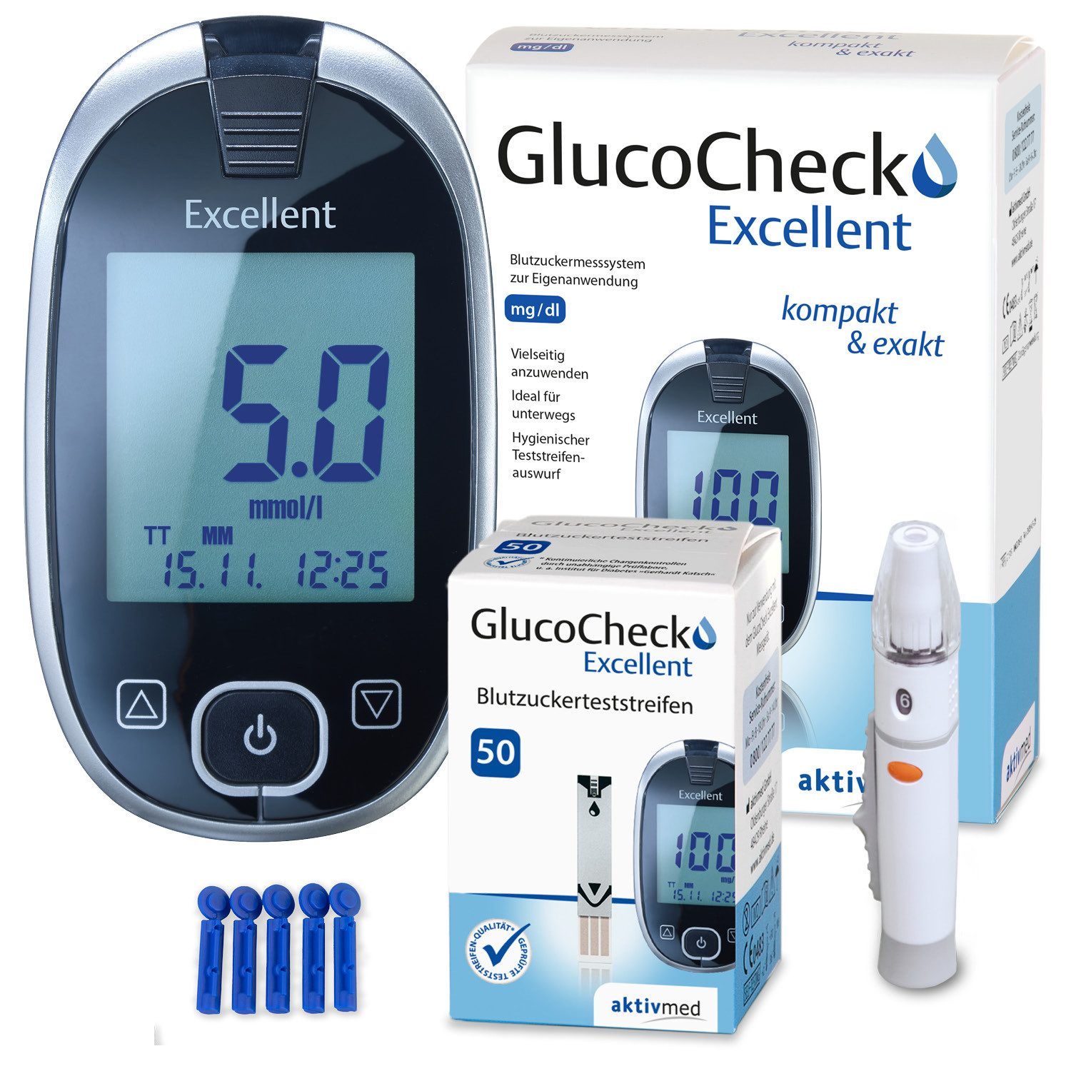 Lieferumfang | 1 GlucoCheck Excellent Blutzuckermessgerät, Etui, 10 Blutzuckerteststreifen, 10 Lanzetten, Stechhilfe, 2x 3V LI-CR2032 Batterien, Bedienungsanleitung, Diabetiker-Tagebuch |