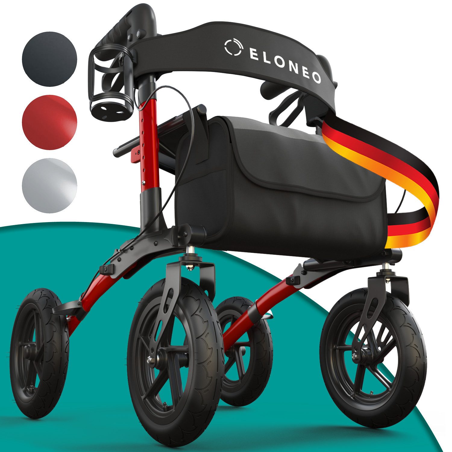 Mit diesem hochwertigen Outdoor-Rollator sind Sie bestens für Spaziergänge und Einkäufe gerüstet – auch auf unebenem Gelände. Seine großen, profilierten Luftreifen bieten hervorragende Dämpfungseigenschaften und sorgen für sicheren Halt auf Kopfsteinpflaster, Waldwegen oder Bürgersteigen. Dank seiner robusten Bauweise, Reflektoren und der leichtgängigen Bremse sind Sie stets sicher und komfortabel unterwegs.