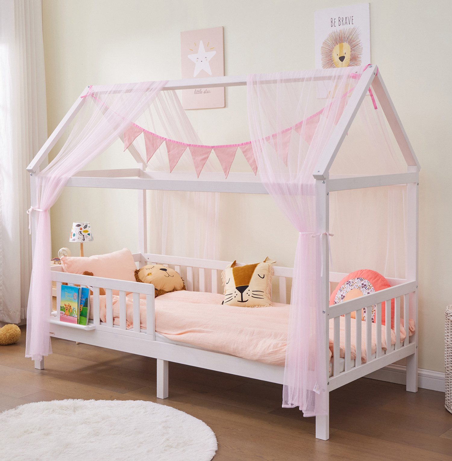Inklusive 3er-Deko-Set, das jedes Hausbett in ein zauberhaftes Himmelbett verwandelt. Unsere Wimpelkette aus hochwertiger Bio-Baumwolle zaubert mit 9 liebevoll gestalteten Wimpeln ein Lächeln auf jedes Gesicht. Die bezaubernde LED-Lichterkette taucht den Raum in sanftes Licht, während die zwei traumhaften Betthimmel mit ihren zarten Satinbändern jedes Kinderzimmer in eine kuschelige Wohlfühloase verwandeln.