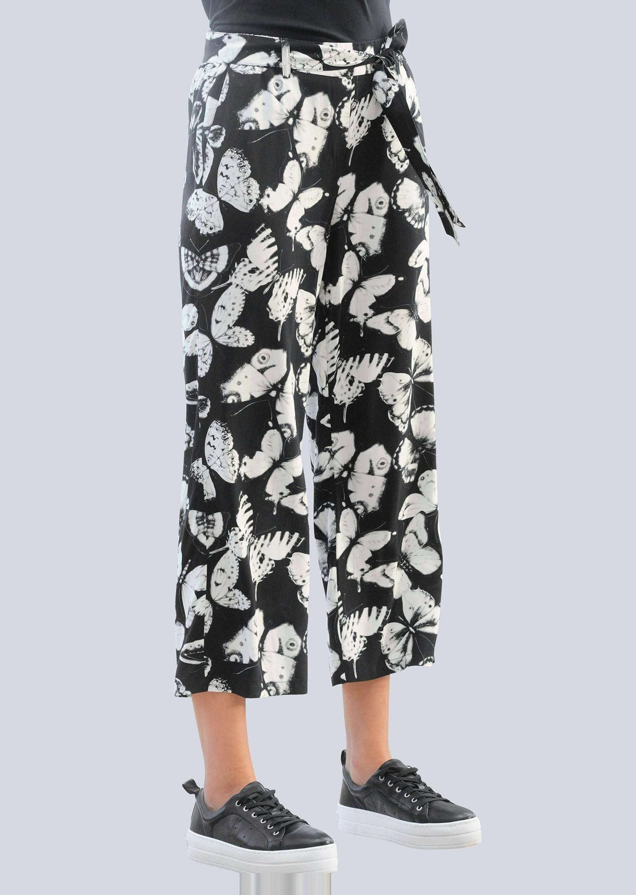 Entdecken Sie Ihren ganz individuellen Favoriten – wie zum Beispiel diese Druckhose von Alba Moda. Besonders hervorzuheben ist der Animal Print. Für einen bequemen Schnitt steht die Passform Regular Fit. Die Leibhöhe ist normal, das heißt, sie sitzt etwa auf Bauchnabelhöhe. Mit Eingrifftaschen. Wenn Sie viel Wert auf ein angenehmes Tragegefühl legen, wird Sie das Modell mit den Bundfalten begeistern. Hergestellt aus pflegeleichtem Material. Diese Druckhose ist ein wahres Stylingtalent. Toben Sie sich aus und probieren Sie verschiedene Oberteile dazu – wir sind uns sicher, dass Sie gut aussehen werden. Beininnenlänge in Размер 38 ca. 62 cm. Machen Sie sich selbst eine Freude mit der Druckhose von Alba Moda – jetzt einfach in unserem Shop bestellen!