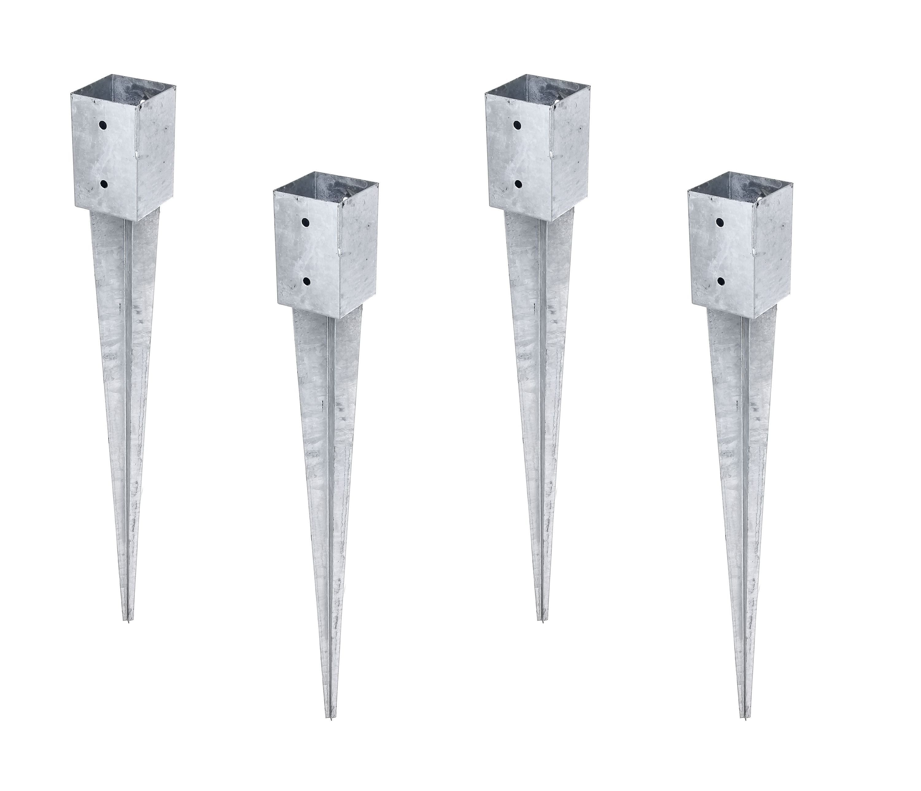 4x Einschlag-Bodenhülse für Rund- oder Vierkantholzpfosten feuerv