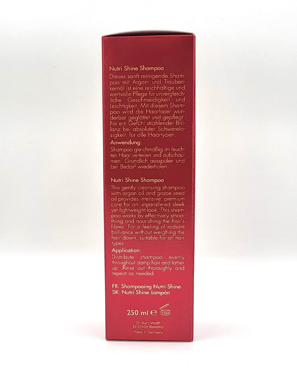 Das Nutri Shine Shampoo von Alcina ist eine ideale Wahl für die tägliche Haarpflege. Angereichert mit wertvollen Inhaltsstoffen wie Argan- und Traubenkernöl, sorgt es selbst bei feinem Haar für ein seidig-geschmeidiges Gefühl, das sowohl sichtbar als auch fühlbar ist. Bereits nach der ersten Anwendung dieses reichhaltigen und optimal pflegenden Shampoos wird das Haar mit wichtiger Feuchtigkeit versorgt. Dies erleichtert das anschließende Kämmen und hinterlässt einen luxuriösen Duft, der noch Stunden nach der Anwendung spürbar ist. Gönnen Sie Ihrem Haar diese verwöhnende Pflegeerfahrung mit Nutri Shine von Alcina.